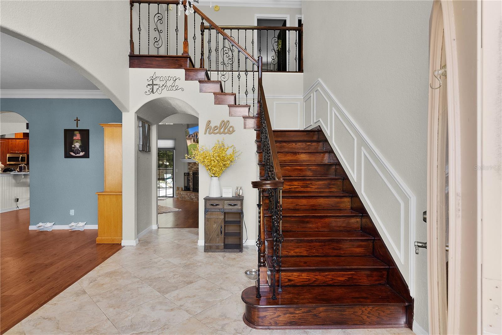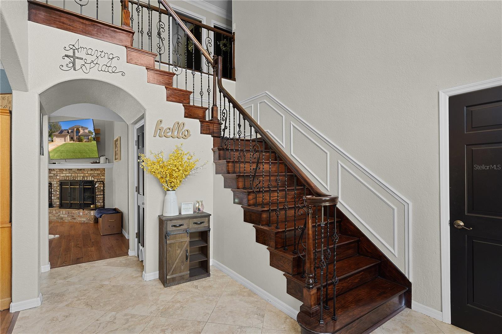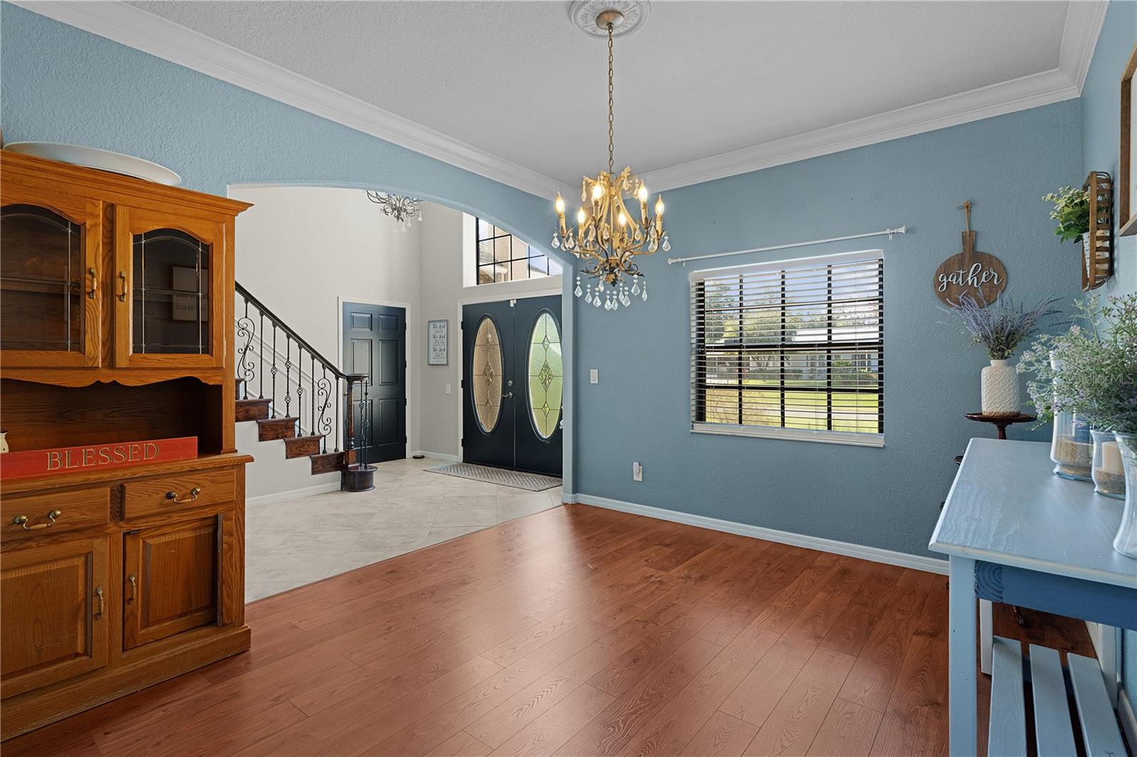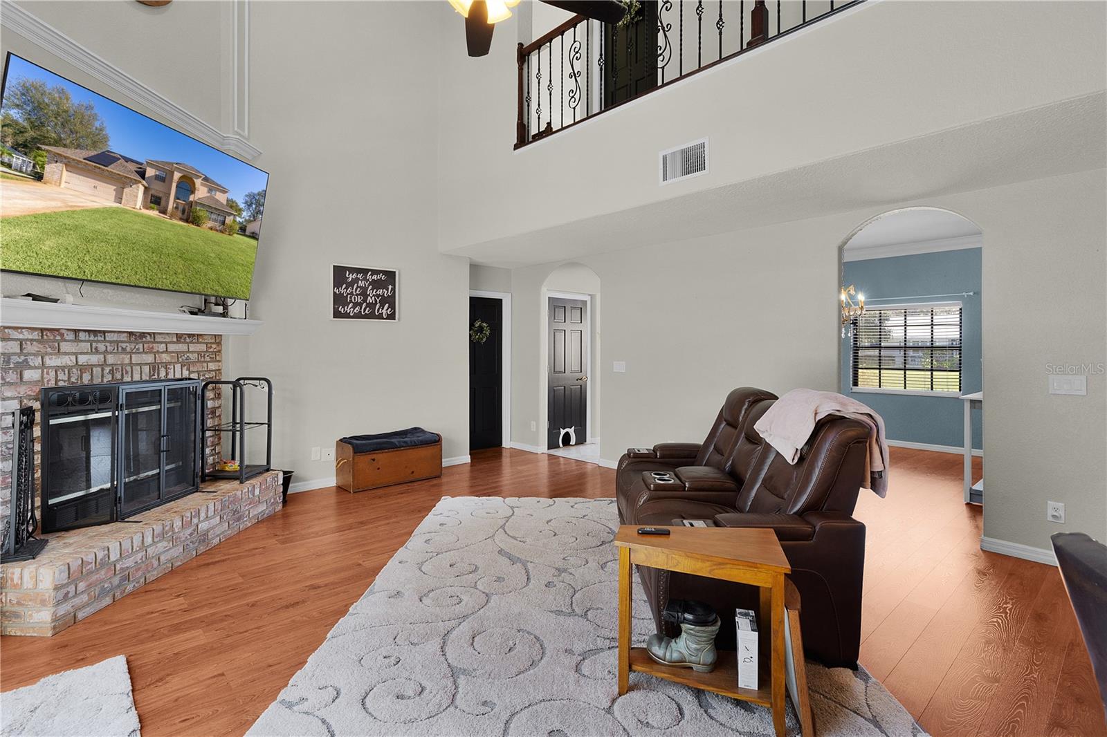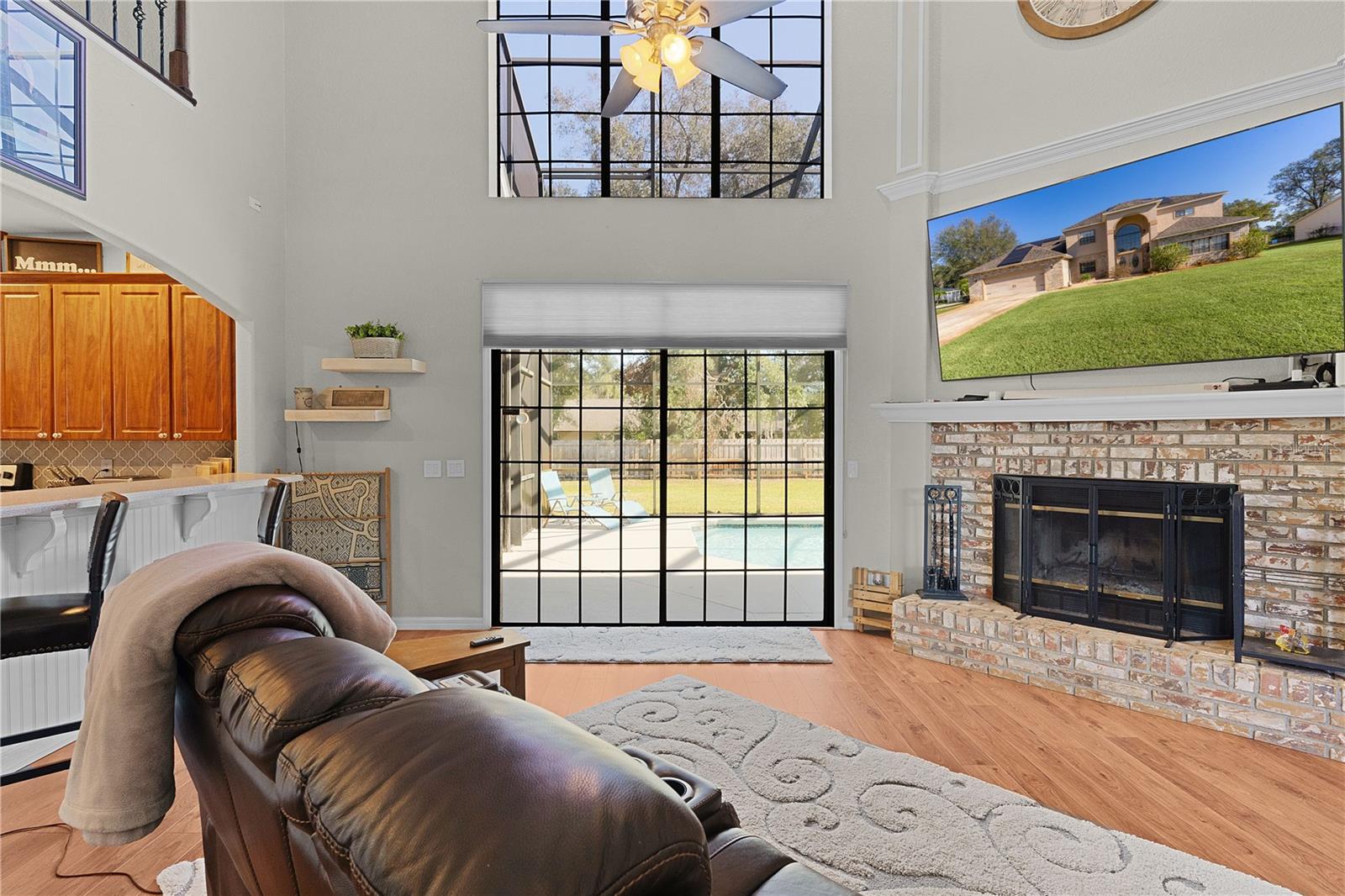 Your Dream Home Awaits! A captivating treasure located in Leesburg Florida, this stunning, fully remodeled 4-bedroom, 3-bathroom oasis offers Chain of Lakes access, a boat slip and recreational storage options. Surrounded by a lush landscape complete with full irrigation, privacy-fenced backyard and energy efficient Solar panels, this meticulously maintained two-story residence offers impeccable curb appeal and strikes a perfect balance that compliments the quaintness of the neighborhood while also providing modern luxury. Step through elegant stained glass double doors into a spacious foyer adorned with a new wrought iron baluster and a dazzling chandelier. The interior further unveils an open floor plan that invites you into a fabulous kitchen that offers the increased functionality of a convenient center island, a versatile convection oven and stainless steel appliances, including a state-of-the-art smart refrigerator. The kitchen is enhanced by a walk-in pantry, ample cabinetry, and generous countertop space with Corian countertops and updated glass backsplash. A sizable bar overlooking a cozy family room with cathedral ceilings and a charming wood-burning fireplace, further elevates the space, adding to the home’s mix of style, comfort and functionality. The primary bedroom, located on the first level, offers serene views of the pool that transform the master bathroom into a private oasis complete with a fully updated smart jetted tub, glass-enclosed, granite-surrounded shower, marble flooring, and a spacious walk-in closet. In addition, the first level provides an additional room that can be used as an office, study or 5th bedroom. Three more generously sized bedrooms are located on the second level along with a newly remodeled bathroom. Also featured upstairs is a chic loft that provides additional living space and looks out over the picture-perfect living room and outside to the pool below. Classic French doors open onto an expansive lanai and screened-in pool area. This attractive space features a saltwater pool equipped with a variable speed smart pump and is perfect for entertaining or simply enjoying leisurely afternoons. Conveniently located near prime shopping, parks, recreation, Leesburg's Lake Square Mall and historic downtown Mt. Dora, this custom luxury home offers unparalleled comfort, sophistication, and convenience. Located about an hour to Orlando for Disney World, Seaworld, Universal and the parks, an hour from Ocala for World Equestrian, the Villages are a 30 min drive and the Beaches are about 1 hour and 30 minutes. This exceptional property is sure to impress and won’t last long. Schedule your appointment today for the opportunity to step over the threshold of your Dream home! Whole-house Remodel(2020) that includes: Energy- efficient solar panels, State of the art smart refrigerator, Complete updated flooring with extra noise minimizing padding upstairs, Full master bath, Renovated downstairs bath, Renovated kitchen, Rebuilt widened stairs, Complete interior paint refresh, including modernized trim, crown moldings and doors, Roof(2016) Resurfaced, tiled pool, replaced pool pump, Rescreened pool and patio (2022), and Installed double gate for backyard access. Home Warranty on All appliances including HVAC included.