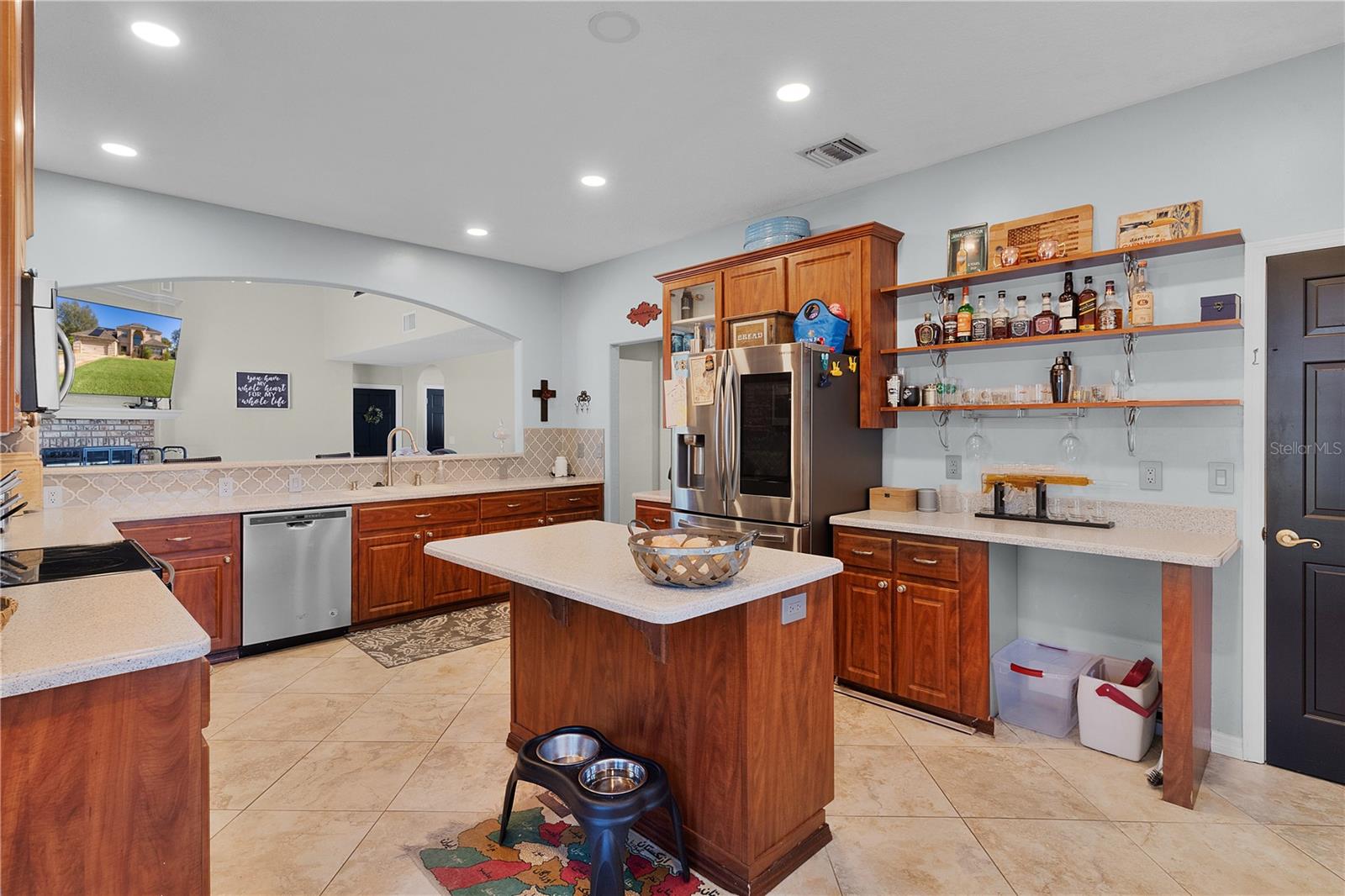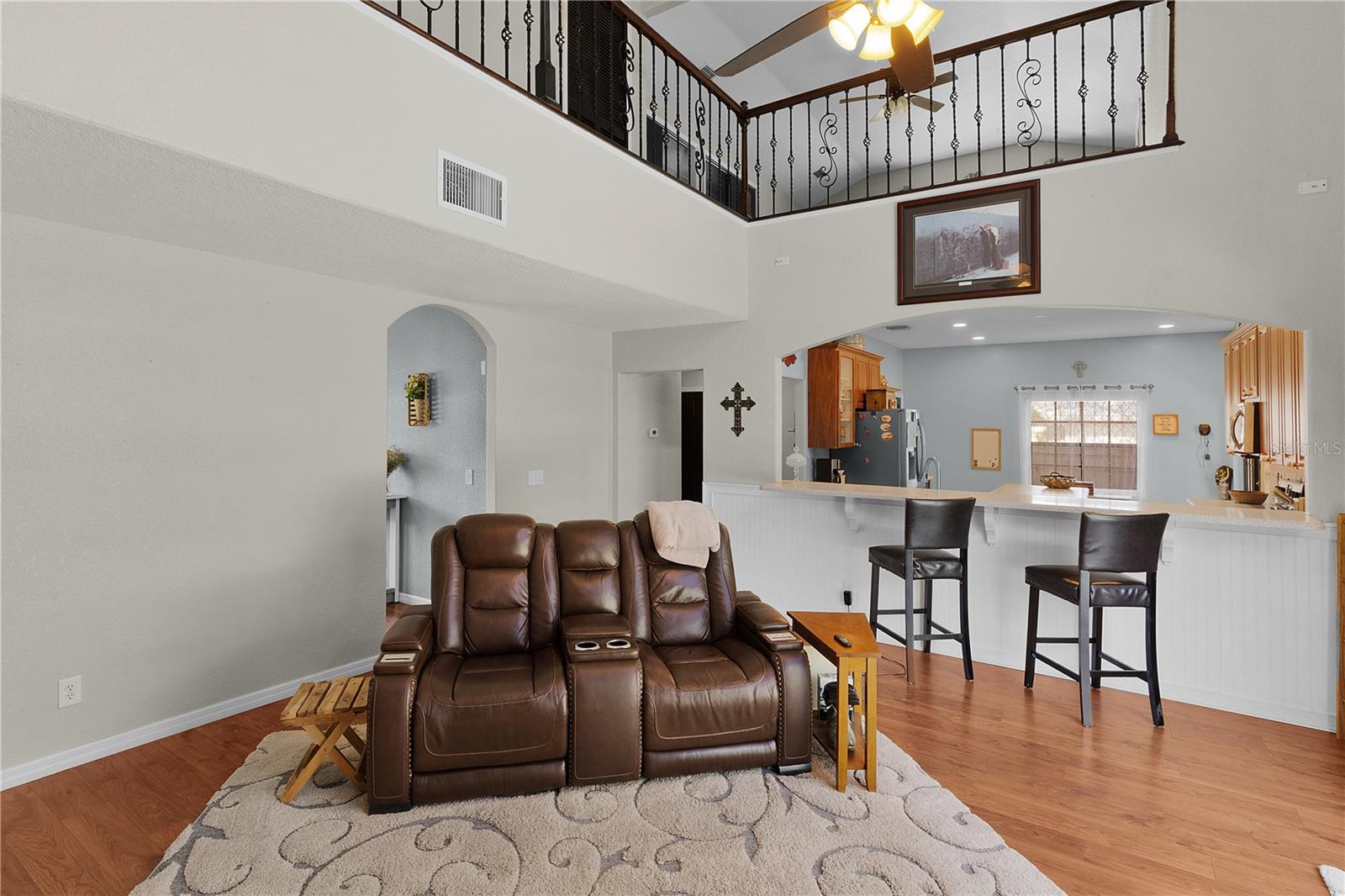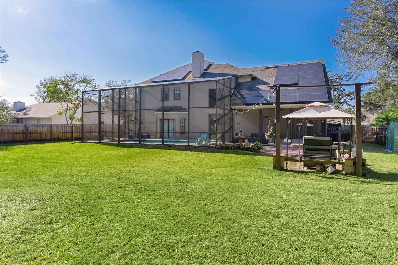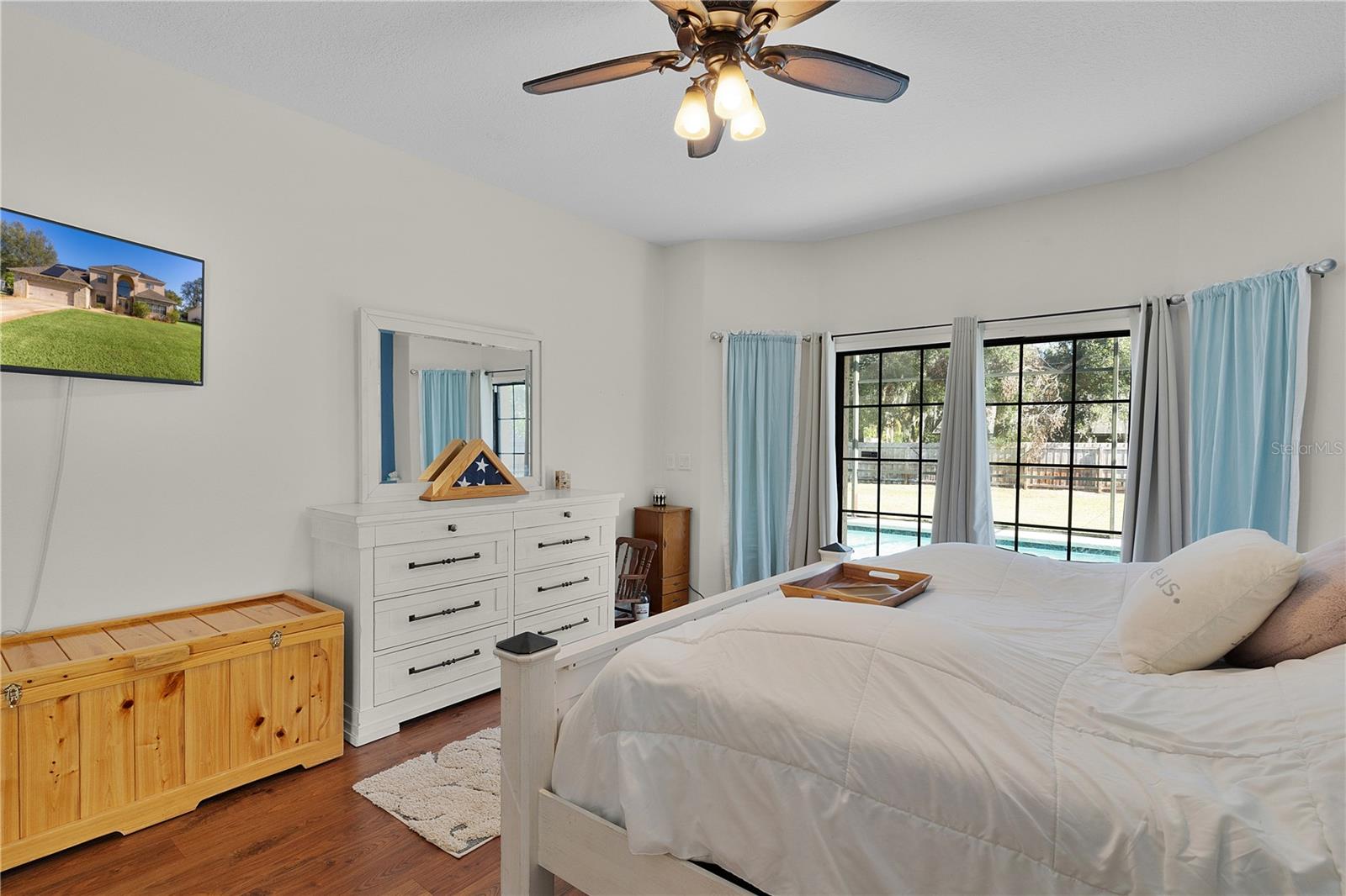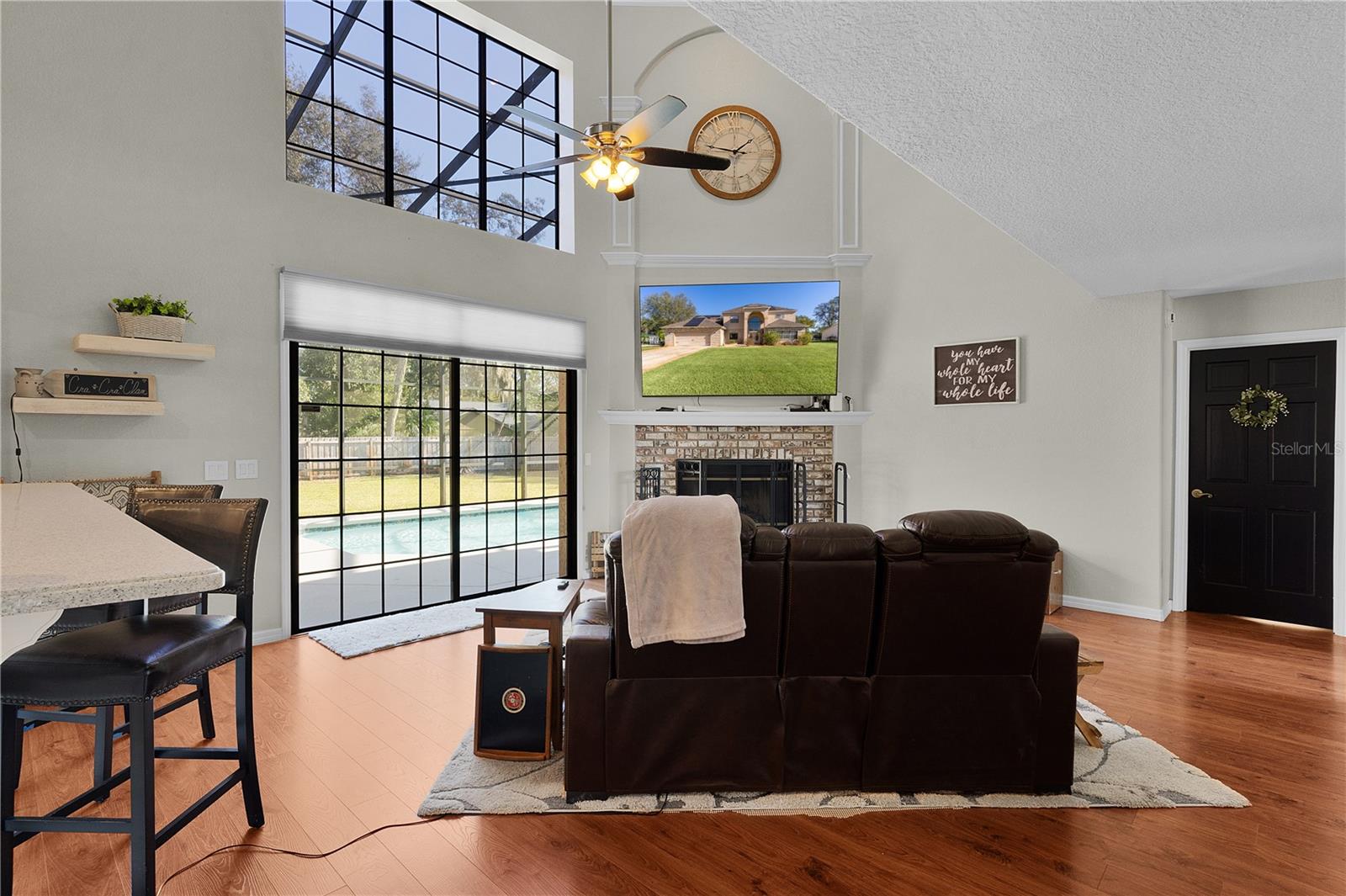 Your Dream Home Awaits! A captivating treasure located in Leesburg Florida, this stunning, fully remodeled 4-bedroom, 3-bathroom oasis offers Chain of Lakes access, a boat slip and recreational storage options. Surrounded by a lush landscape complete with full irrigation, privacy-fenced backyard and energy efficient Solar panels, this meticulously maintained two-story residence offers impeccable curb appeal and strikes a perfect balance that compliments the quaintness of the neighborhood while also providing modern luxury. Step through elegant stained glass double doors into a spacious foyer adorned with a new wrought iron baluster and a dazzling chandelier. The interior further unveils an open floor plan that invites you into a fabulous kitchen that offers the increased functionality of a convenient center island, a versatile convection oven and stainless steel appliances, including a state-of-the-art smart refrigerator. The kitchen is enhanced by a walk-in pantry, ample cabinetry, and generous countertop space with Corian countertops and updated glass backsplash. A sizable bar overlooking a cozy family room with cathedral ceilings and a charming wood-burning fireplace, further elevates the space, adding to the home’s mix of style, comfort and functionality. The primary bedroom, located on the first level, offers serene views of the pool that transform the master bathroom into a private oasis complete with a fully updated smart jetted tub, glass-enclosed, granite-surrounded shower, marble flooring, and a spacious walk-in closet. In addition, the first level provides an additional room that can be used as an office, study or 5th bedroom. Three more generously sized bedrooms are located on the second level along with a newly remodeled bathroom. Also featured upstairs is a chic loft that provides additional living space and looks out over the picture-perfect living room and outside to the pool below. Classic French doors open onto an expansive lanai and screened-in pool area. This attractive space features a saltwater pool equipped with a variable speed smart pump and is perfect for entertaining or simply enjoying leisurely afternoons. Conveniently located near prime shopping, parks, recreation, Leesburg's Lake Square Mall and historic downtown Mt. Dora, this custom luxury home offers unparalleled comfort, sophistication, and convenience. Located about an hour to Orlando for Disney World, Seaworld, Universal and the parks, an hour from Ocala for World Equestrian, the Villages are a 30 min drive and the Beaches are about 1 hour and 30 minutes. This exceptional property is sure to impress and won’t last long. Schedule your appointment today for the opportunity to step over the threshold of your Dream home! Whole-house Remodel(2020) that includes: Energy- efficient solar panels, State of the art smart refrigerator, Complete updated flooring with extra noise minimizing padding upstairs, Full master bath, Renovated downstairs bath, Renovated kitchen, Rebuilt widened stairs, Complete interior paint refresh, including modernized trim, crown moldings and doors, Roof(2016) Resurfaced, tiled pool, replaced pool pump, Rescreened pool and patio (2022), and Installed double gate for backyard access. Home Warranty on All appliances including HVAC included.