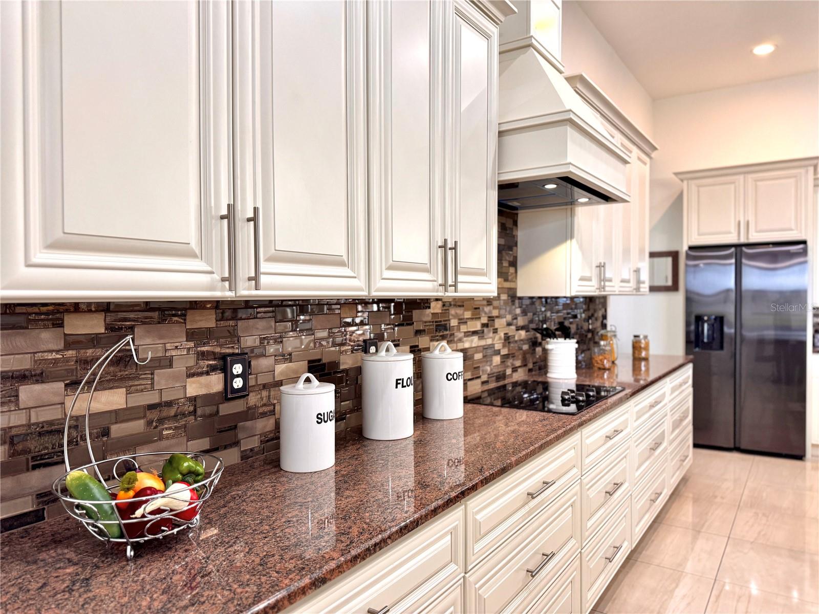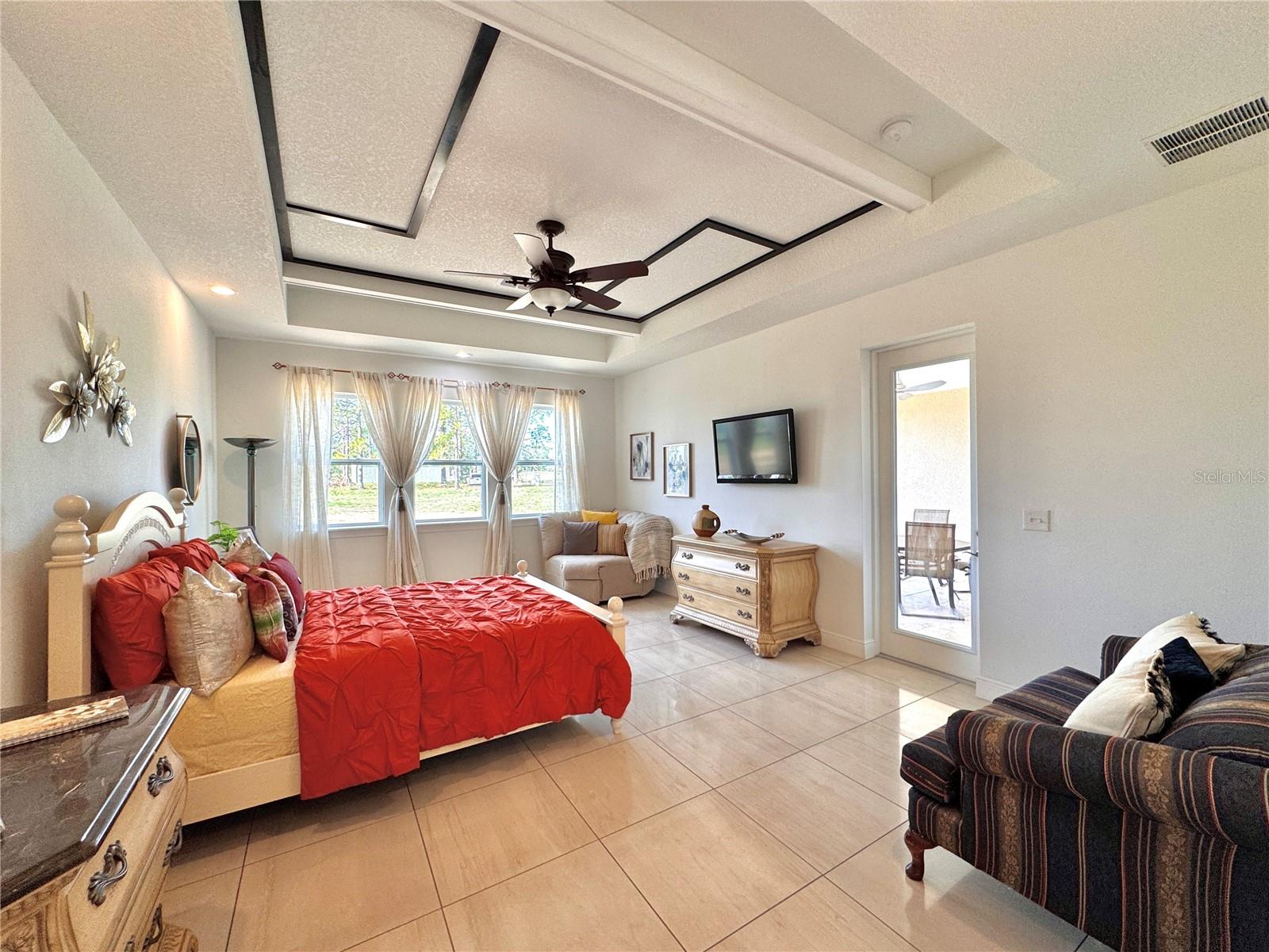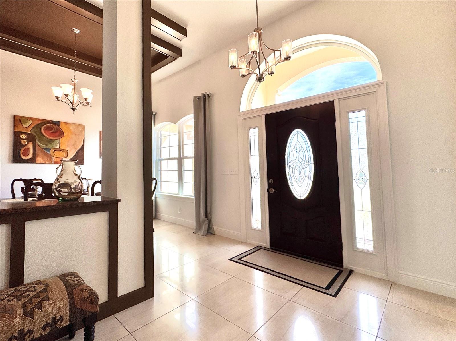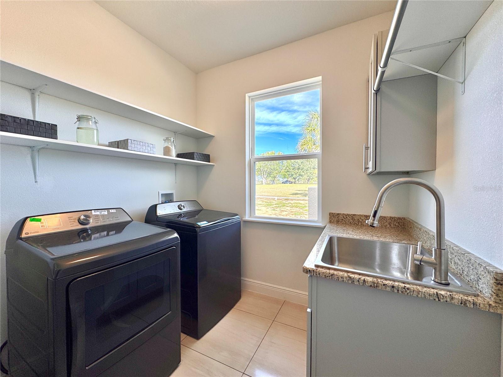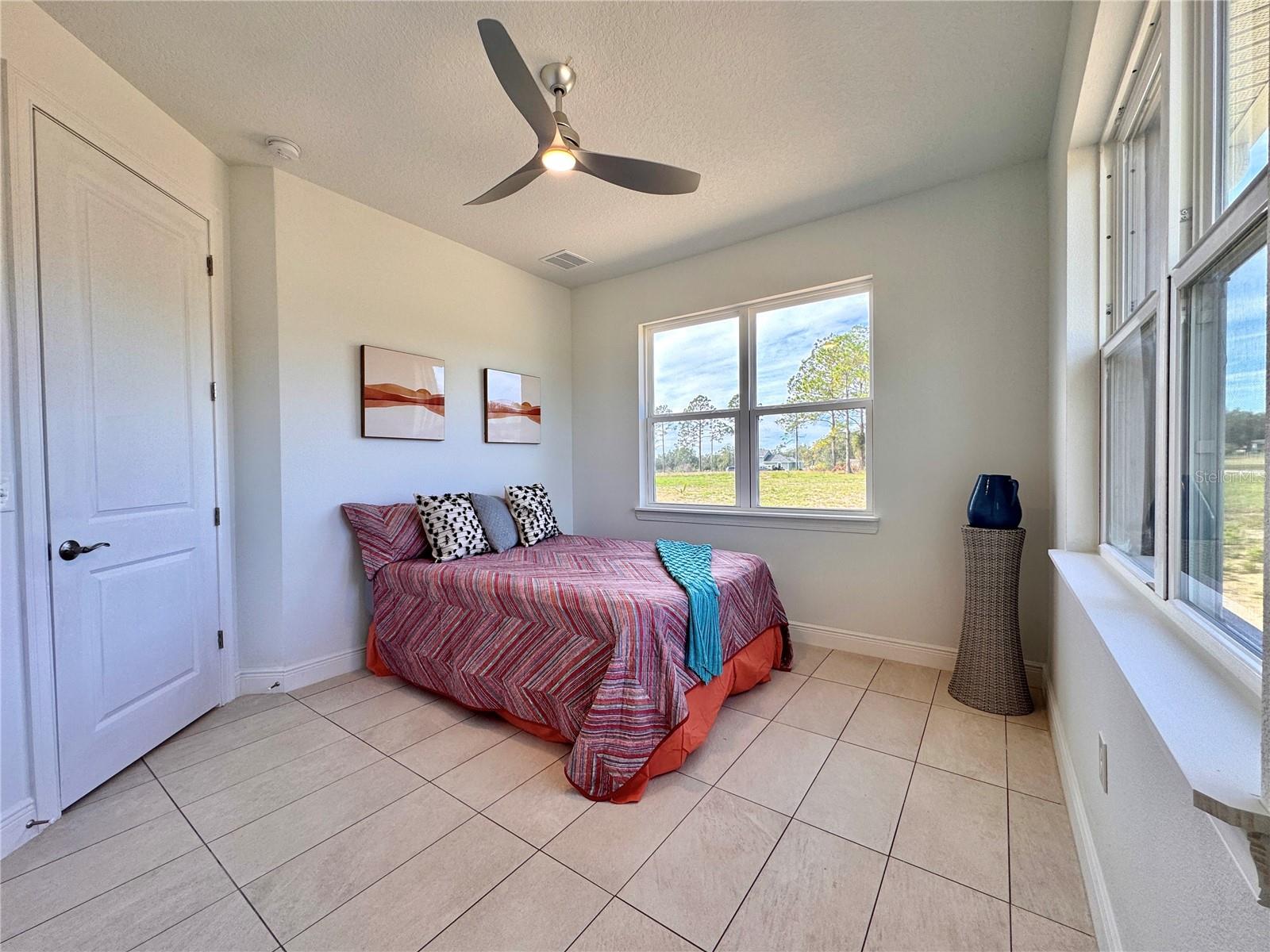 Welcome to Florida living! This brand-new, custom-built single-story home is designed to make the most of its expansive lot, featuring a long-paved driveway and backyard entertainment area. With elegant finishes and modern touches, the home greets you with a front entry and double doors leading to a versatile bonus room or office. The open concept living area showcases designer flooring and hardware, creating a warm and stylish atmosphere. The gourmet kitchen offers granite countertops, double ovens, a cooktop with custom hood, and ample bar seating, perfect for hosting and everyday meals. Step outside to enjoy Florida’s outdoor lifestyle with both covered and open-air spaces. The primary suite features a luxurious bath with a garden tub, separate shower, private water closet, and dual closets with built-ins. Three additional bedrooms provide flexible living space, including a Jack-and-Jill bathroom. A spacious laundry room with washer, dryer, utility sink, cabinets, and custom shelving offers added convenience. Built with solid block construction, energy-efficient windows and doors, plus a 3-car garage and separate golf cart entry, this home is ready for you to enjoy all the best Florida has to offer.