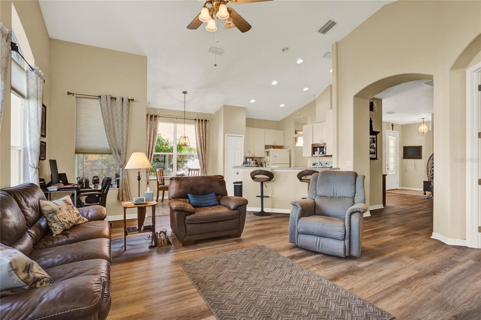 Charming 3-Bedroom / 2-Bathroom Home with Golf Course Views in Royal Highlands 55+ Community! Discover the perfect blend of comfort and scenic beauty in this move-in ready 3-bedroom, 2-bathroom home with a 2-car garage. Featuring a brand-new roof and luxury vinyl plank (LVP) flooring, this meticulously maintained home offers breathtaking views of the 16th hole, nestled between serene conservation areas. Located in the sought-after Royal Highlands 55+ community, residents enjoy a low monthly HOA fee, which includes cable, internet, and access to top-tier amenities—a full-service restaurant, pro shop, driving range, two pools, fitness center, billiards, tennis & pickleball courts, and an array of club activities. The community’s Great Hall features a dance floor, theater stage, and a fully equipped stainless-steel kitchen, perfect for hosting events. Surrounded by lush conservation and agricultural views, this gated community even offers a fishing dock for nature lovers. Seller offering 1 year of home warranty!