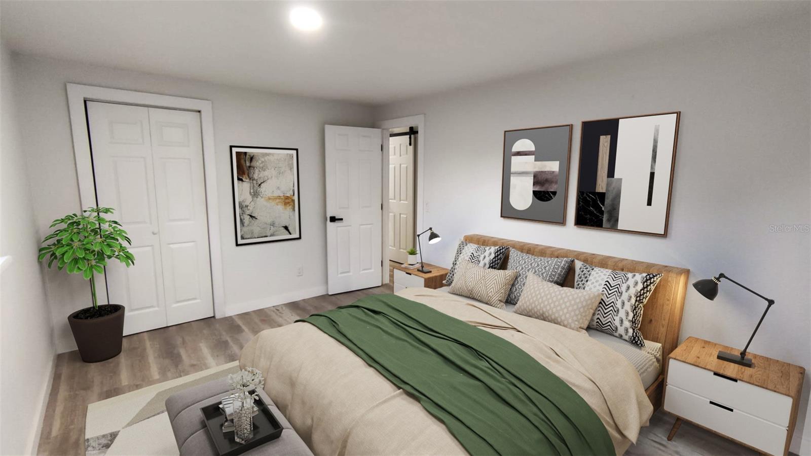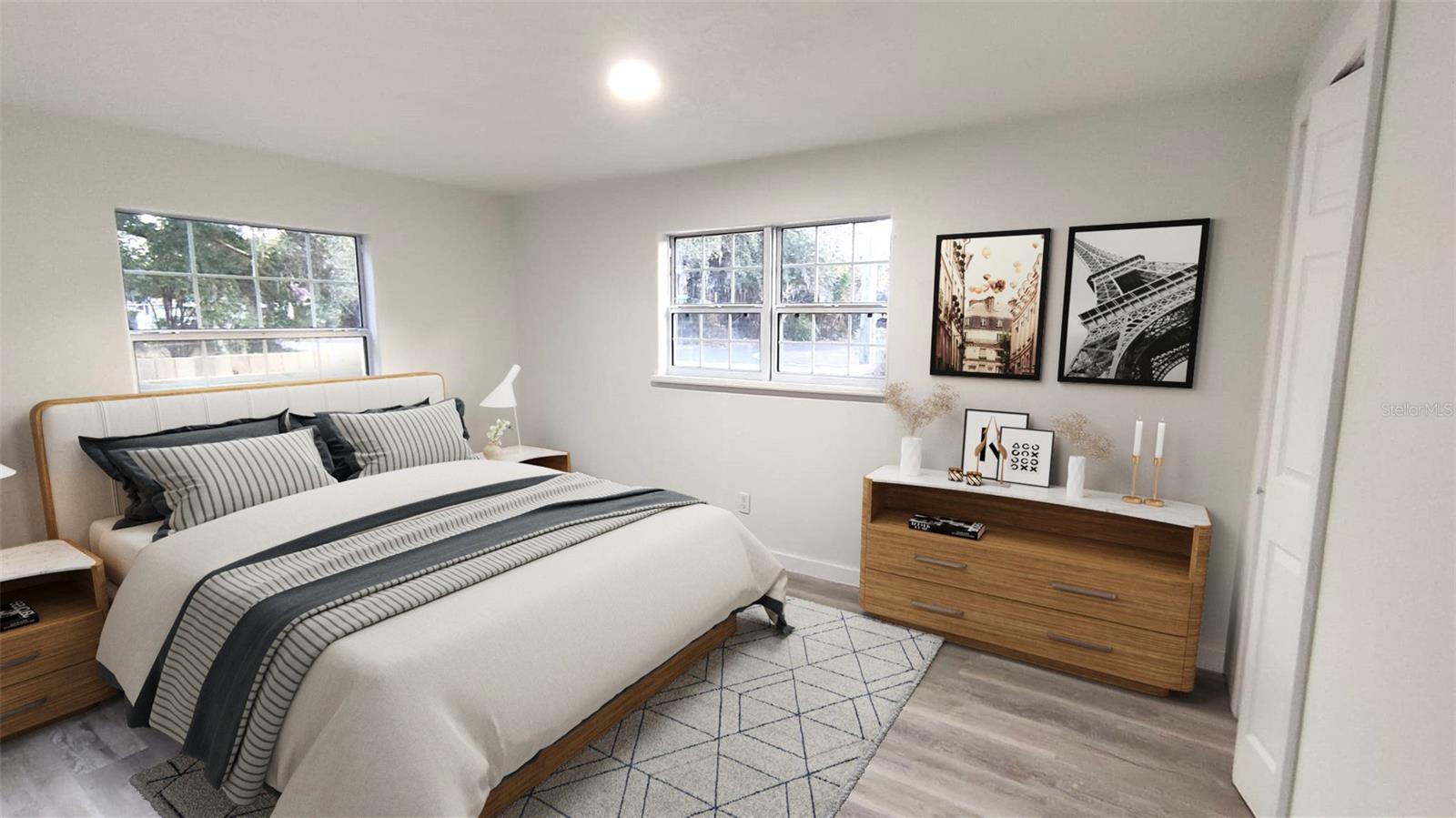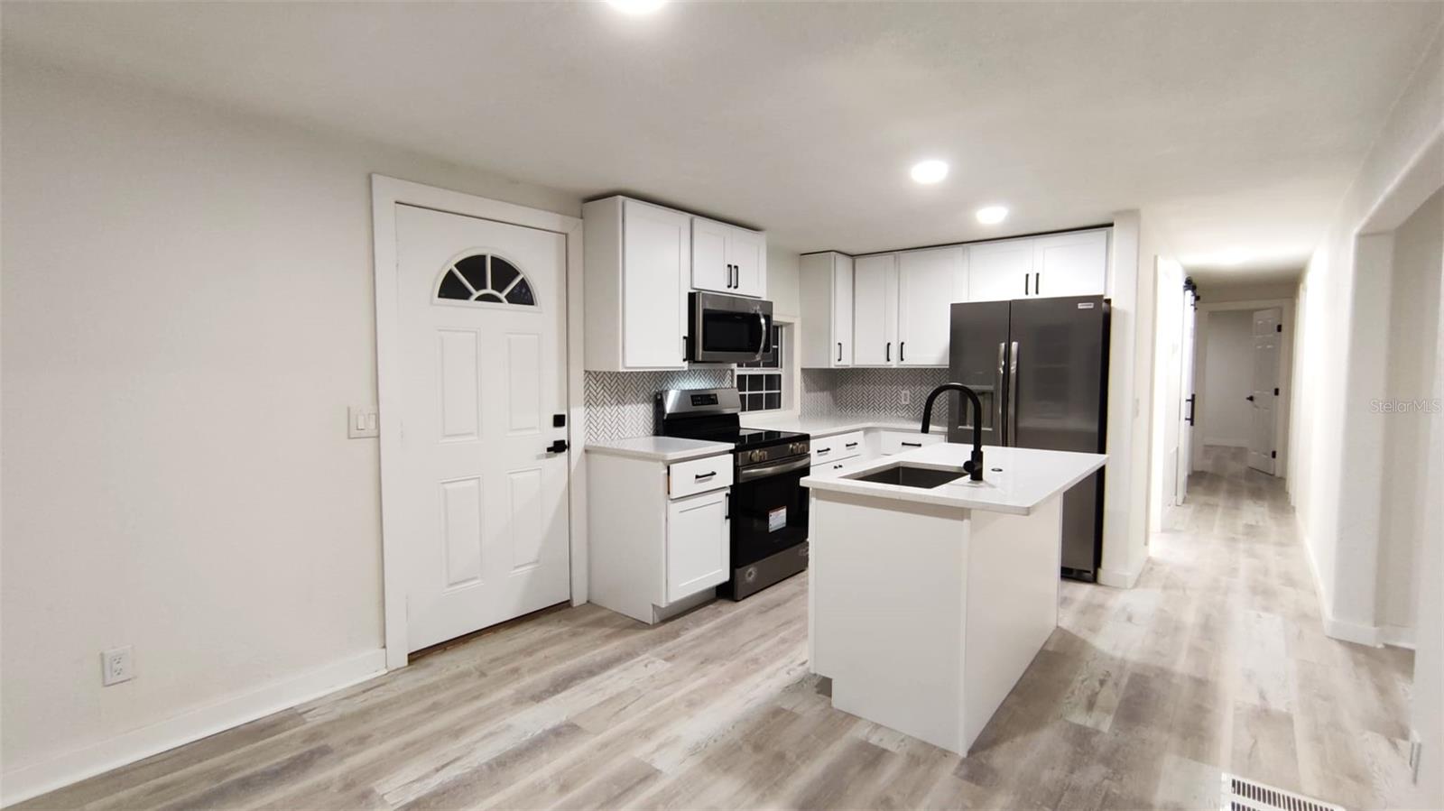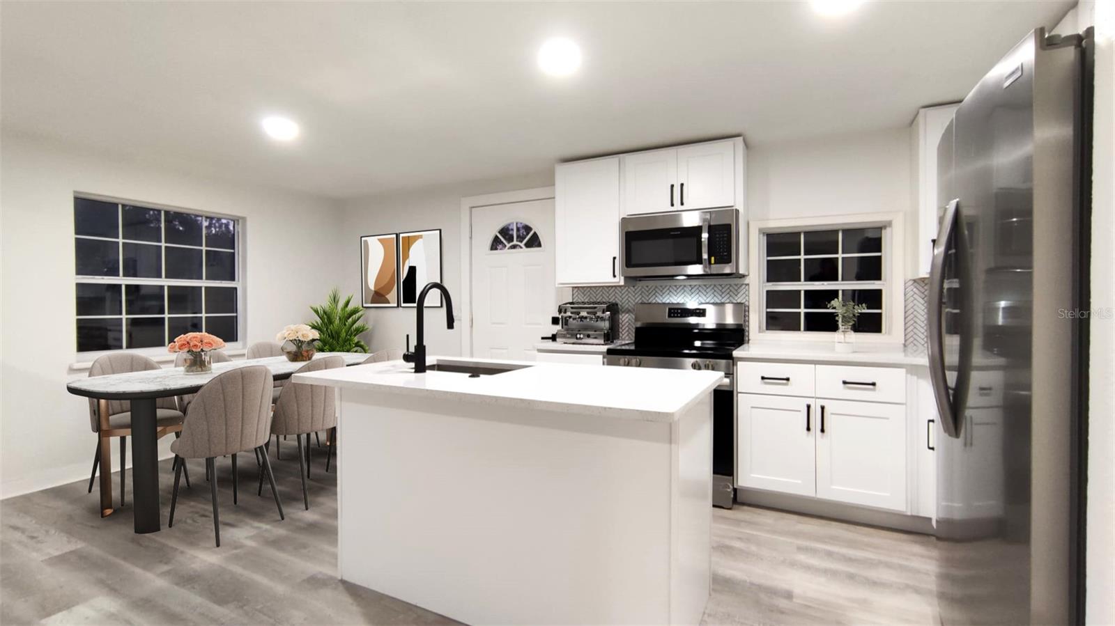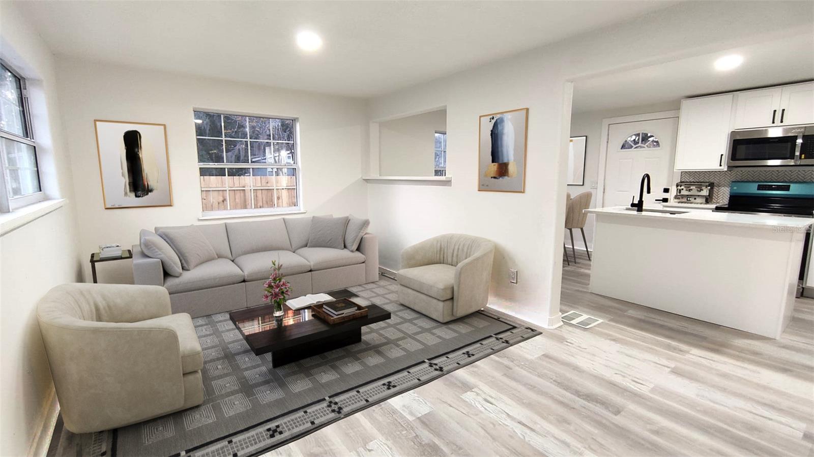 Some Pictures are virtually staged! Nestled in the heart of Leesburg, this stunning, fully remodeled home offers the perfect blend of rustic charm with modern appointments. Features include plank flooring throughout, custom kitchen cabinetry, and designer fixtures, as well as a spacious kitchen with eat-in center island, sleek quartz countertops, and brand-new stainless-steel appliances. The open concept living spaces with generous windows throughout allow the natural light to flood the home. The home has all new drywall, flooring, doors, plumbing, appliances, cabinets, counters, lights, roof and AC are 2 y/o. Outside the yard is fully fenced with a 12 foot double gate to get all of your equipment or toys to store, or your business to run. The outdoor yard is amazing - all leveled and seeded with new grass plus irrigation ready. Step outside to your own private oasis – the property is fully fenced, offering both security and privacy. The expansive yard is ideal for children, pets, or simply enjoying the peace and tranquility of nature. Whether you’re entertaining, or relaxing in the lush greenery, this property is designed for outdoor living at its finest.