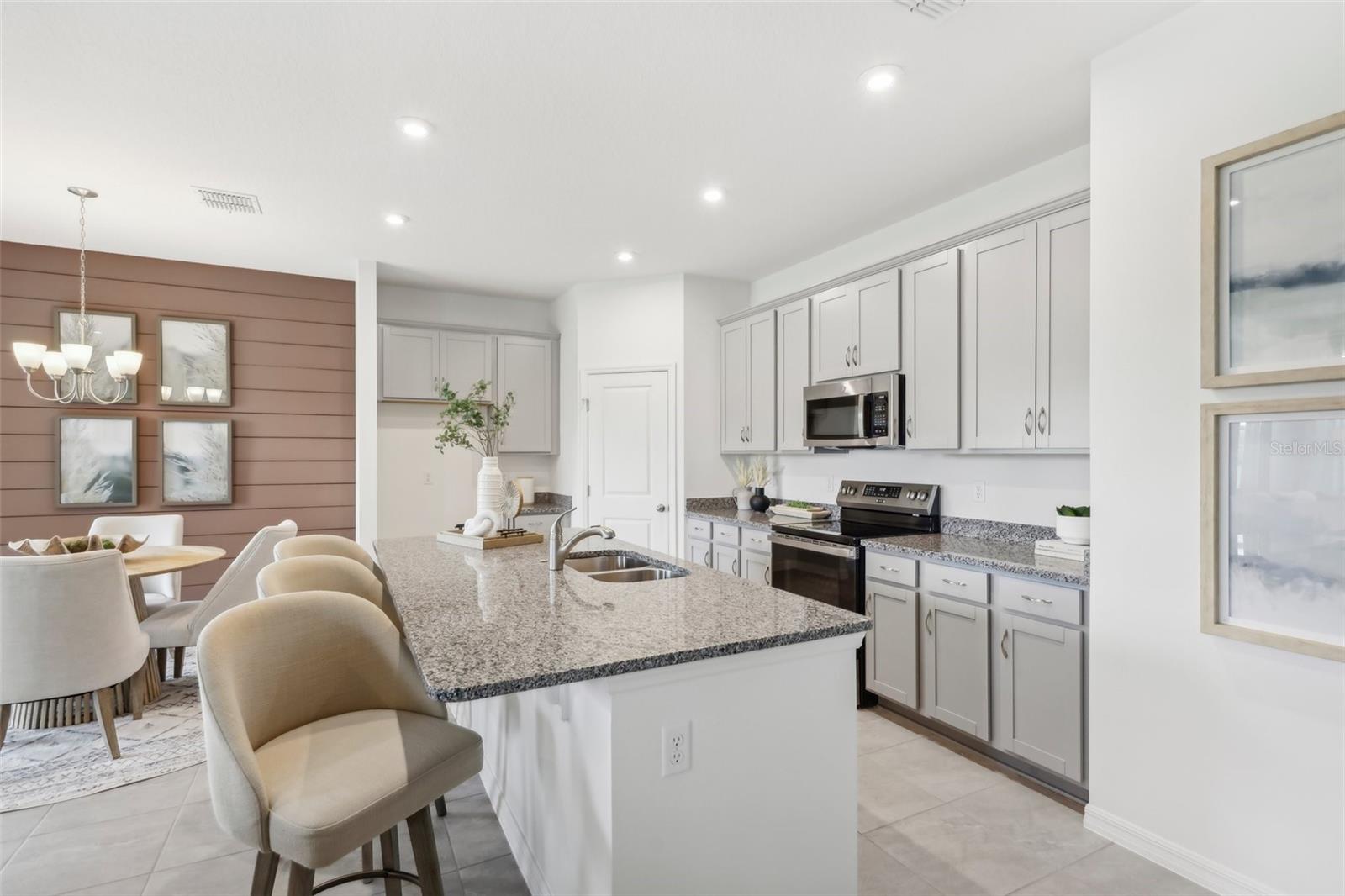 One or more photo(s) has been virtually staged. Under Construction. Ready for a Florida lifestyle? You’ll love living at Silver Lake Pointe, where you’ll be just minutes from all the shopping, dining, and entertainment with convenience to downtown Leesburg and Mount Dora. Plus, you’ll have three major lakes and beautiful Silver Lake right in your backyard—and plenty of nearby parks and golf courses offering endless recreational options! Then get ready to enjoy the sunny days ahead in the community amenities including a pool, cabana, playground, and beach volleyball. Your dream home awaits at Silver Lake Pointe! Schedule an appointment today and learn more about this exciting new neighborhood! The Juniper offers the perfect blend of modern design and practical living. From its spacious two-car garage to an inviting outdoor lanai, this home fits all of your living needs while keeping up with today’s style standards. This home features 17X17 tile throughout the home. Three main level bedrooms located at the front of the home have access to a dual vanity bathroom and laundry room across the hall, all thoughtfully designed for comfort and convenience! The open concept kitchen features a gas range and dining room that is perfect for gathering for holiday dinners, and after dinner, take advantage of the spacious family room for time with good company. The spacious primary suite is privately located at the back of the home and features a walk-in closet and shower, split dual vanities, and a water closet. Enjoy all of these features and the Florida sunshine from the covered lanai.