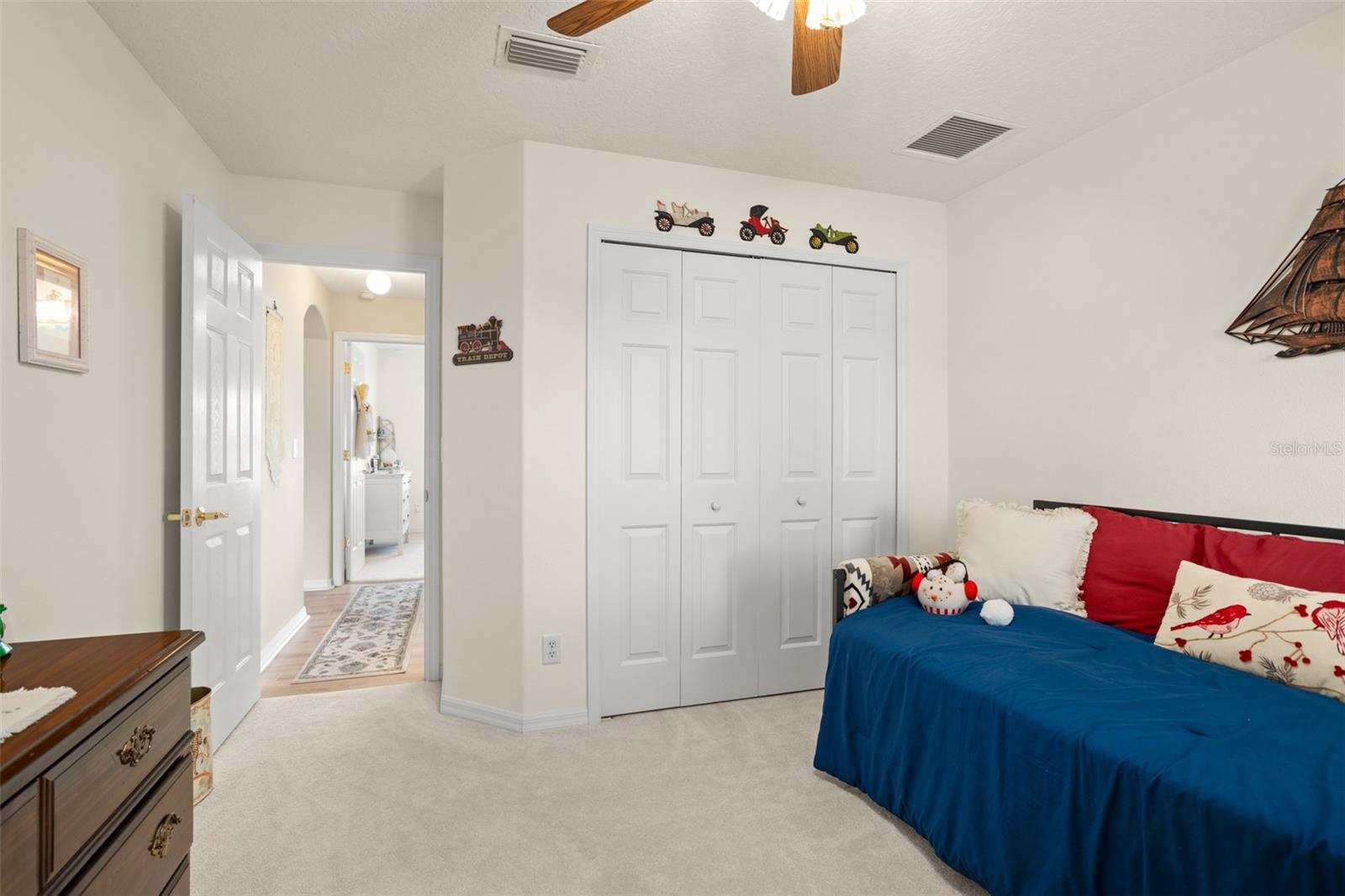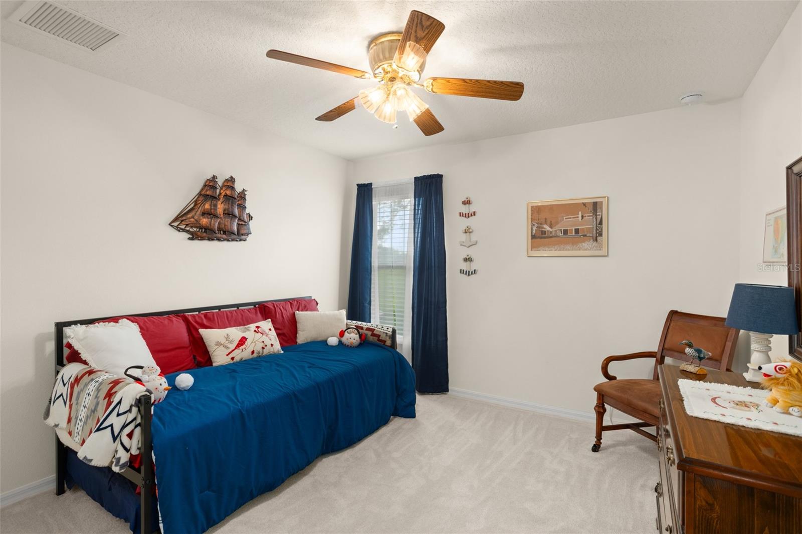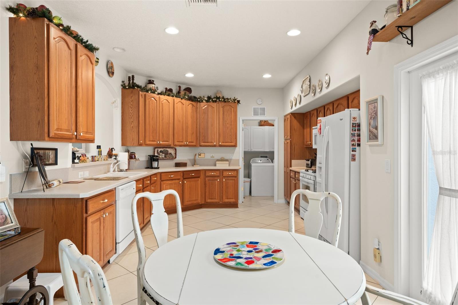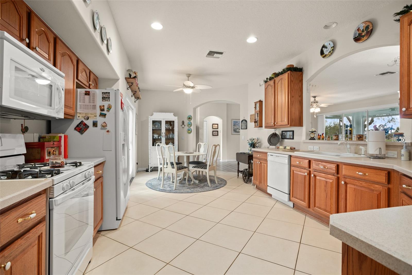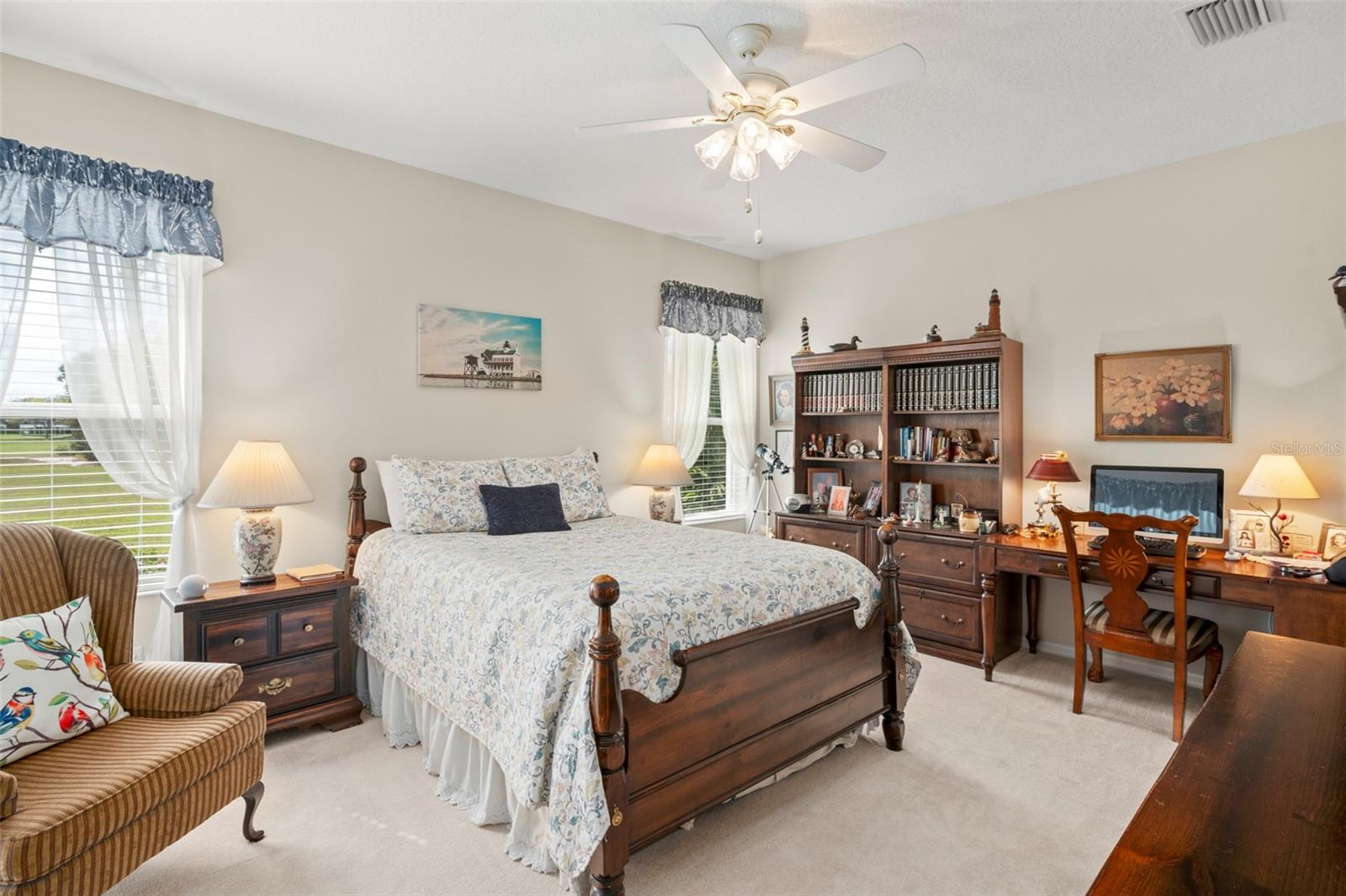 Welcome to this lovely and charming 3 Bed, 2 Bath home in the gated Legacy of Leesburg - a 55+ active adult community! It starts with great curb appeal - nicely landscaped yard, an enclosed screened in private courtyard, and NO REAR NEIGHBORS! You'll have no outside upkeep because the HOA takes care of your lawn. Inside, you will love the open concept common living areas and split bedroom plan - plenty of room and versatile enough to arrange as you see fit. You will enjoy entertaining with plenty of space in your combined living and dining room, which opens to the lanai! Your beautiful contemporary kitchen boasts Corian counters, a pass through window to the dining room, plenty of cabinet storage space, and dinette nook! The primary suite features a sliding door to the lanai, 2 walk-in closets, and en-suite bath including dual sinks, large walk in shower and separate garden bath. The secondary bedrooms are perfect for a guest bedroom, craft room, or an office. This property also features a climate controlled craft room/den/man cave that is conveniently located off of the garage! The spacious laundry room has built-in cabinetry- perfect for storing supplies. An extra reason to love this home is all that you have out back including your screened in lanai overlooking the green space- a peaceful oasis to watch the sunset. The flooring was replaced in 2021 with luxury vinyl plank throughout the living areas and plush carpeting in all bedrooms. This property is being offered FULLY FURNISHED with furniture that has hardly been used. This home has been well maintained and is ready for you to pack your bags and move right in! The Legacy community features many amenities including a clubhouse, fitness center, community pool, tennis courts, pickleball and more! You will love shopping and dining in the neighboring quaint small towns - Mt. Dora, Tavares, and Leesburg! Come see all that this immaculate home has to offer!