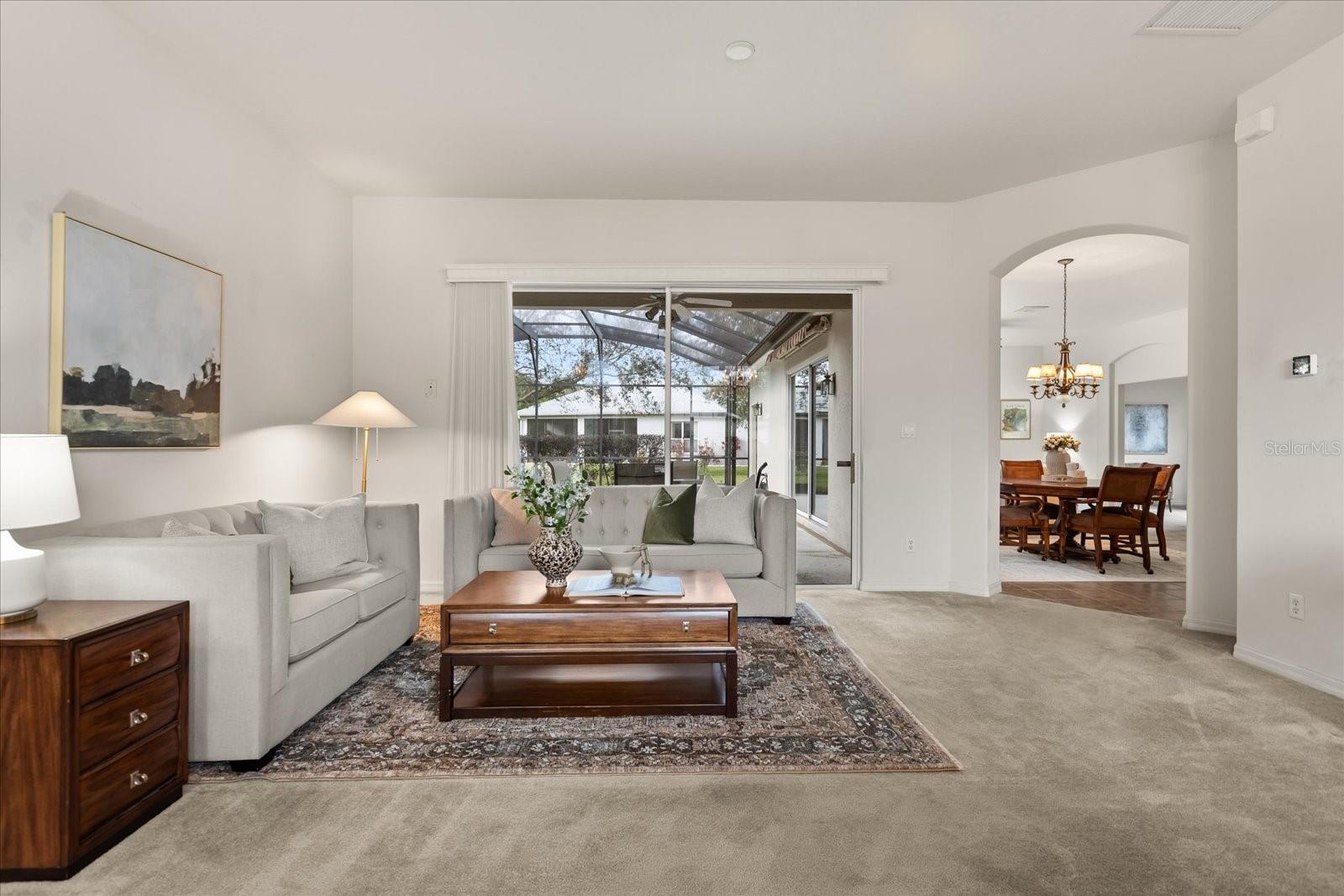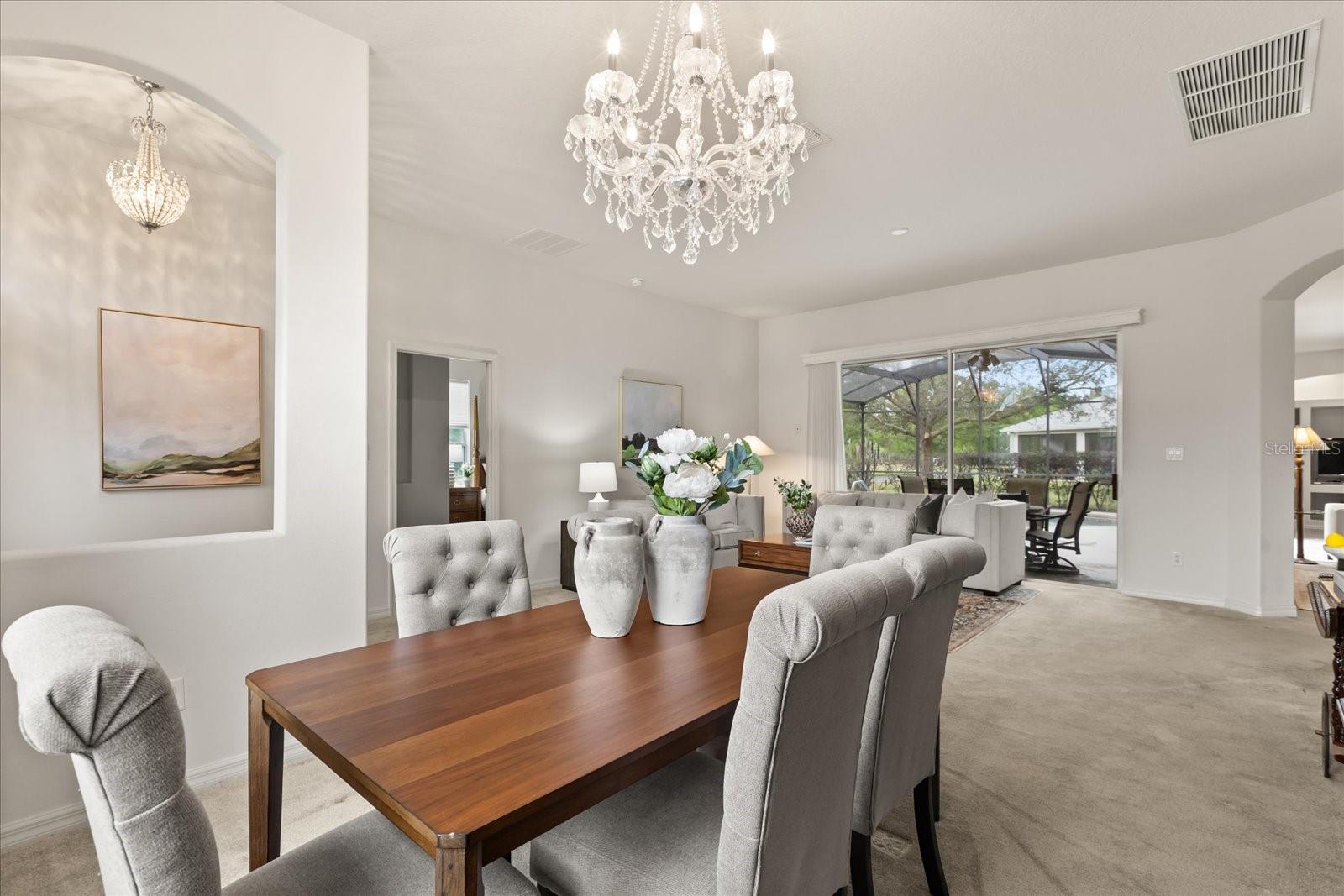 Welcome to your dream home at The Plantation, a special, sought-after 55+ guard-gated community in the heart of Leesburg, where every day feels like a vacation. This isn’t just a place to live — it’s a place to thrive. With two beautiful 18-hole golf courses, lighted tennis and pickleball courts, volleyball, heated swimming pools, a hot tub, fitness centers, a billiards room, a restaurant, and a cozy tavern, there's never a dull moment. And with over 100 activities each week, you'll never run out of things to do. Whether you're riding your bike, walking, or cruising the neighborhood in your golf cart, the charm of this community will always leave you feeling at peace. This home, nestled on a desirable corner lot, offers more than just comfort — it offers a lifestyle. It’s ideally located near the residents-only back entrance, and within walking distance to tennis courts and the community pool. When you step inside, you’re immediately greeted by a warm, welcoming foyer leading into an elegant formal living and dining room, perfect for hosting cherished family gatherings and making lifelong memories. The master suite is nothing short of a sanctuary. Imagine waking up every morning to breathtaking views of the pond and pool, and enjoying the peace and privacy of your own retreat. The spacious closet will make storage a breeze, and the master bath feels like a spa, complete with dual sinks, a garden tub for soaking away the day, and a separate shower for your ultimate relaxation. The heart of the home is the open-concept kitchen, where you’ll find yourself cooking up your favorite meals while enjoying the company of family and friends in the adjacent family room and breakfast nook. With generous cabinet and countertop space, this kitchen is a true haven for anyone who loves to cook and entertain. Need a quiet place to work from home? There is a flex space can easily transform into a third bedroom. The second bedroom is also spacious and inviting, with ample closet space, and the second bathroom is perfectly designed for guests with easy access to the pool area. The saltwater heated pool and Jacuzzi outside offer a peaceful retreat where you can unwind, enjoying serene views of the pond while sipping a glass of wine or sharing a meal outdoors with loved ones. It’s the perfect space for creating unforgettable moments. Additional touches like the three-car garage, the convenient laundry room with extra cabinet space, and proximity to all the essentials — grocery stores, restaurants, and pharmacies — add to the ease and comfort of everyday living. Just minutes away, you’ll find a free boat ramp and fishing pier on a stunning 15,000-acre lake, making it easy to enjoy the natural beauty of your surroundings. And when you’re in the mood for shopping, dining, or entertainment, the nearby malls, movie theaters, and attractions in Downtown Orlando, Walt Disney World, and Universal Orlando are only a short drive away. This home is more than just a place — it’s where memories are made, where comfort meets luxury, and where every day feels like a new adventure. It’s your very own personal oasis, waiting for you to make it your own. Schedule your showing today, and start the next chapter of your life in a home that truly has it all.