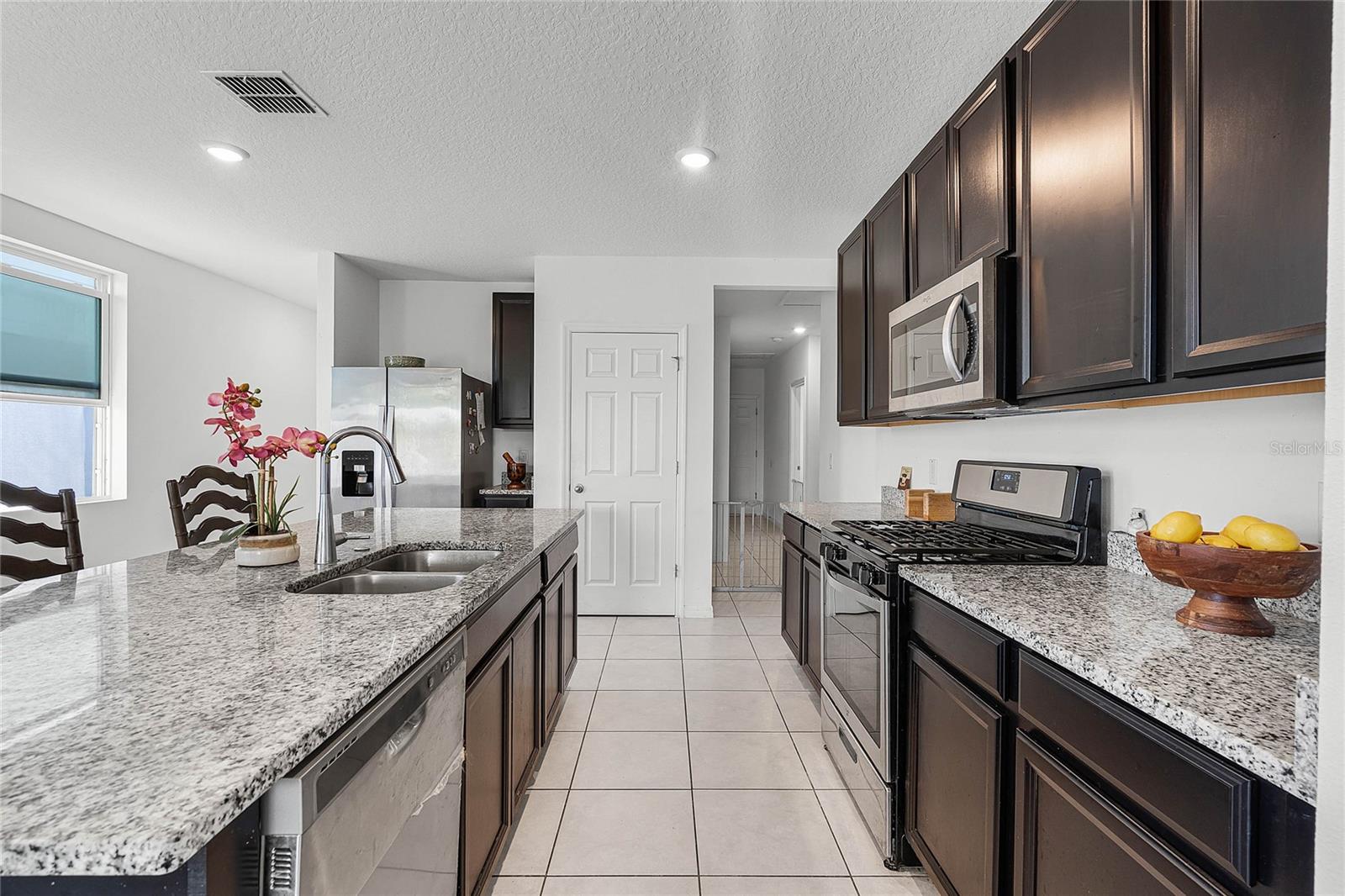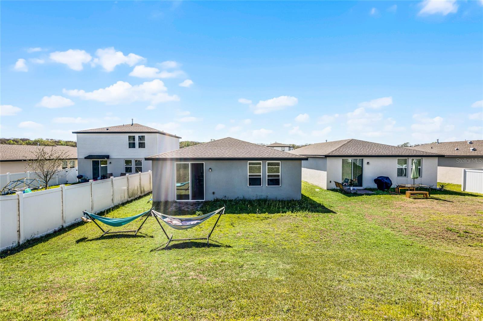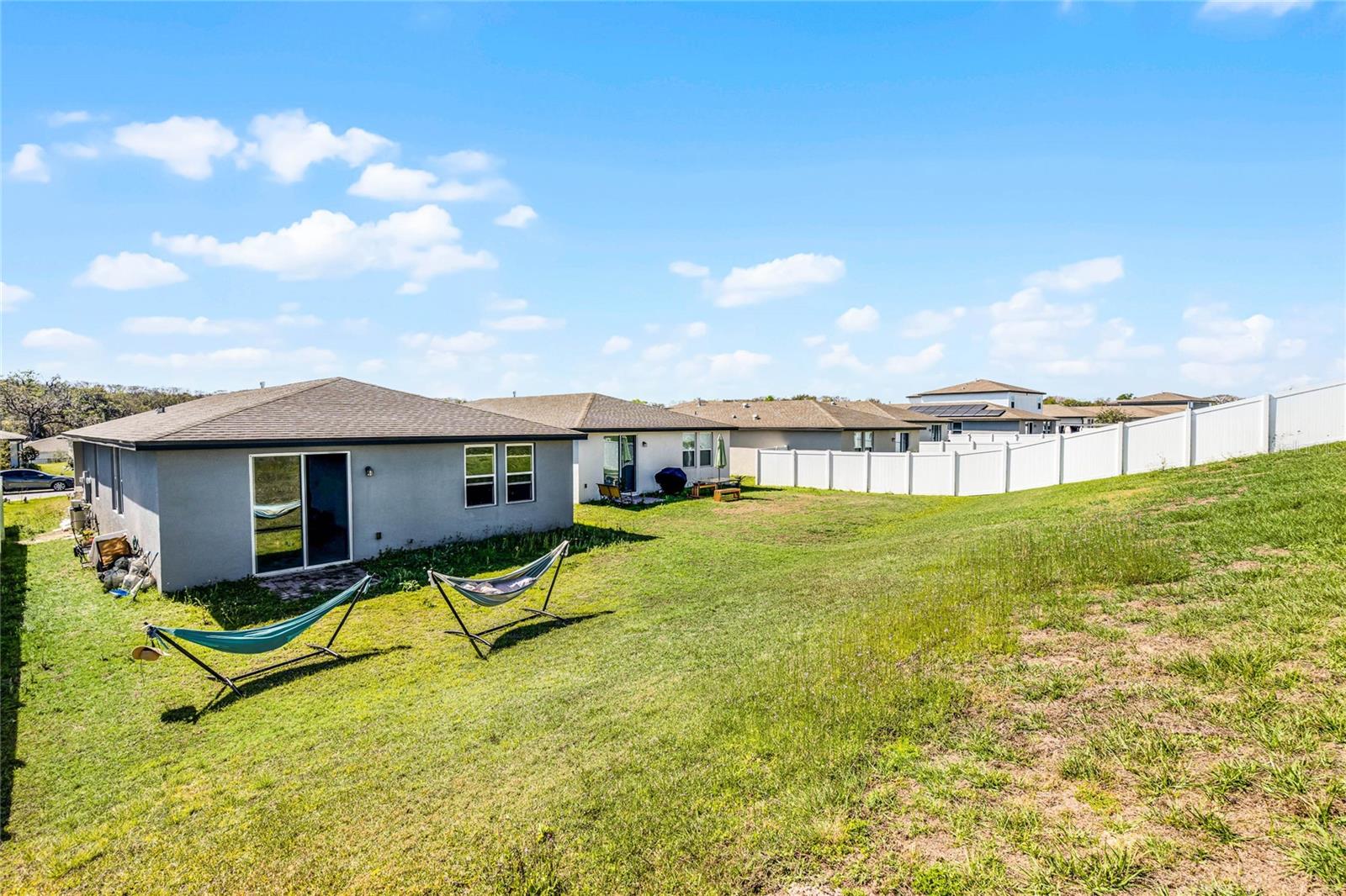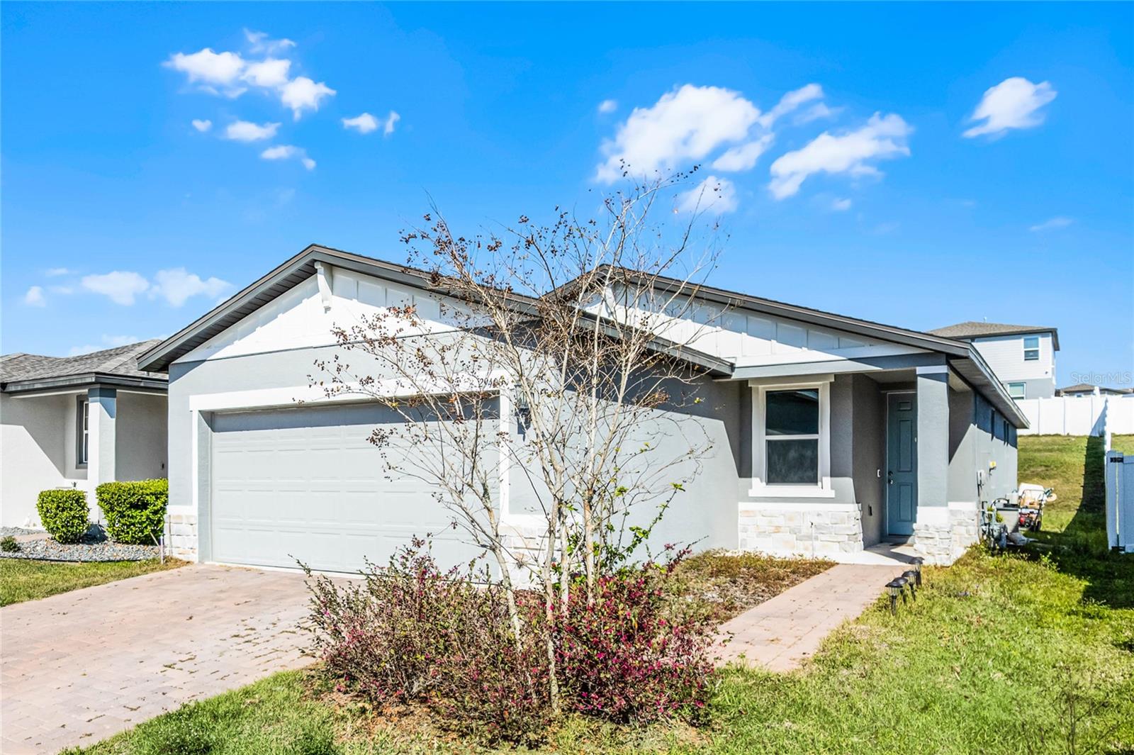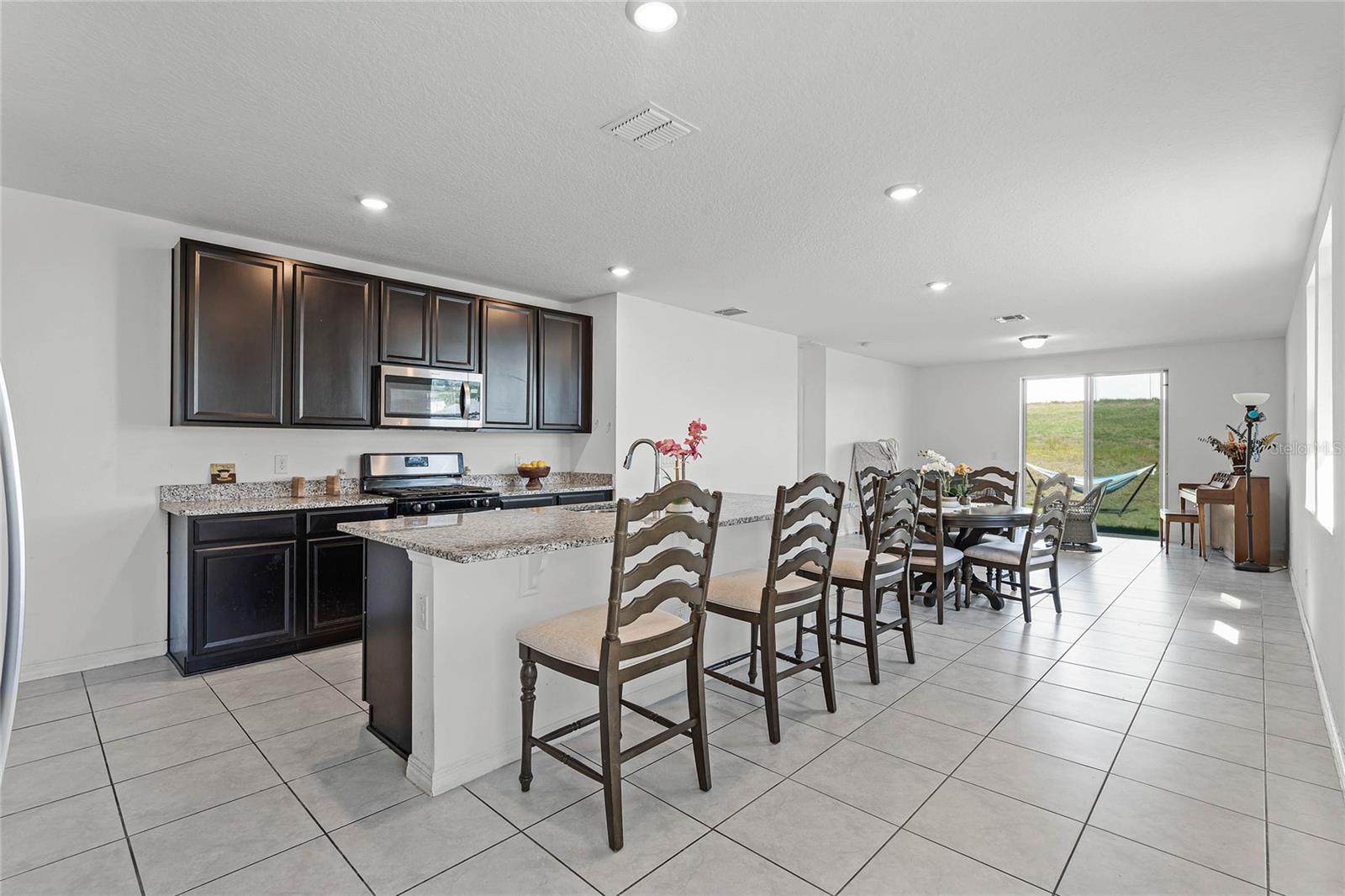 Welcome to this beautiful 4-bedroom, 2-bathroom home in the heart of Leesburg, FL! Nestled in a peaceful neighborhood, this home boast an inviting open floor plan with a spacious living and dining area, perfect for entertaining. The modern kitchen features sleek granite countertops, stainless steel appliances, dark wood cabinetry, and a large center island with bar seating. The master suite offers a private retreat with a walk-in closet and an en-suite bathroom, while three additional bedrooms provide plenty of space for family or guests. Step outside to a backyard with added privacy and serene views. Additional features include a two-car garage, tile flooring throughout the main living areas, and energy-efficient windows that bring in abundant natural light. Conveniently located near schools, shopping, dining, and major highways. The carpets in the bedrooms show some wear and may need refreshing.