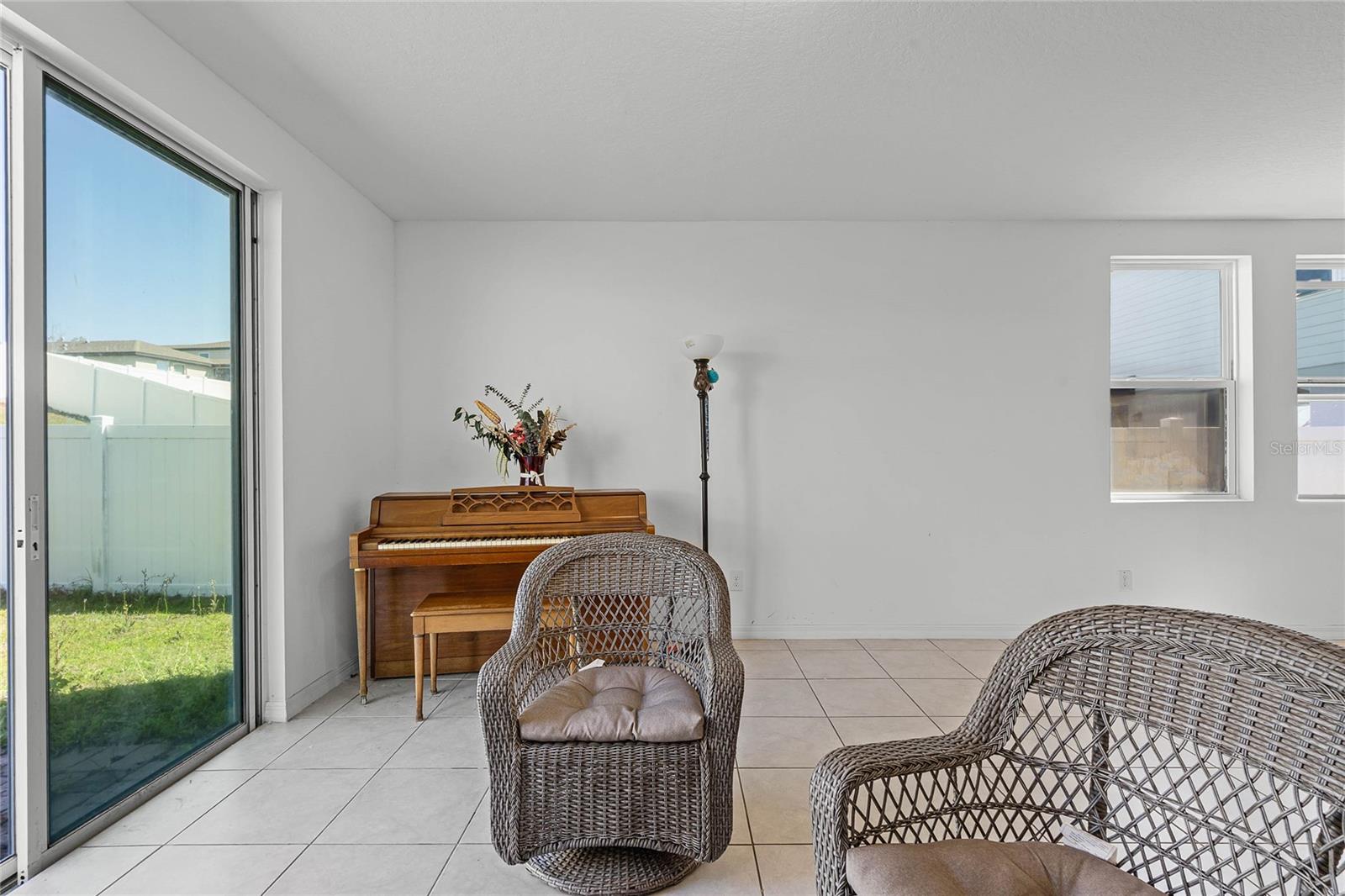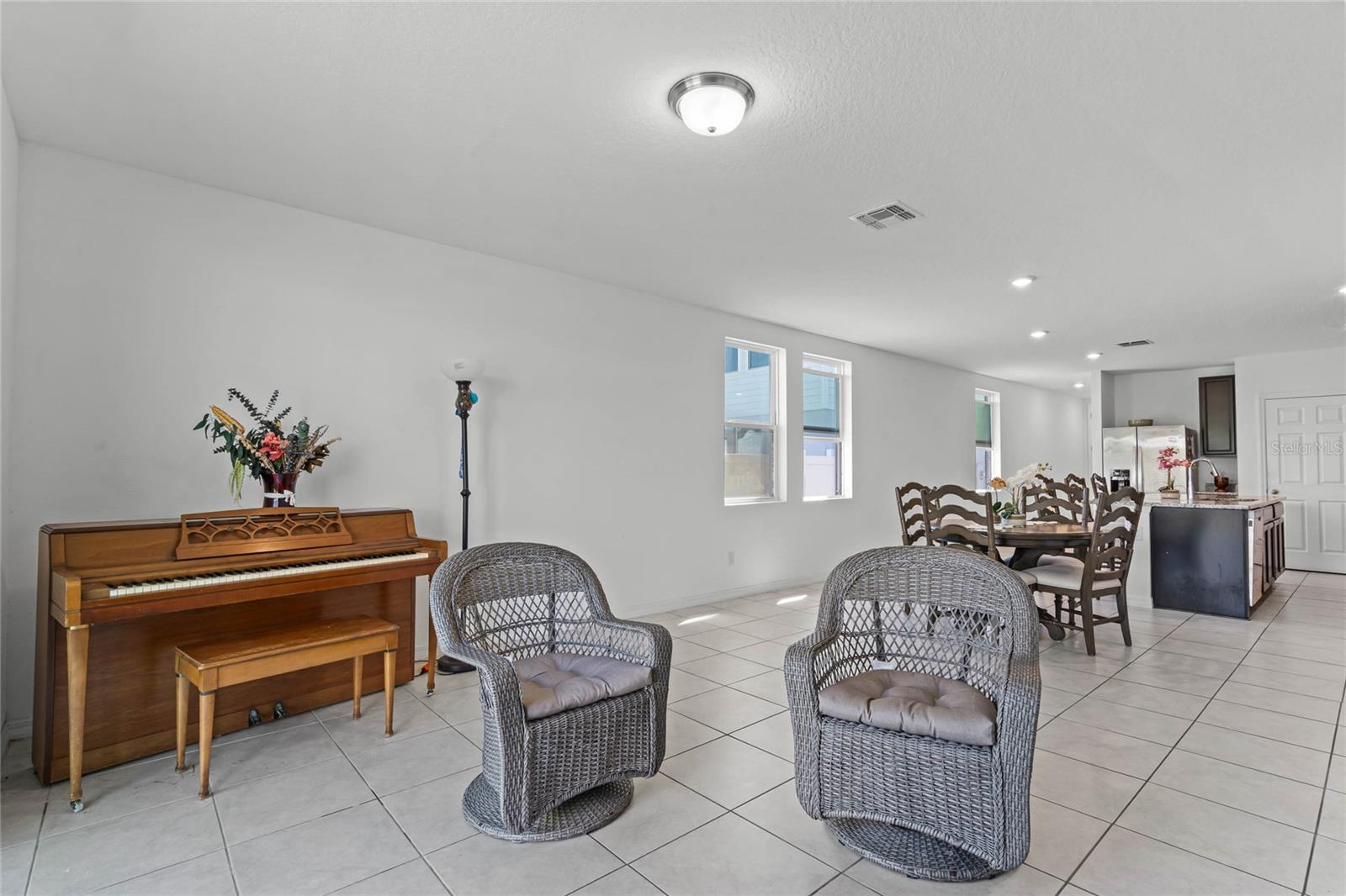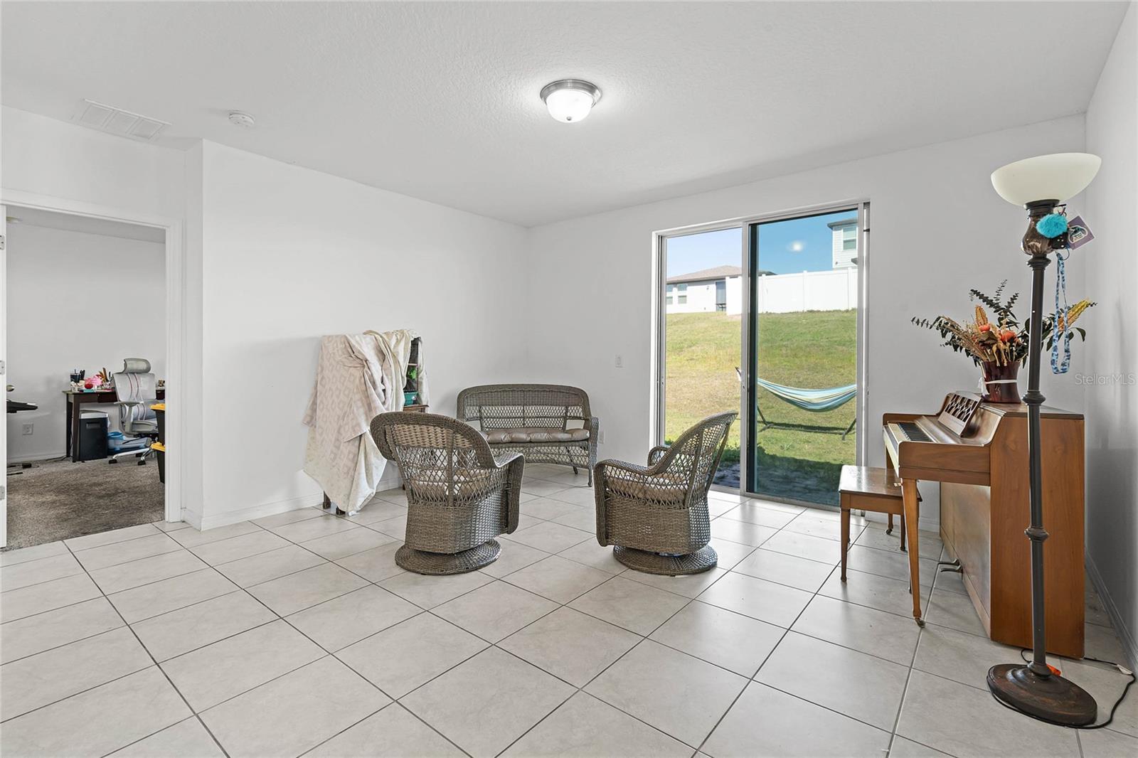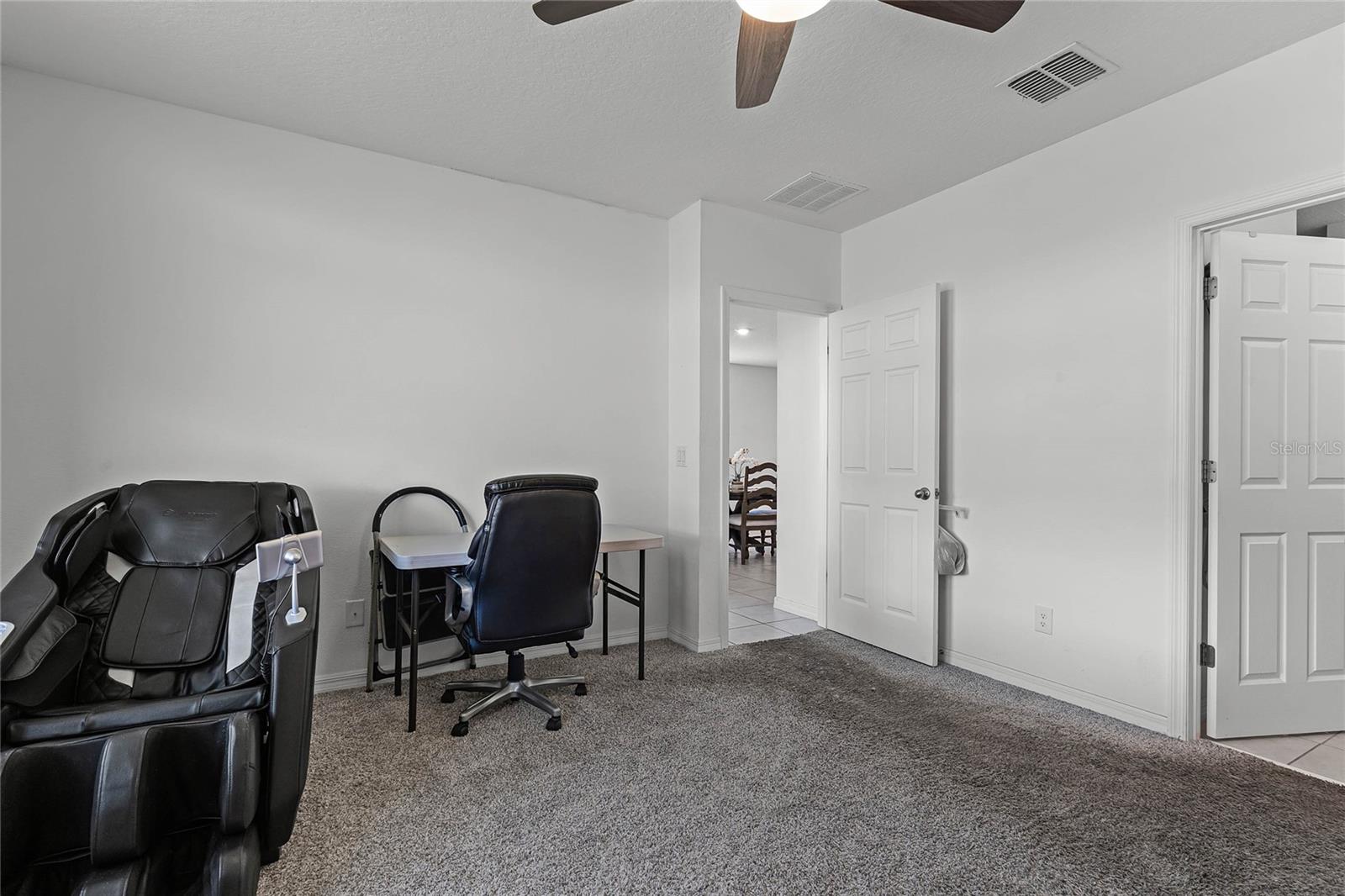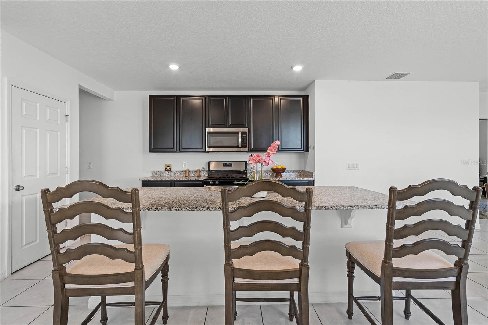 Welcome to this beautiful 4-bedroom, 2-bathroom home in the heart of Leesburg, FL! Nestled in a peaceful neighborhood, this home boast an inviting open floor plan with a spacious living and dining area, perfect for entertaining. The modern kitchen features sleek granite countertops, stainless steel appliances, dark wood cabinetry, and a large center island with bar seating. The master suite offers a private retreat with a walk-in closet and an en-suite bathroom, while three additional bedrooms provide plenty of space for family or guests. Step outside to a backyard with added privacy and serene views. Additional features include a two-car garage, tile flooring throughout the main living areas, and energy-efficient windows that bring in abundant natural light. Conveniently located near schools, shopping, dining, and major highways. The carpets in the bedrooms show some wear and may need refreshing.