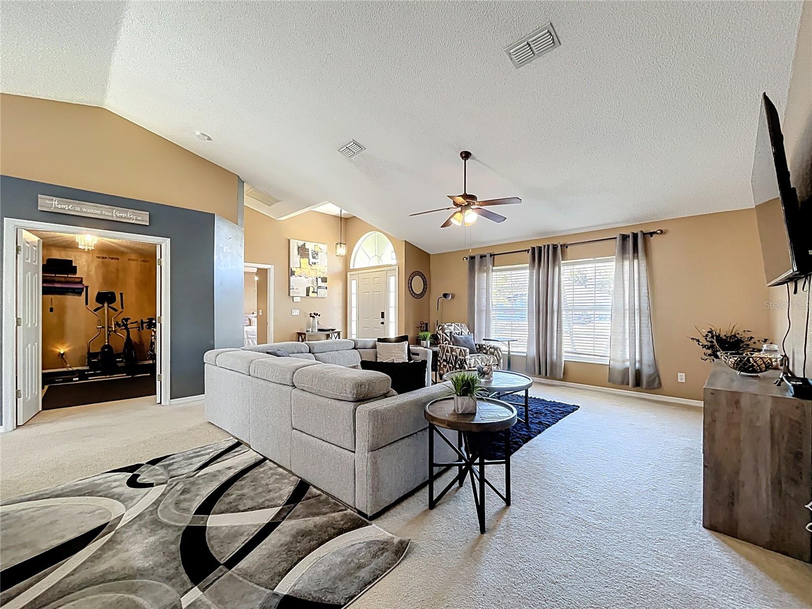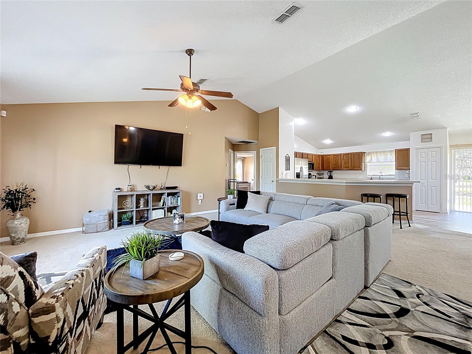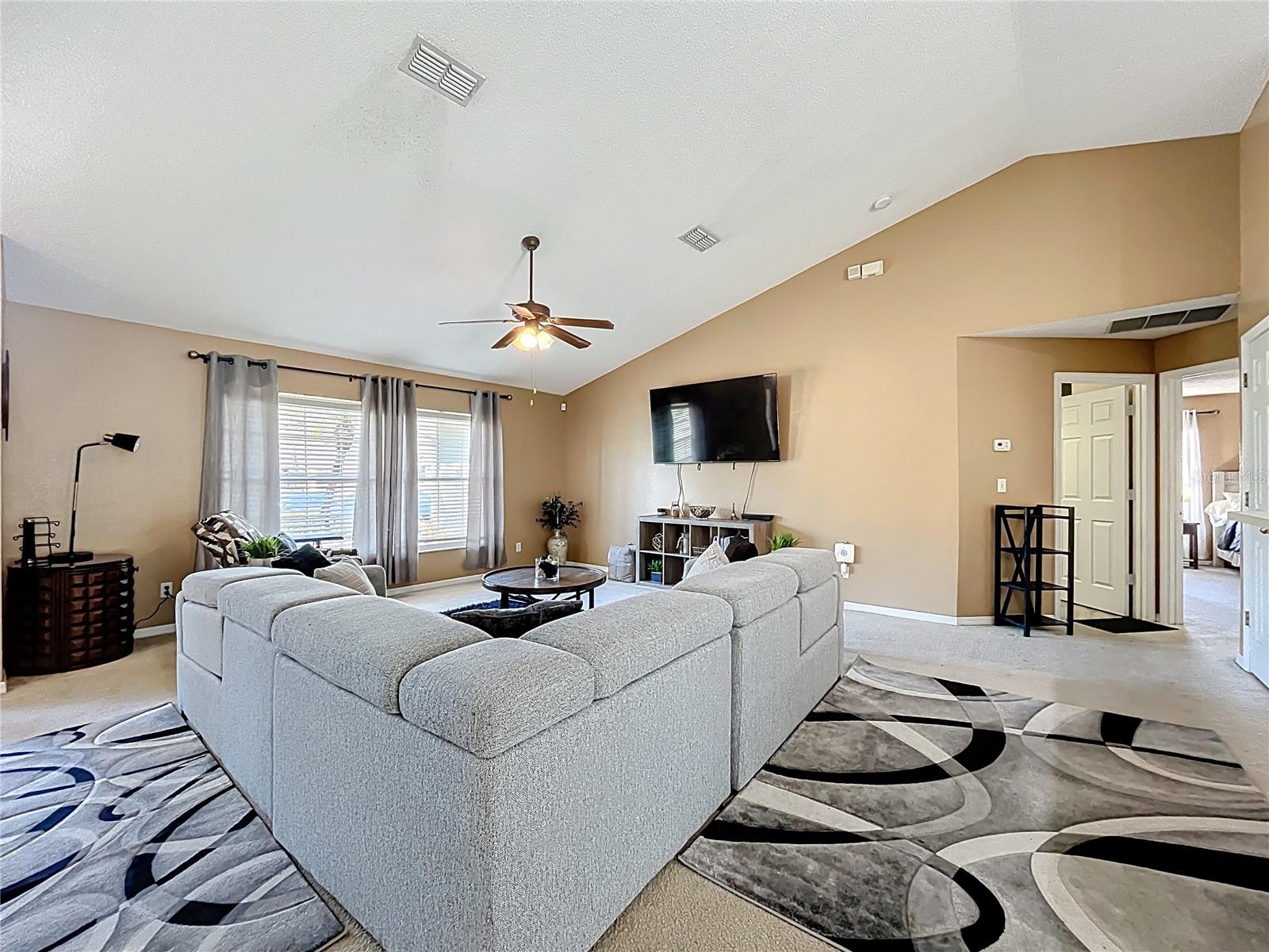 Price Improvement! Welcome Home! This spacious 3-bedroom, 2-bath single-story home has an added bonus room that can be used as an office, gym, or media suite just to name a few options. This gem is a must see. Upon entering the home, you will be impressed with the high ceilings and open floor plan that radiates with tons of natural light. This home's design is a split floor plan featuring an oversized primary bedroom with ensuite bathroom equipped with a garden tub and shower. The remaining two bedrooms, on the opposite side of the home, share a full bathroom. The kitchen has ample cabinet and counter space that will be enjoyed by your resident chef. The sliding glass door leads to the rear of the home and the oversized lot where you and your guests can enjoy the best of Florida living. Newer roof (2019) and ver low HOA with flexible payment options. Conveniently located just 8 minutes from public boat docks on the Chain of Lakes, this home is also within an hour of major theme parks, professional sports venues, and downtown Orlando. Schedule your showing today. This one will not last long.
