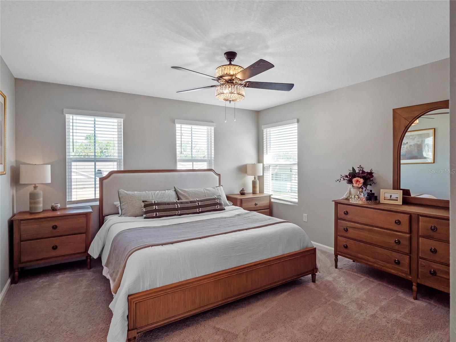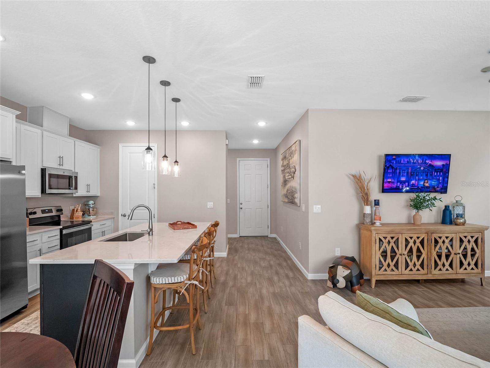 Located in the desirable Seasons at Park Hill, this stunning 3-bedroom, 2.5-bathroom home with a 3-car garage offers a perfect blend of elegance, style, and modern luxury. Built in 2022, this beautifully designed home features an open floor plan with a spacious kitchen boasting an oversized island, stainless steel appliances, and a bright eat-in area—perfect for both casual meals and entertaining. Upstairs, you'll find all three bedrooms, along with a versatile loft space that can be used as a home office, playroom, or media area. The primary suite includes a spa-like ensuite bathroom with dual vanities and a walk-in shower. A convenient upstairs laundry room adds to the home's thoughtful design. Step outside to the covered lanai with fan, overlooking a large backyard, ideal for outdoor gatherings or simply relaxing in the Florida sunshine. Situated in a prime location, this home is just minutes from shopping, dining, entertainment, and top-rated schools, making it the perfect place to call home. Don't miss this opportunity—schedule your showing today!