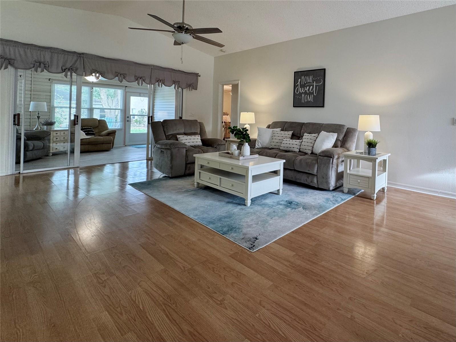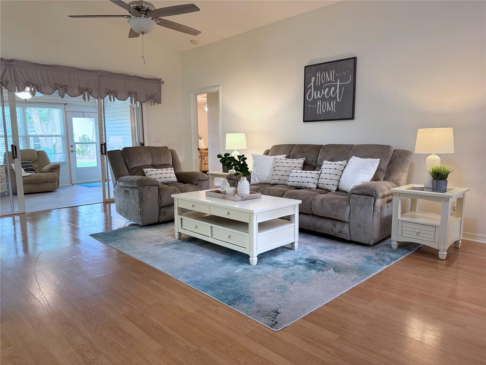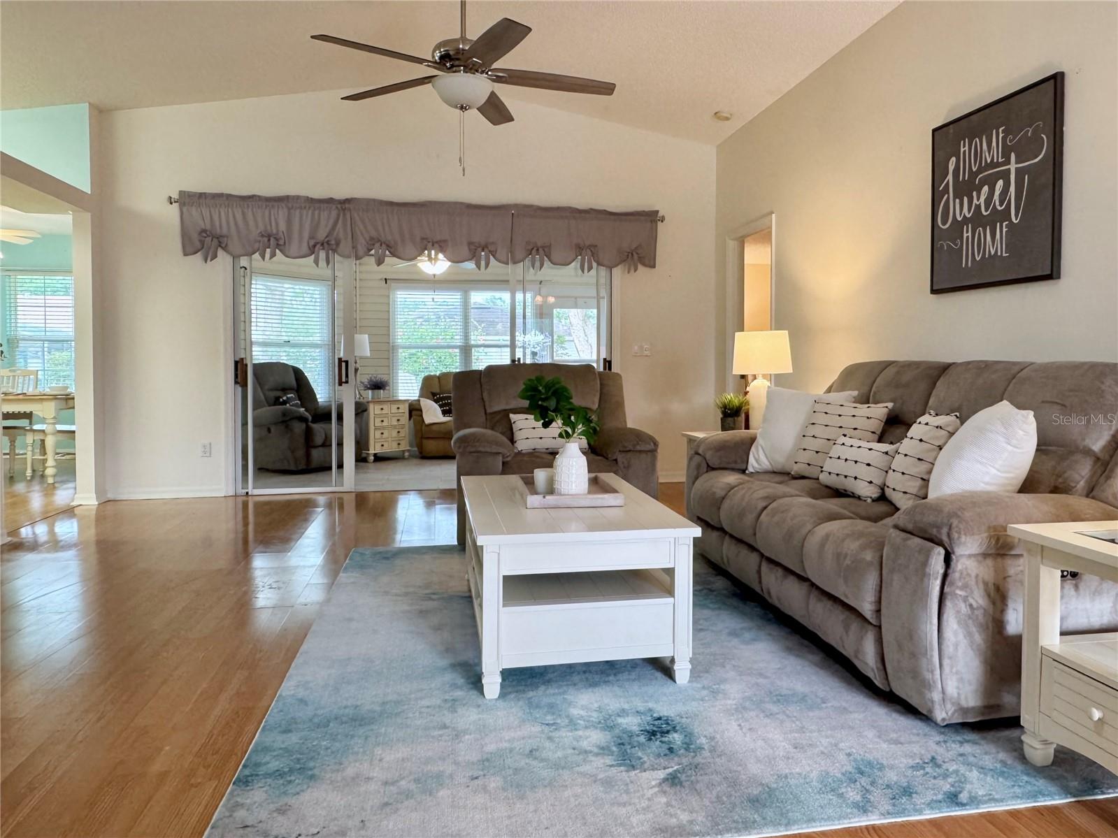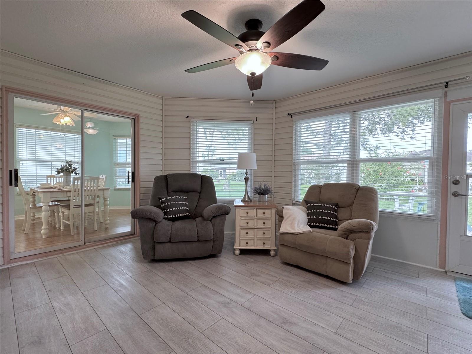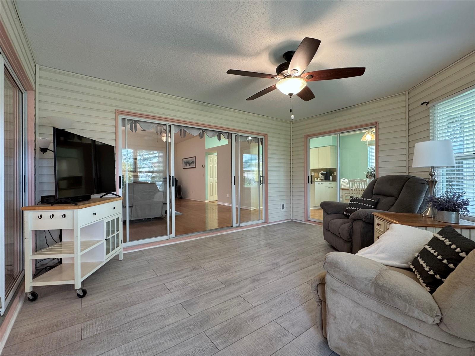 WELCOME to this WELL-MAINTAINED HOME, in the sought after 55+ Pennbrooke Fairways Community, **ROOF 2017 **ALL WINDOWS REPLACED IN 2020 **AC 2018 **HOT WATER HEATER 2021 This bright and inviting home blends comfort and functionality. A front entry with additional glass door welcomes you into a bright and airy interior. Step into a spacious layout enhanced by vaulted ceilings and a skylight adding abundant natural light. The living area opens to a fully enclosed Florida room which is tucked at the back of the home, perfectly situated between the dinette and primary bedroom that combines indoor comfort with outdoor charm - ideal for a morning coffee, quiet reading or entertaining guests. The kitchen is filled with natural light and offers ample countertop space along with all included appliances. A large dinette area, complete with a ceiling fan and sliding door to the Florida room, provides the perfect setting for everyday meals or casual gatherings. A closet pantry in the kitchen adds convenient storage. A doorway leading directly to the laundry room, which includes the washer and dryer, provides access to the garage. The primary bedroom is privately located off the main living space and features a ceiling fan, while the en-suite bathroom boasts a skylight, walk-in shower, double-sink vanity with drawers and cabinets, a medicine cabinet, a linen closet and a generous walk-in closet. At the front of the home, a hallway near the entry leads to two additional bedrooms with ceiling fans and a secondary bathroom. The front-facing second bedroom features no carpet. The secondary bath includes a tub-shower combo, skylight, linen closet and a vanity with both drawers and cabinet storage. An attached 2-car garage with added screen doors provides secure parking and extra storage. This well designed, move-in ready layout combines an open, airy feel with thoughtful details throughout, offering the ideal balance of comfort and livability. Located in a desirable golf community with clubhouse, pool, pickleball courts and fitness facility. To explore all the amenities and features this community provides, be sure to visit their website...www.pennbrookefairways.org. This HOME is ready for you to move in and start enjoying! WELCOME HOME!