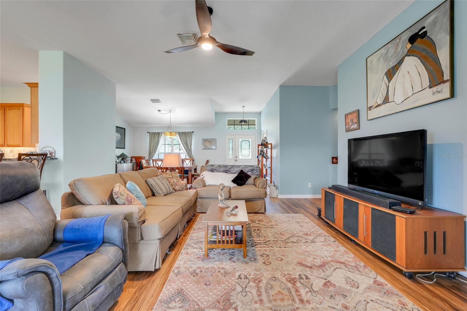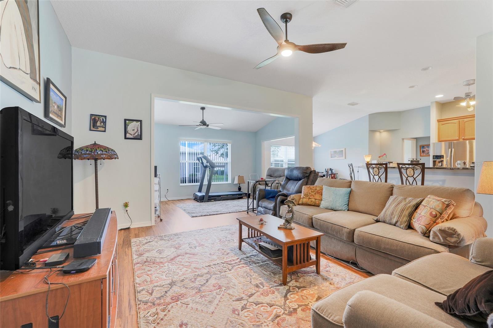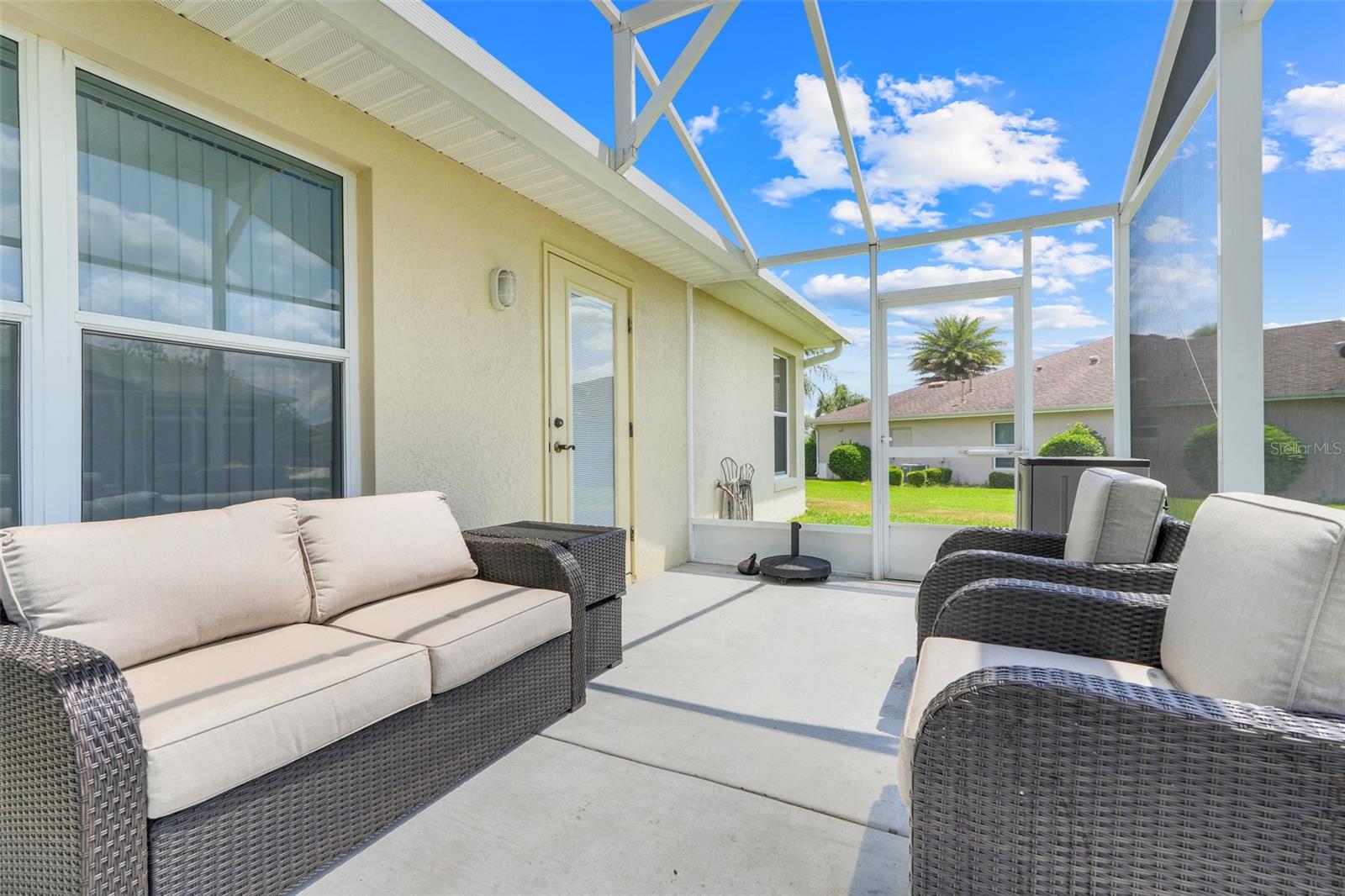 Brand New Roof! Sept-2025! Welcome to this stunning Florida home, featuring 3 bedrooms and 2 bathrooms! Spanning over 2,000 square feet, the wide-open floor plan is perfectly designed for entertaining. The kitchen is undoubtedly the centerpiece, showcasing exquisite Altair granite countertops and a beautiful tumbled stone tile backsplash. The oversized cabinets, crafted from real oak wood, provide both style and ample storage, while the gas range is ideal for the culinary enthusiast. The lighting throughout the home truly elevates its charm, with gorgeous stained glass fixtures adding a touch of elegance. The Primary bedroom is a great size and the seller's have just had the ensuite bathroom shower remodeled with custom solid surface floor to shower ceiling as well as new glass doors and it is simply beautiful! Conveniently located just off the garage, the laundry room includes a washer and dryer, which are included in the sale. Step outside to the lovely screened-in lanai, perfect for hosting backyard barbecues or enjoying your morning coffee. Seller offering a home warranty with this beautiful home. Another standout feature is the exceptional Legacy of Leesburg community, which offers an extensive array of amenities, including a beautiful clubhouse, pool, tennis courts, pickleball, a gym, and miles of walking trails. With numerous planned activities every day, there’s never a dull moment here! The monthly HOA fee provides exceptional value, covering lawn mowing, edging, cable TV, and internet. Plus, Legacy of Leesburg boasts its own TV channel to keep residents informed about daily events. This home is an incredible opportunity that you won't want to miss — show and sell with confidence!