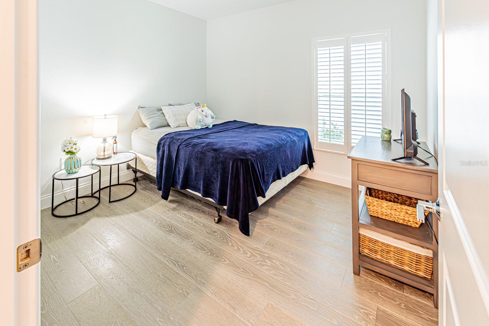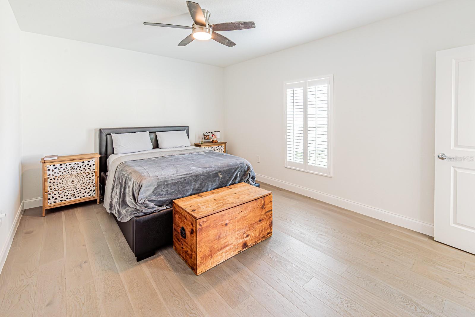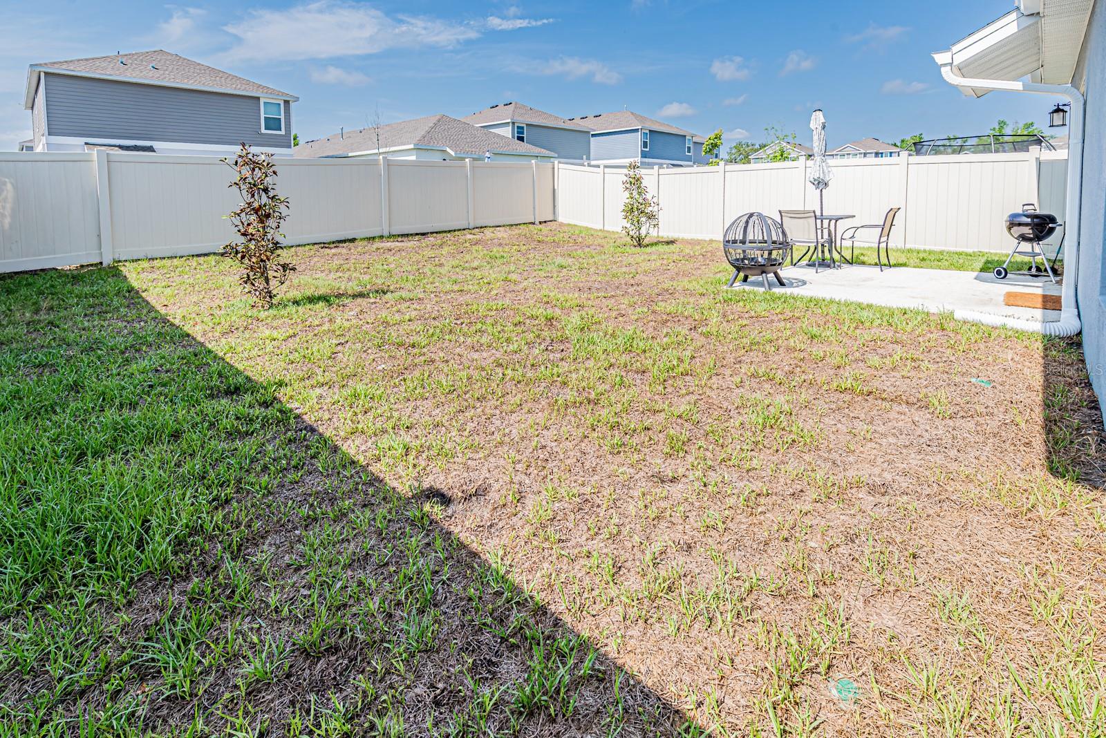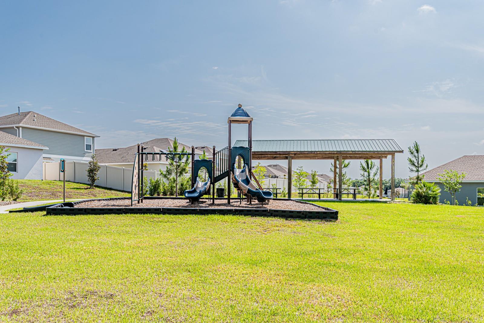 Welcome to this STUNNING, newly built 3-bedroom, 2-bathroom single-family home. Completed in 2023 and thoughtfully UPGRADED for modern living. From the inviting curb appeal with NEW landscaping, hardscapes and a newly installed vinyl privacy fence, to the stylish interior finishes, this home is truly MOVE-IN READY. Upon entering, you are greeted with tile floors, leading you to the heart of the home. Boasting an OPEN-CONCEPT layout, ideal for entertaining, with elegant tile flooring throughout the main living spaces and new WOOD FLOORING in all bedrooms. The kitchen is equipped with stainless steel appliances, grey STONE countertops, white cabinets with new hardware and an inviting kitchen island, perfect for cooking or entertaining. Windows have CUSTOM plantation shutters add a touch of charm and energy efficiency. Enjoy a split bedroom floor plan for added privacy, with the primary suite offering a spacious en suite bathroom, featuring dual sinks, a stand up shower and an enormous walk-in closet. On the other side of the home, you will have 2 additional bedrooms and a spacious guest bathroom. The large laundry room adds everyday convenience off of the garage, while the spacious living areas provide comfort and flow. Located in a community with a dog park and playground, and just minutes from shopping, dining, lake life, and major highways for an easy commute — this home combines comfort, convenience, and style in one exceptional package. Don't miss your opportunity to own this beautifully upgraded home — schedule your private showing today!