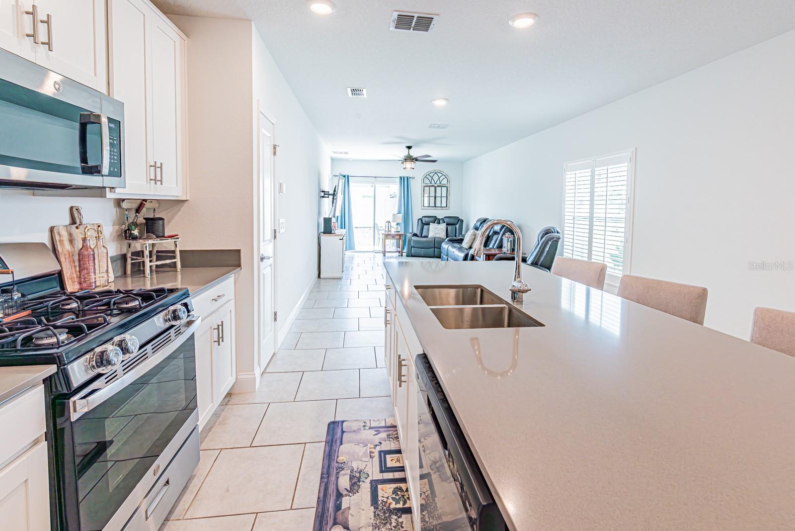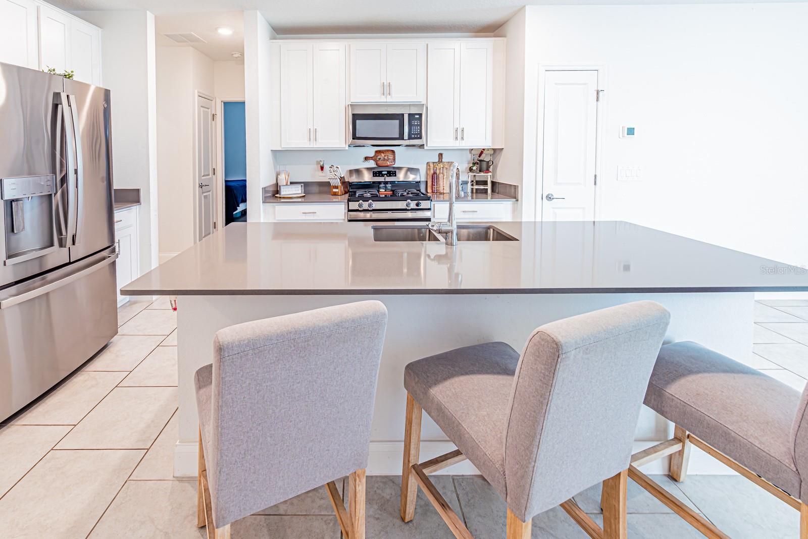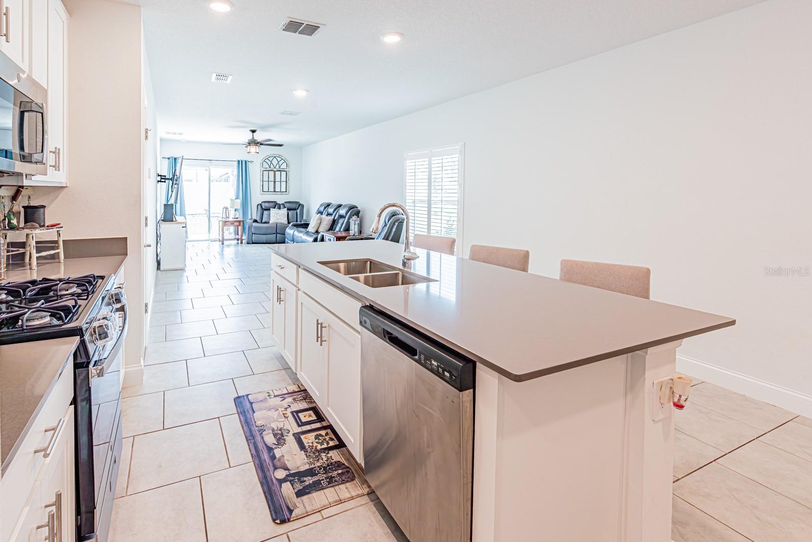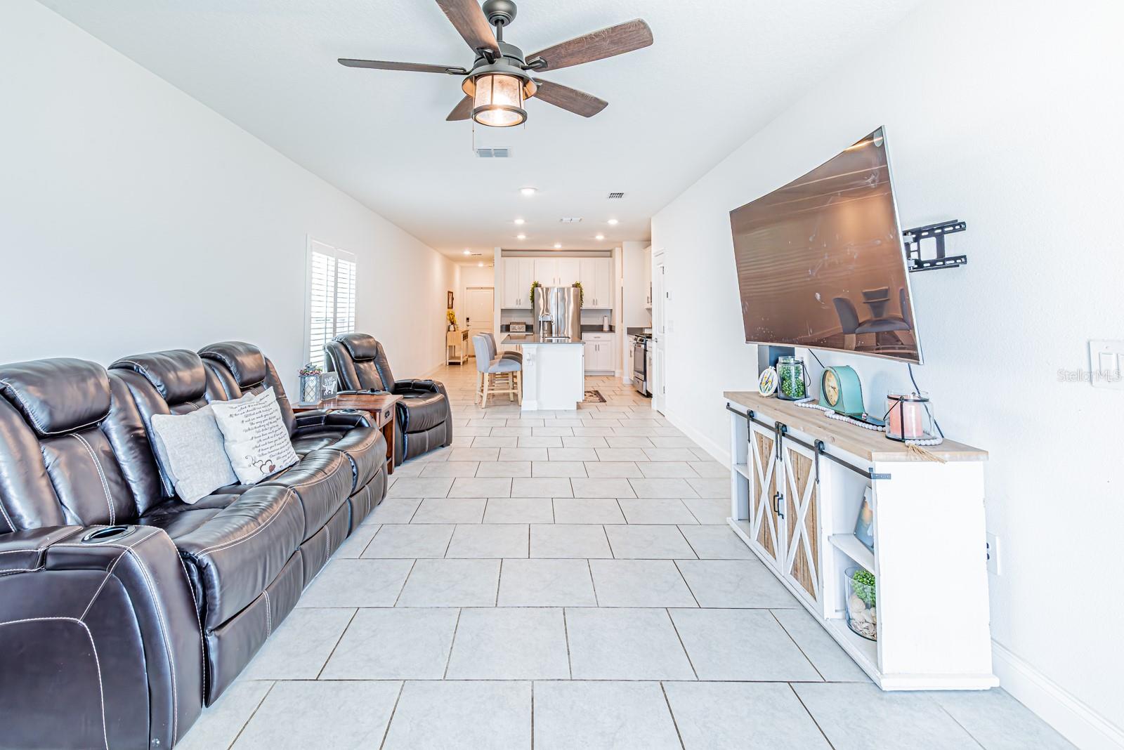 Welcome to this STUNNING, newly built 3-bedroom, 2-bathroom single-family home. Completed in 2023 and thoughtfully UPGRADED for modern living. From the inviting curb appeal with NEW landscaping, hardscapes and a newly installed vinyl privacy fence, to the stylish interior finishes, this home is truly MOVE-IN READY. Upon entering, you are greeted with tile floors, leading you to the heart of the home. Boasting an OPEN-CONCEPT layout, ideal for entertaining, with elegant tile flooring throughout the main living spaces and new WOOD FLOORING in all bedrooms. The kitchen is equipped with stainless steel appliances, grey STONE countertops, white cabinets with new hardware and an inviting kitchen island, perfect for cooking or entertaining. Windows have CUSTOM plantation shutters add a touch of charm and energy efficiency. Enjoy a split bedroom floor plan for added privacy, with the primary suite offering a spacious en suite bathroom, featuring dual sinks, a stand up shower and an enormous walk-in closet. On the other side of the home, you will have 2 additional bedrooms and a spacious guest bathroom. The large laundry room adds everyday convenience off of the garage, while the spacious living areas provide comfort and flow. Located in a community with a dog park and playground, and just minutes from shopping, dining, lake life, and major highways for an easy commute — this home combines comfort, convenience, and style in one exceptional package. Don't miss your opportunity to own this beautifully upgraded home — schedule your private showing today!