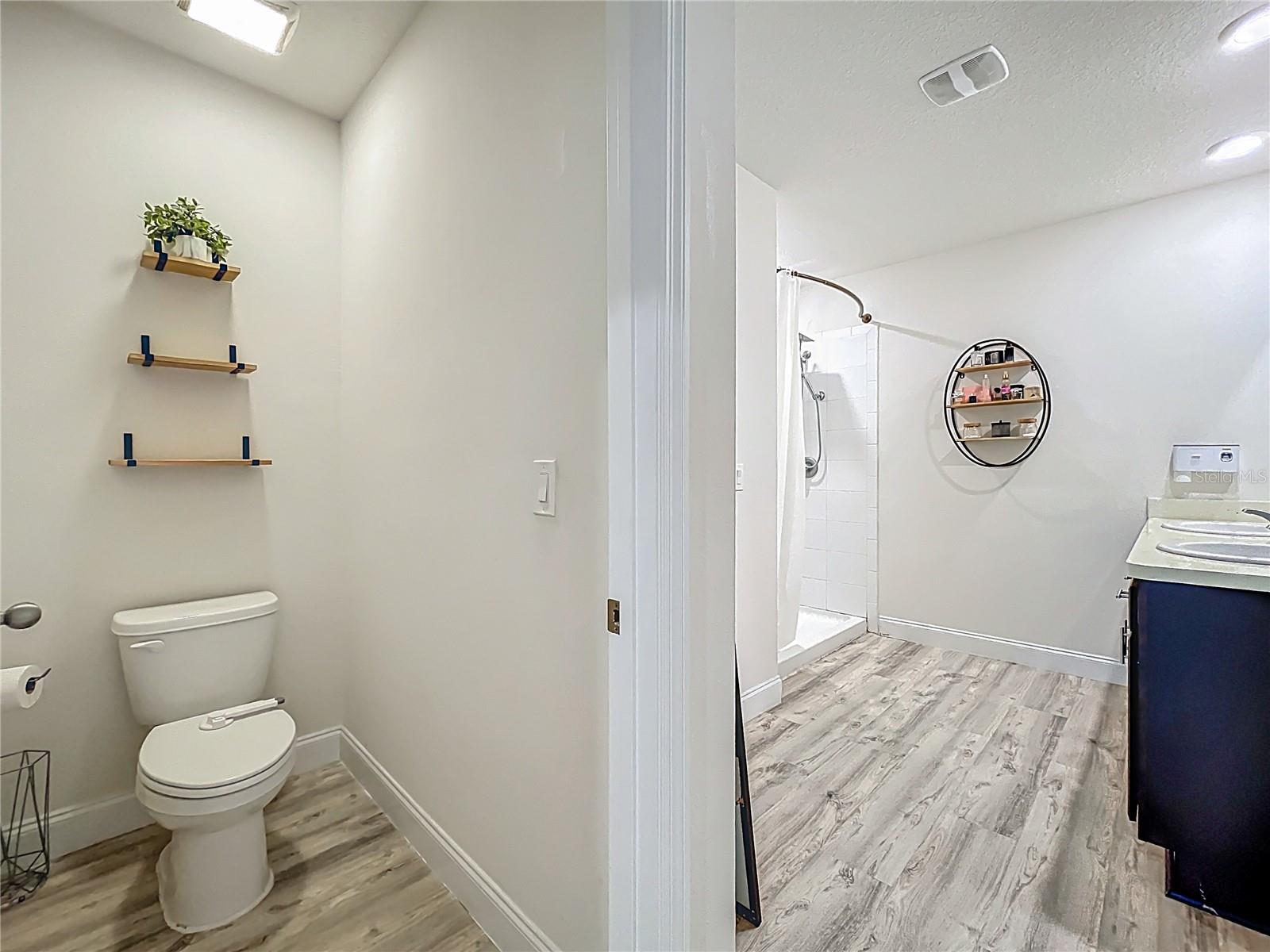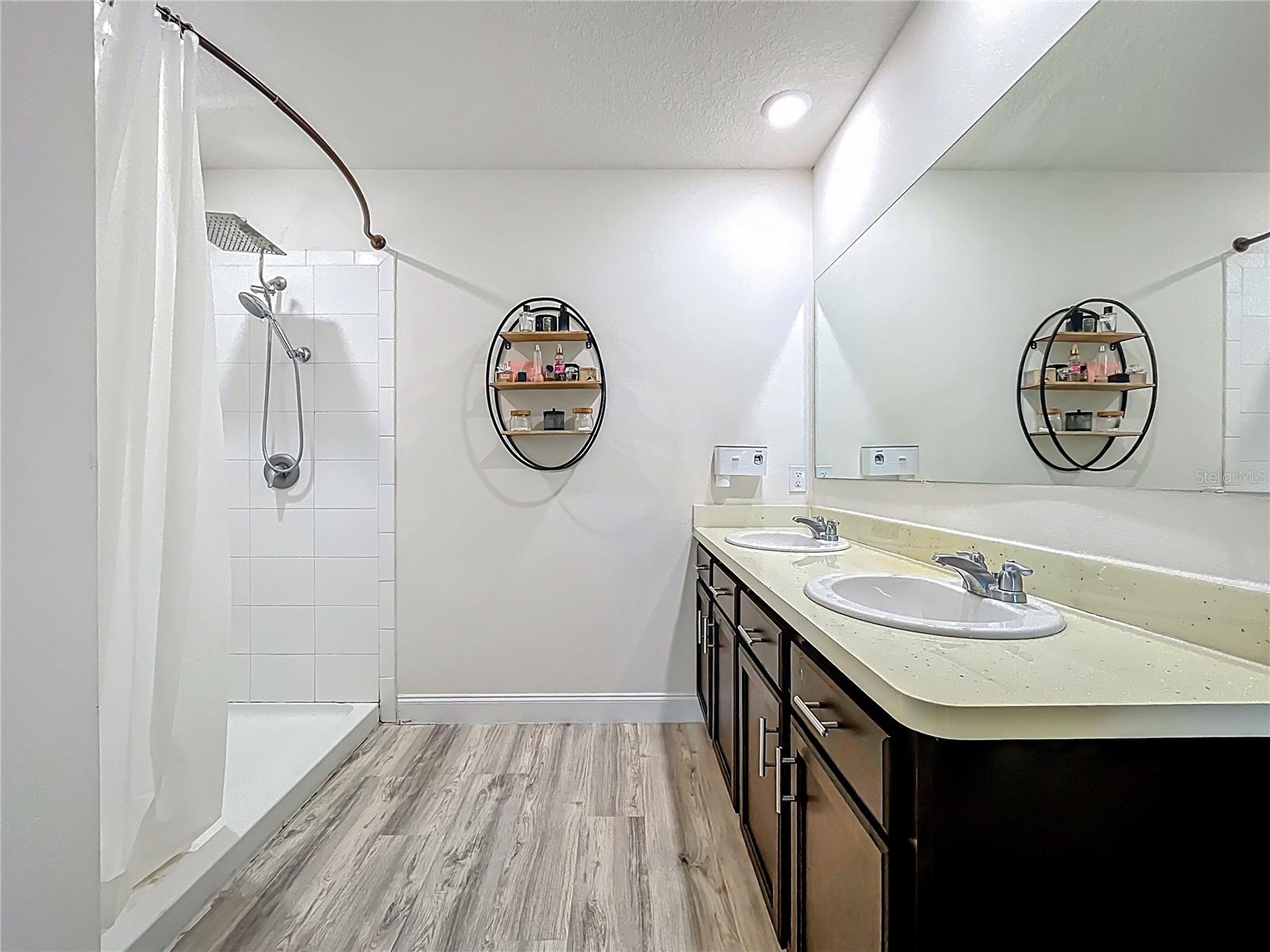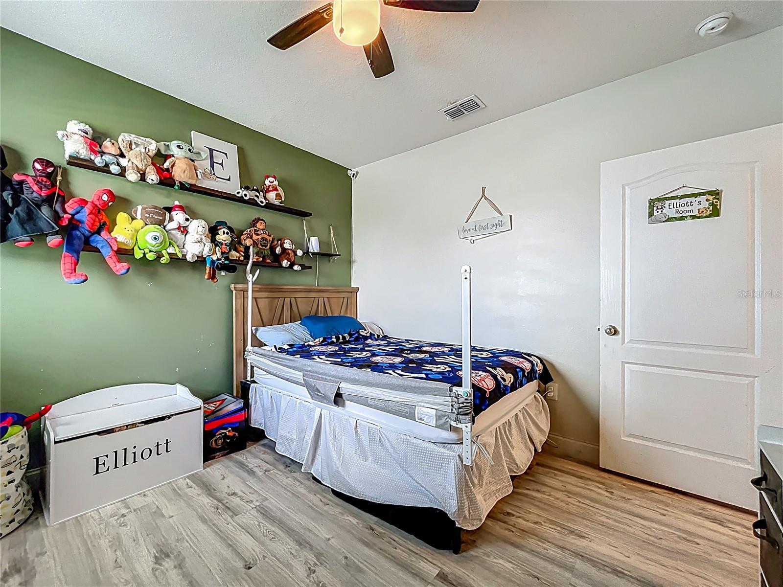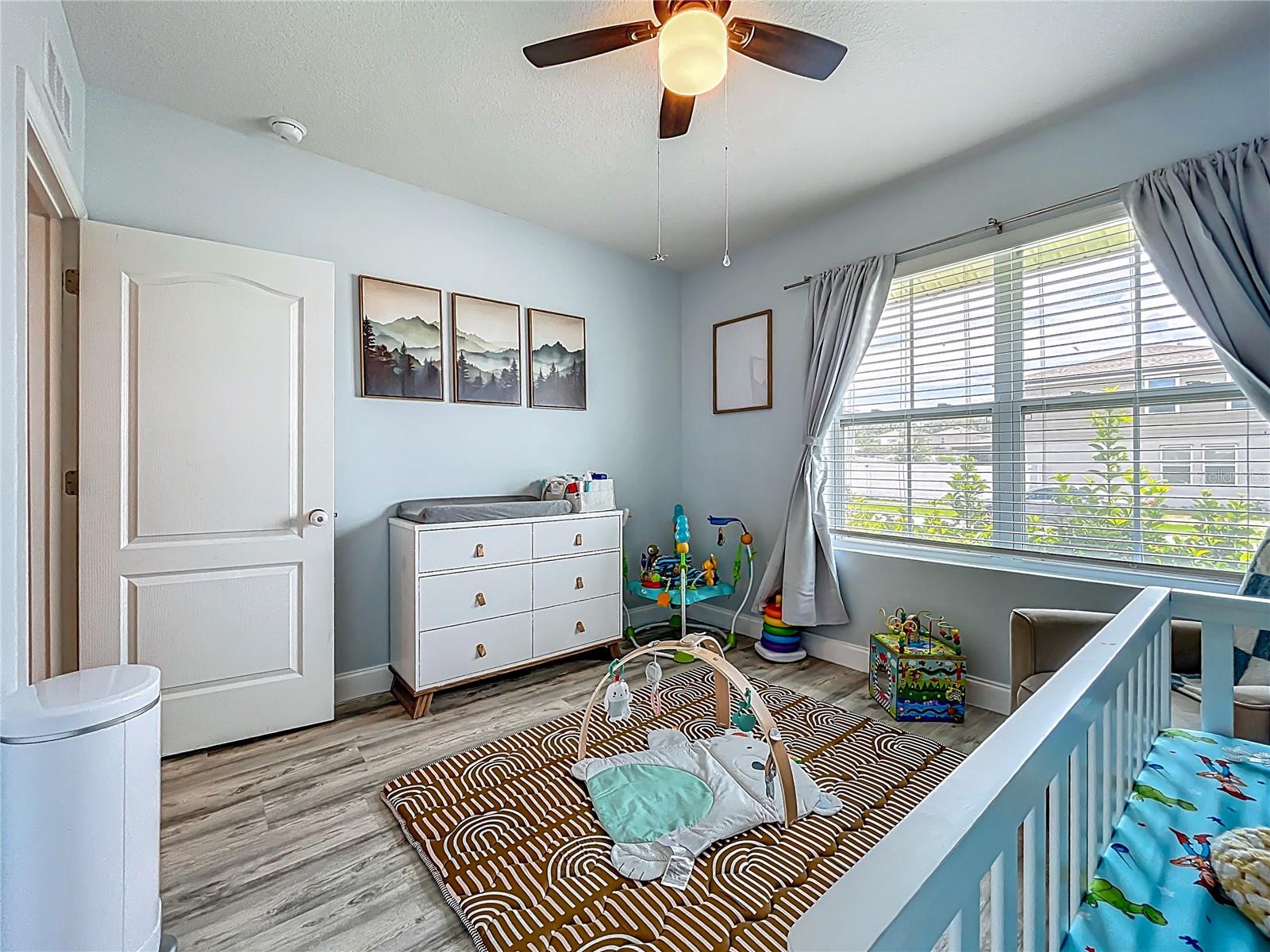This is your opportunity to own this beautifully maintained 3-bedroom, 2-bath split floor plan home, ideally situated on an oversized corner lot in the highly desirable community of Lake Denham. From the moment you step inside, you'll love the open and inviting layout featuring luxury vinyl tile throughout. The spacious kitchen is a true centerpiece, featuring a gas range, large island, stainless steel appliances, and a farmhouse-style sink that looks out into the welcoming living room, highlighted by a custom shiplap accent wall and charming faux fireplace. The primary suite offers a relaxing retreat with a spacious walk-in closet, dual vanities, and a walk-in shower for added ease. Bedrooms two and three are thoughtfully placed on the opposite side of the home, offering privacy for guests or family members. You'll also love the functionality of the laundry room, complete with custom built-in shelving and a handy hanging rack. Step outside to enjoy your fully fenced backyard or relax on the screened-in, covered patio—perfect for morning coffee or evening wind-downs. Just a short stroll down the street, you’ll find the community pool and playground, making it easy to enjoy sunshine-filled days close to home!