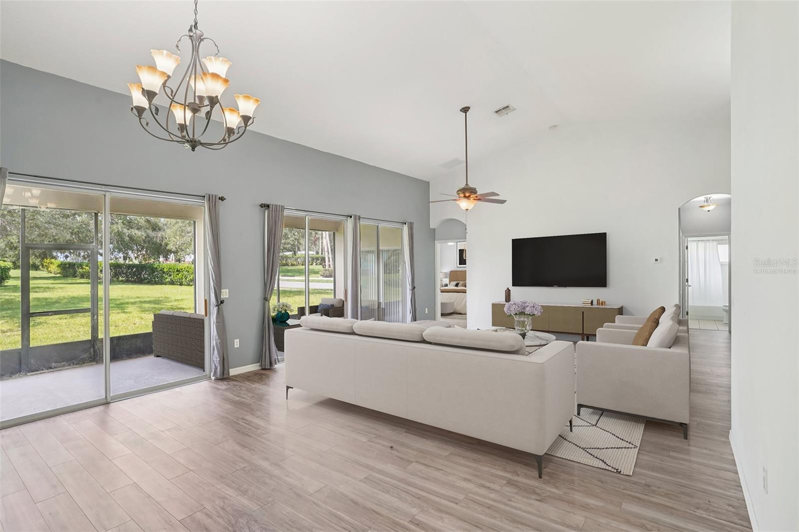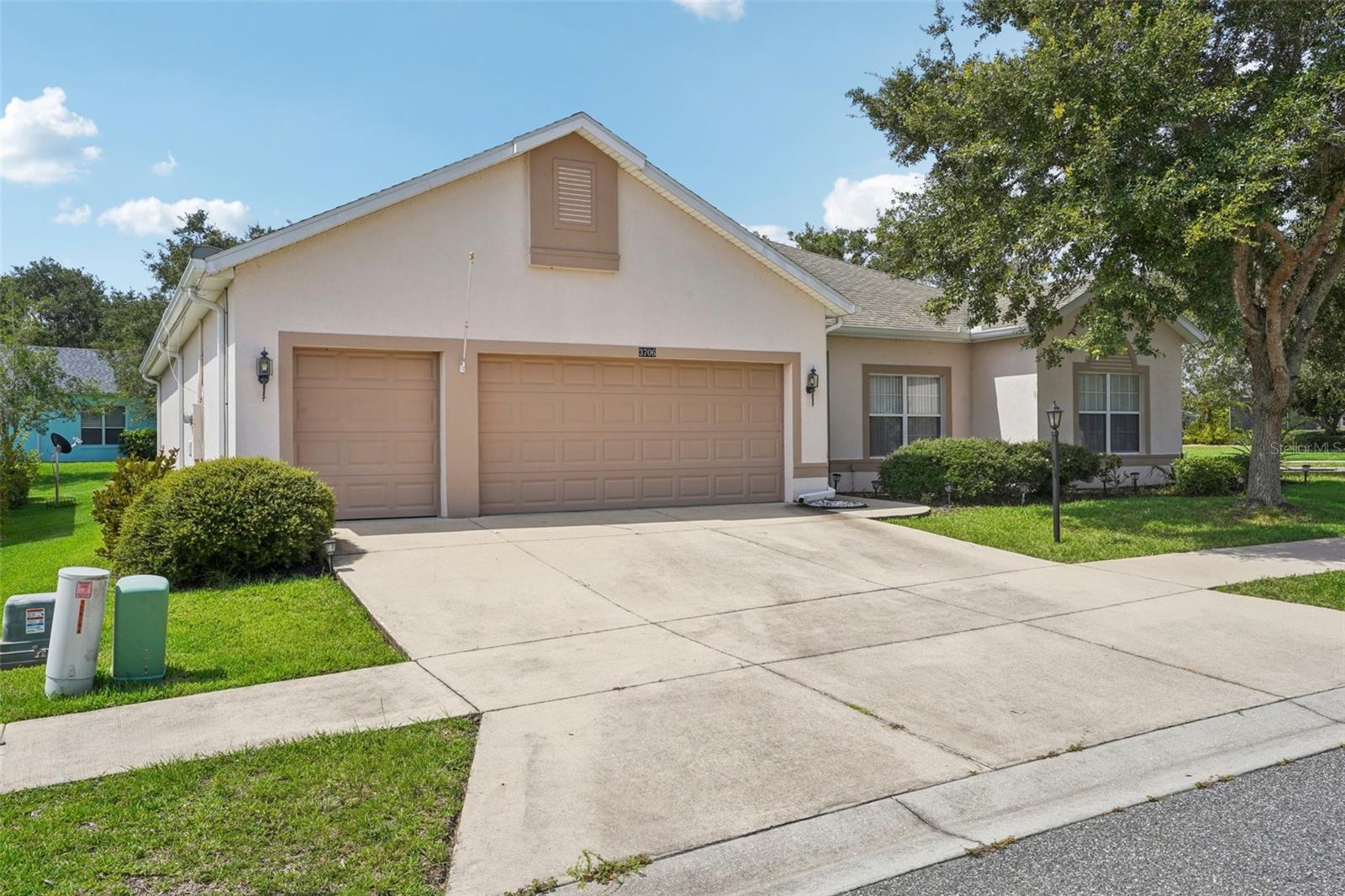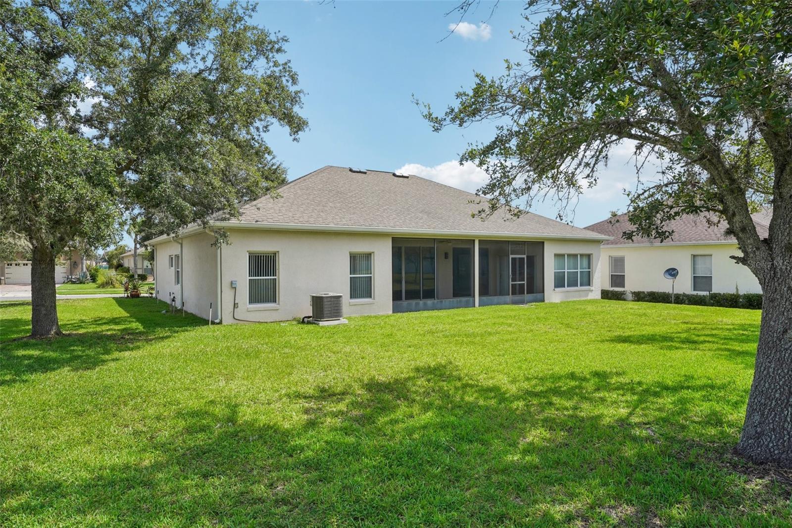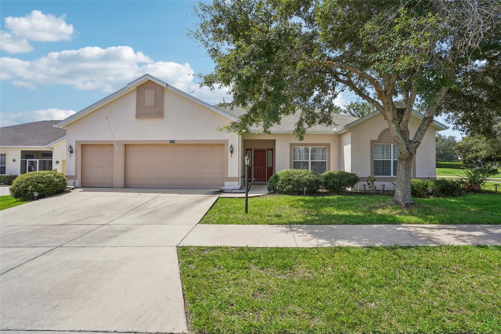 One or more photo(s) has been virtually staged. Seller may consider buyer concessions if made in an offer ~ Located on a spacious .26 ACRE/CORNER LOT in the desirable Plantation at Leesburg - Ashland Village, this 3-bedroom, 2-full bath single story home offers modern comfort in an active 55+ COMMUNITY packed with amenities! *NEW A/C 2023* Inside the home vaulted ceilings and a wall of sliding glass doors floor the main living area with NATURAL LIGHT, creating an open and inviting feel. Easy care TILE and WOOD LAMINATE FLOORS run throughout – no carpet here! The well equipped kitchen features must have STAINLESS STEEL APPLIANCES, a large ISLAND with bar seating, pantry storage, and a bright casual dining area. Enjoy privacy and functionality with the SPLIT BEDROOM layout; your generous PRIMARY SUITE includes a large WALK-IN CLOSET and a dedicated en-suite bath with DUAL/SPLIT VANITIES, a soaking tub and separate shower – creating a personal retreat. The secondary bedrooms and additional bath are thoughtfully placed for guests or hobbies. Step outside to the expansive SCREENED LANAI, an ideal spot to settle in and relax or entertain year-round. There is even GOLF CART PARKING, perfect for exploring the community with ease. Plantation at Leesburg delivers a lifestyle like no other! Residents have access to two golf courses, three pools, walking and biking trails, tennis and pickleball courts, a full-service restaurant, fitness centers, saunas, and so much more. With a GUARD GATED ENTRANCE and a calendar full of social events, activities, and clubs, you will never run out of things to do or people to meet. Located just minutes from US Hwy 27 and the Florida Turnpike, you are close to everything yet surrounded by tranquility, and whether you are looking for a full time residence or a warm weather retreat, this home delivers the space, style, and community you have been waiting for. Call today to schedule a tour and starting living like you are on vacation all year long!