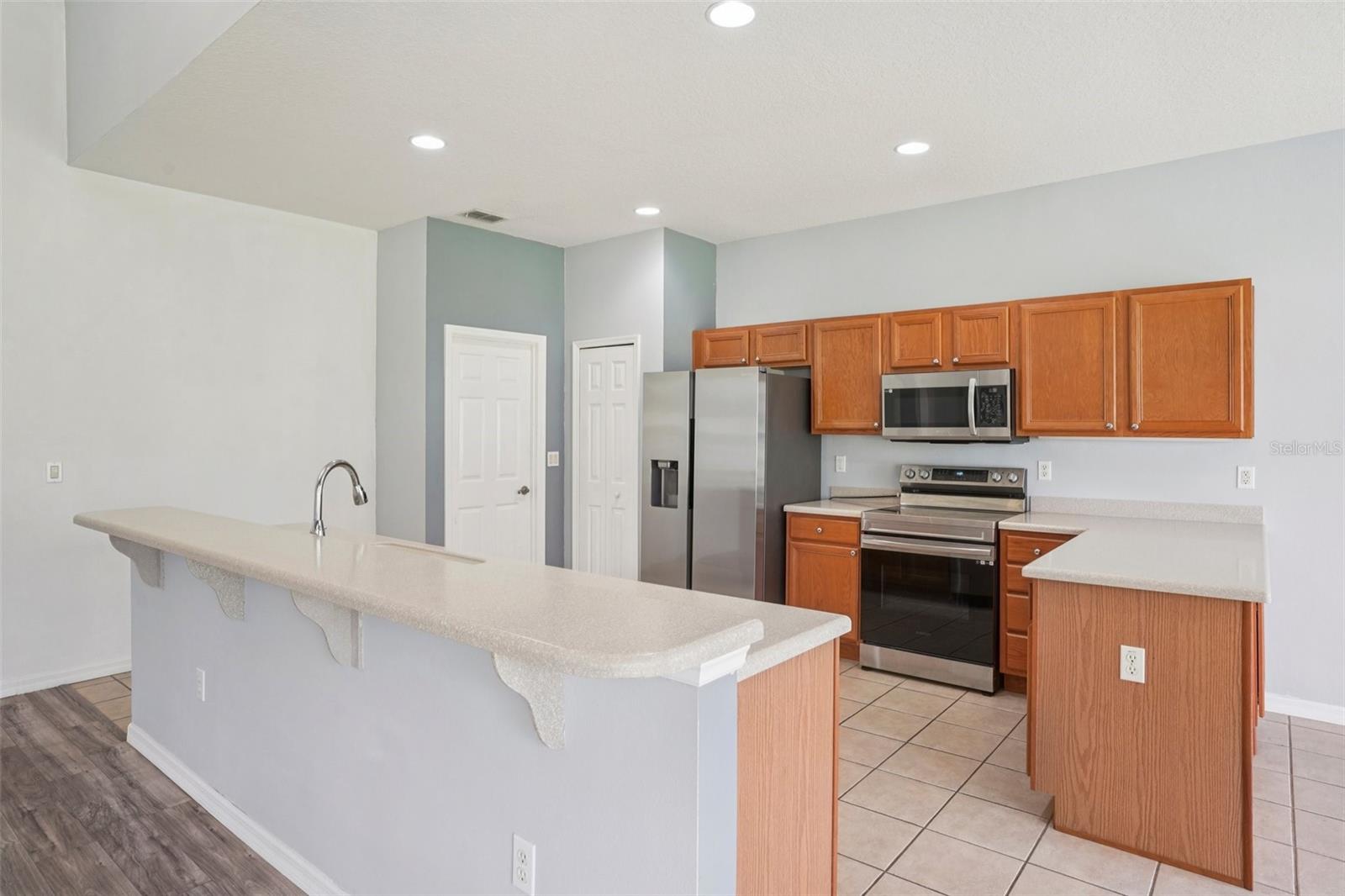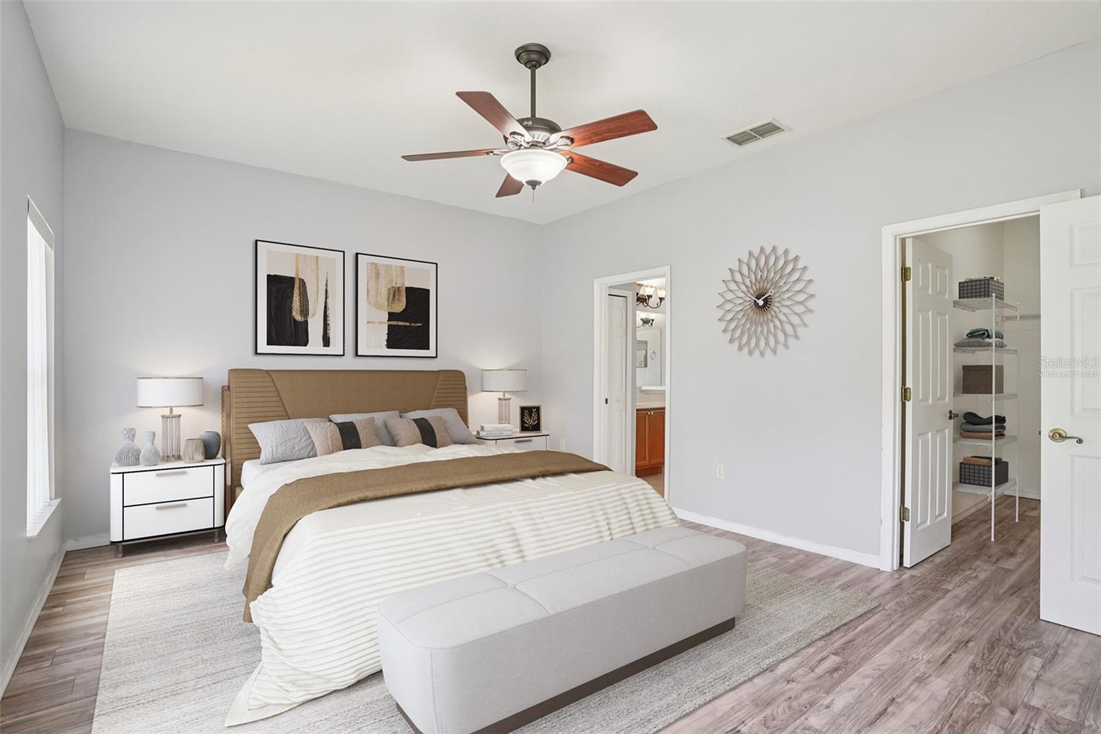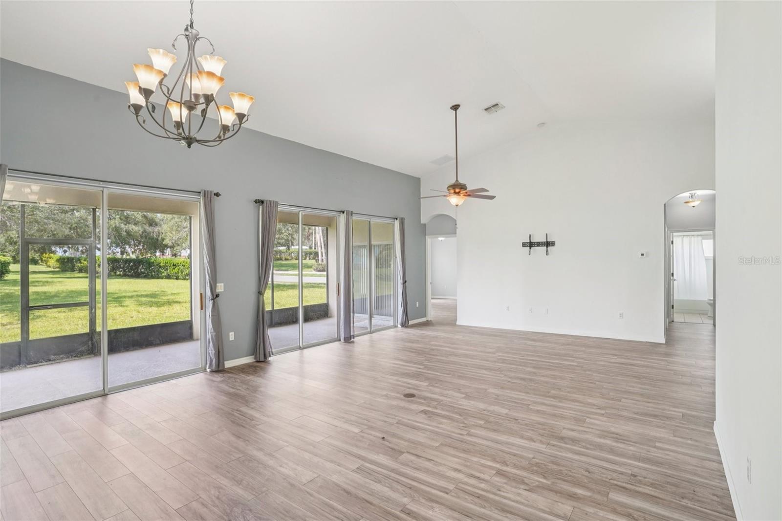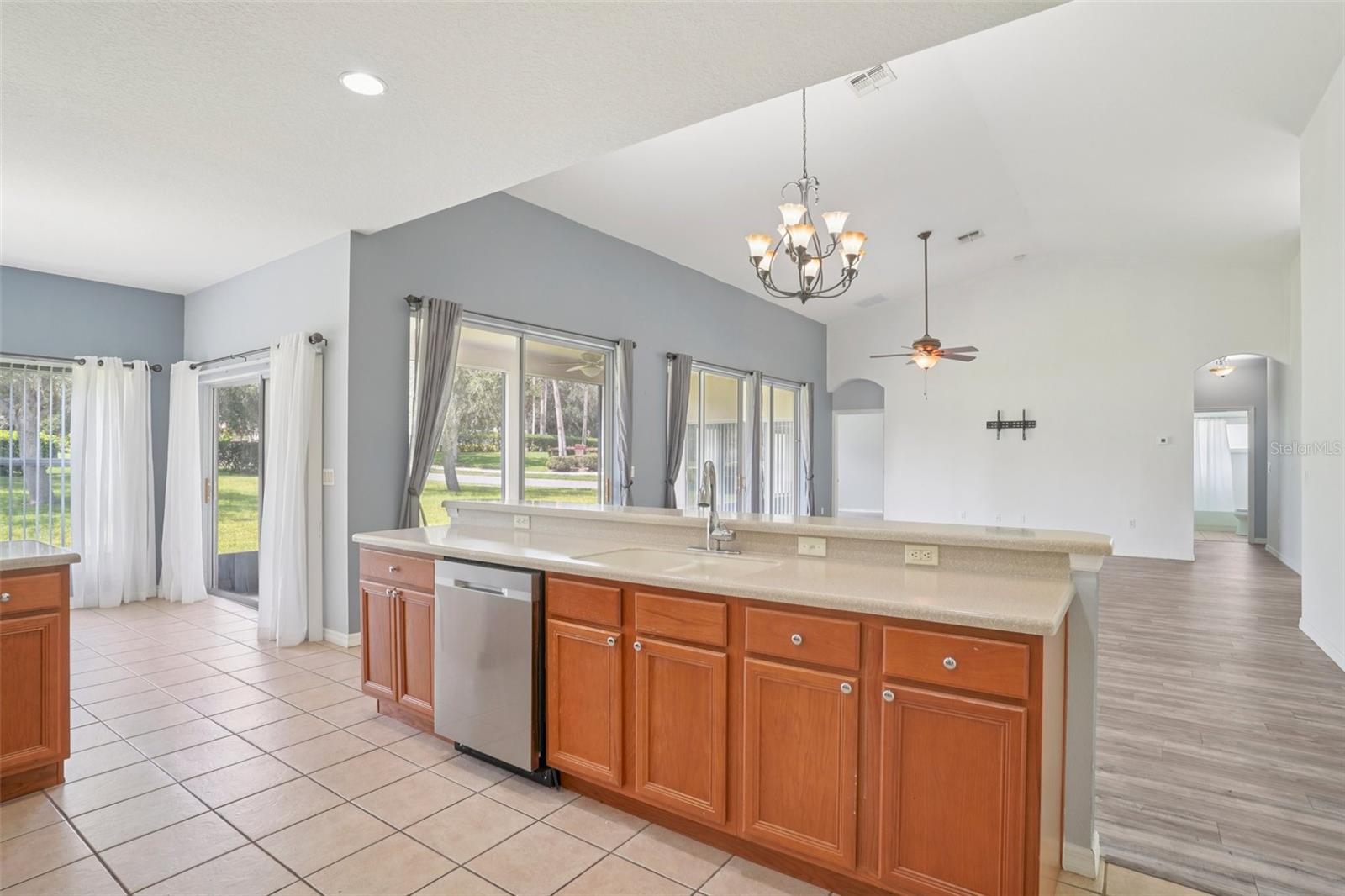 One or more photo(s) has been virtually staged. Seller may consider buyer concessions if made in an offer ~ Located on a spacious .26 ACRE/CORNER LOT in the desirable Plantation at Leesburg - Ashland Village, this 3-bedroom, 2-full bath single story home offers modern comfort in an active 55+ COMMUNITY packed with amenities! *NEW A/C 2023* Inside the home vaulted ceilings and a wall of sliding glass doors floor the main living area with NATURAL LIGHT, creating an open and inviting feel. Easy care TILE and WOOD LAMINATE FLOORS run throughout – no carpet here! The well equipped kitchen features must have STAINLESS STEEL APPLIANCES, a large ISLAND with bar seating, pantry storage, and a bright casual dining area. Enjoy privacy and functionality with the SPLIT BEDROOM layout; your generous PRIMARY SUITE includes a large WALK-IN CLOSET and a dedicated en-suite bath with DUAL/SPLIT VANITIES, a soaking tub and separate shower – creating a personal retreat. The secondary bedrooms and additional bath are thoughtfully placed for guests or hobbies. Step outside to the expansive SCREENED LANAI, an ideal spot to settle in and relax or entertain year-round. There is even GOLF CART PARKING, perfect for exploring the community with ease. Plantation at Leesburg delivers a lifestyle like no other! Residents have access to two golf courses, three pools, walking and biking trails, tennis and pickleball courts, a full-service restaurant, fitness centers, saunas, and so much more. With a GUARD GATED ENTRANCE and a calendar full of social events, activities, and clubs, you will never run out of things to do or people to meet. Located just minutes from US Hwy 27 and the Florida Turnpike, you are close to everything yet surrounded by tranquility, and whether you are looking for a full time residence or a warm weather retreat, this home delivers the space, style, and community you have been waiting for. Call today to schedule a tour and starting living like you are on vacation all year long!