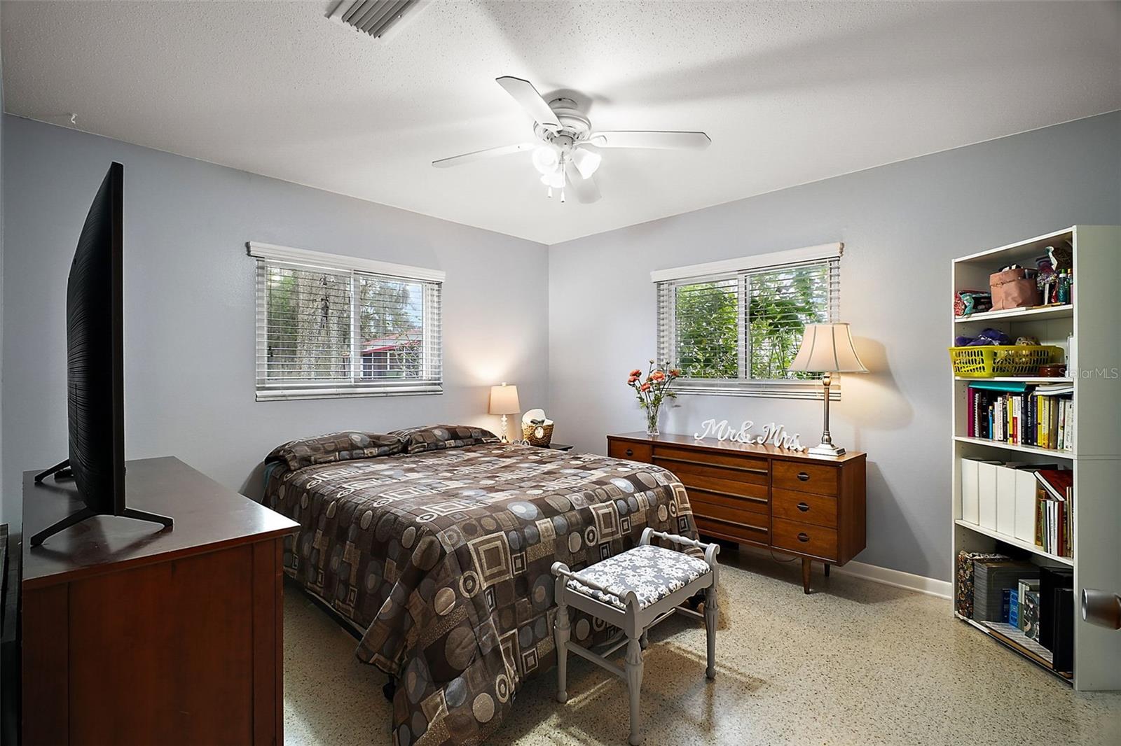 Beautiful ranch home situated on a corner, double lot on Leesburg's Beverly Shores. A quiet natural setting with access to the Chain of Lakes and just a block away from water access, docks and fishing. Just minutes to downtown Leesburg and parks. The quality of this well maintained home will catch your attention! The brick exterior is solid and in excellent condition and terrazzo flooring. House has a life time rhino covering and windows and screens have a lifetime warranty. There is a side room that could be converted to a bedroom or potential "mother-in-law" suit. Several renovations have been done including the roof and windows replaced in 2017; AC replaced in 2012 & newer flooring throughout. The spacious floor plan is great for entertaining and has a separate office/storage room with private entrance which could be converted to an additional bedroom. The oversized, finished garage is great for storage and parking but could be great to turn into a home gym or ever turn into additional living space. An additional carport is built off of the house as well. This is a great place to call “home” scheduled your showing today.
