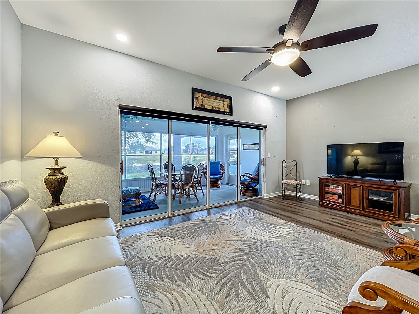 Welcome to this stunning 3-bedroom, 2-bath residence nestled in a vibrant active 55+ community of Arlington Ridge. Boasting a spacious, open concept, split floor plan and breathtaking golf course views overlooking the Green of Hole #1 at Arlington Ridge Golf Course. As you step inside, luxury vinyl flooring flows throughout the living areas and the guest bedroom adjacent to the kitchen, combining style and durability. The kitchen is a chef’s dream, featuring stainless steel appliances including a gas range, elegant quartz countertops, and rich hardwood cabinets with crown molding. Enjoy your morning coffee in the cozy breakfast nook and take advantage of the large pantry for ample storage. The primary suite is thoughtfully positioned away from the other bedrooms for enhanced privacy and includes two generous walk-in closets. The primary bathroom offers a spa-like retreat with a large walk-in shower and dual vanity sinks topped with quartz countertops. Step through the sliding doors into the expansive all-seasons Florida room, filled with natural light thanks to multiple windows, making it the perfect spot to relax year-round. The outdoor space is designed for entertaining, with plenty of seating for friends and family to gather and enjoy the spectacular golf views. Additionally, there’s a dedicated grilling area outside—ideal for barbecues and outdoor dining while soaking in the serene surroundings. This home is the perfect blend of comfort, style, and scenic beauty. The Arlington Ridge community offers excellent dining choices, a championship 18 hole Golf Course, Resort style beach and lap pools and spa, Fitness Center, Pickleball Tennis and Bocce ball courts, Movie Theater, Crafts and Card rooms, Billiards, a library stocked with books as well as DVDs, Walking and Golf cart paths, a 24 hour Gated Guard entry, and so much more! Schedule your viewing of this amazing home today and let your retirement dreams begin!