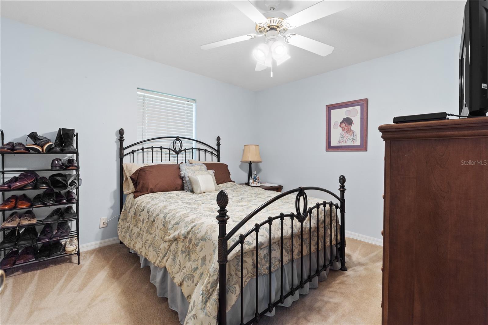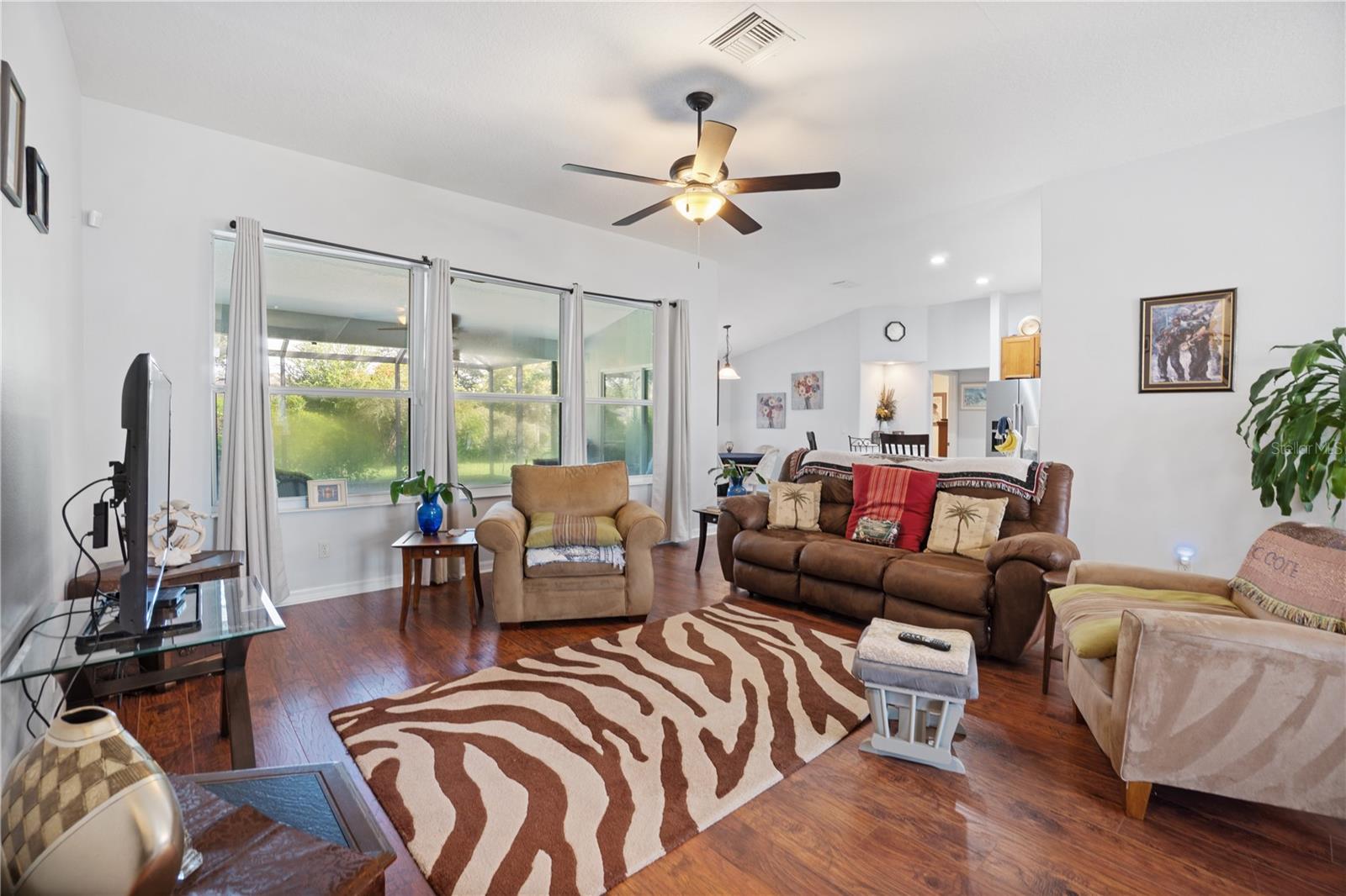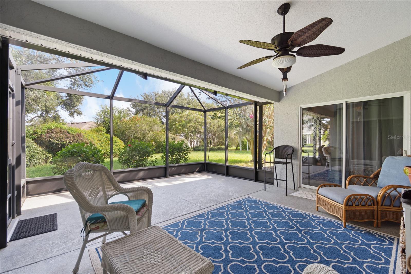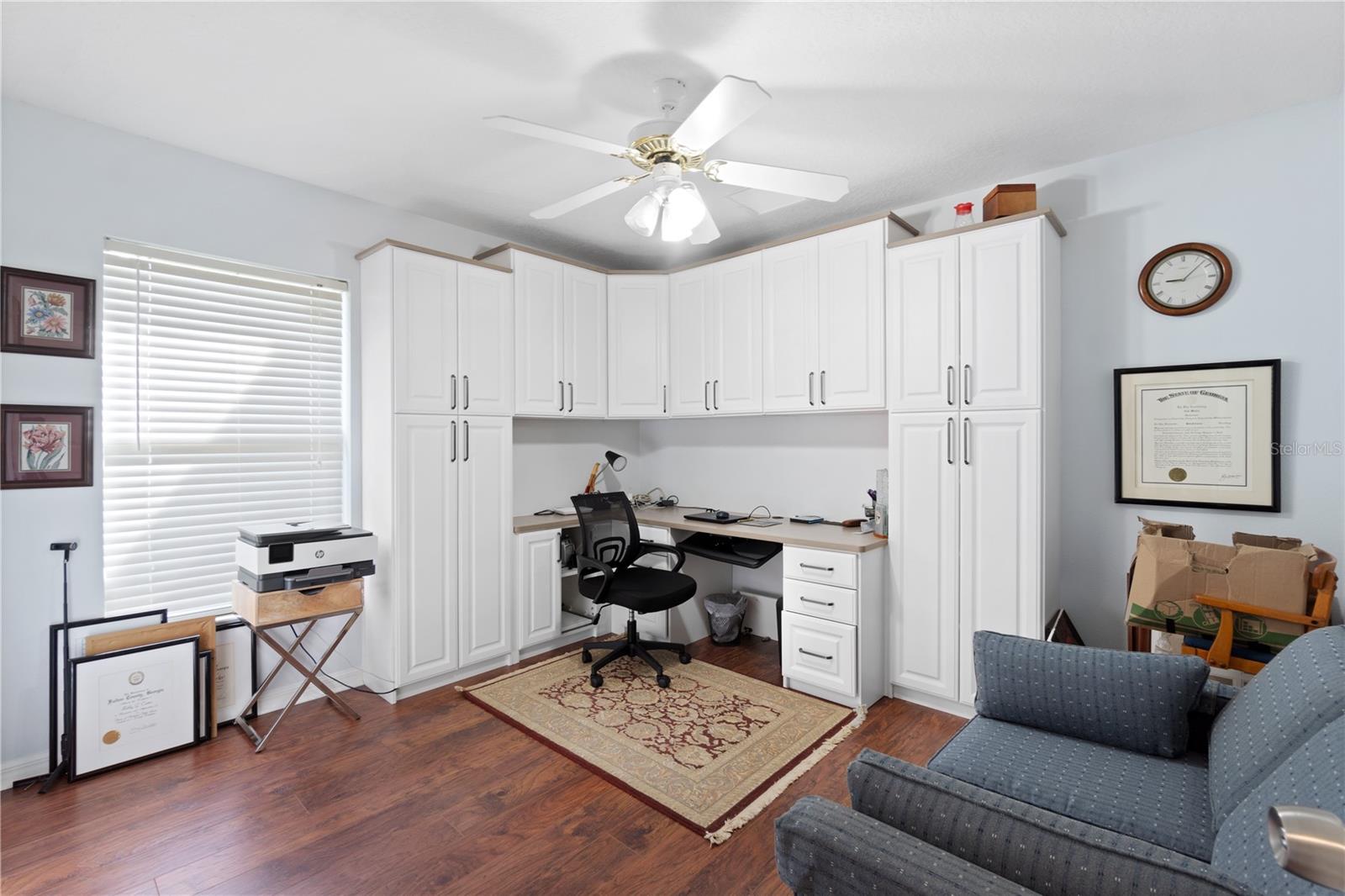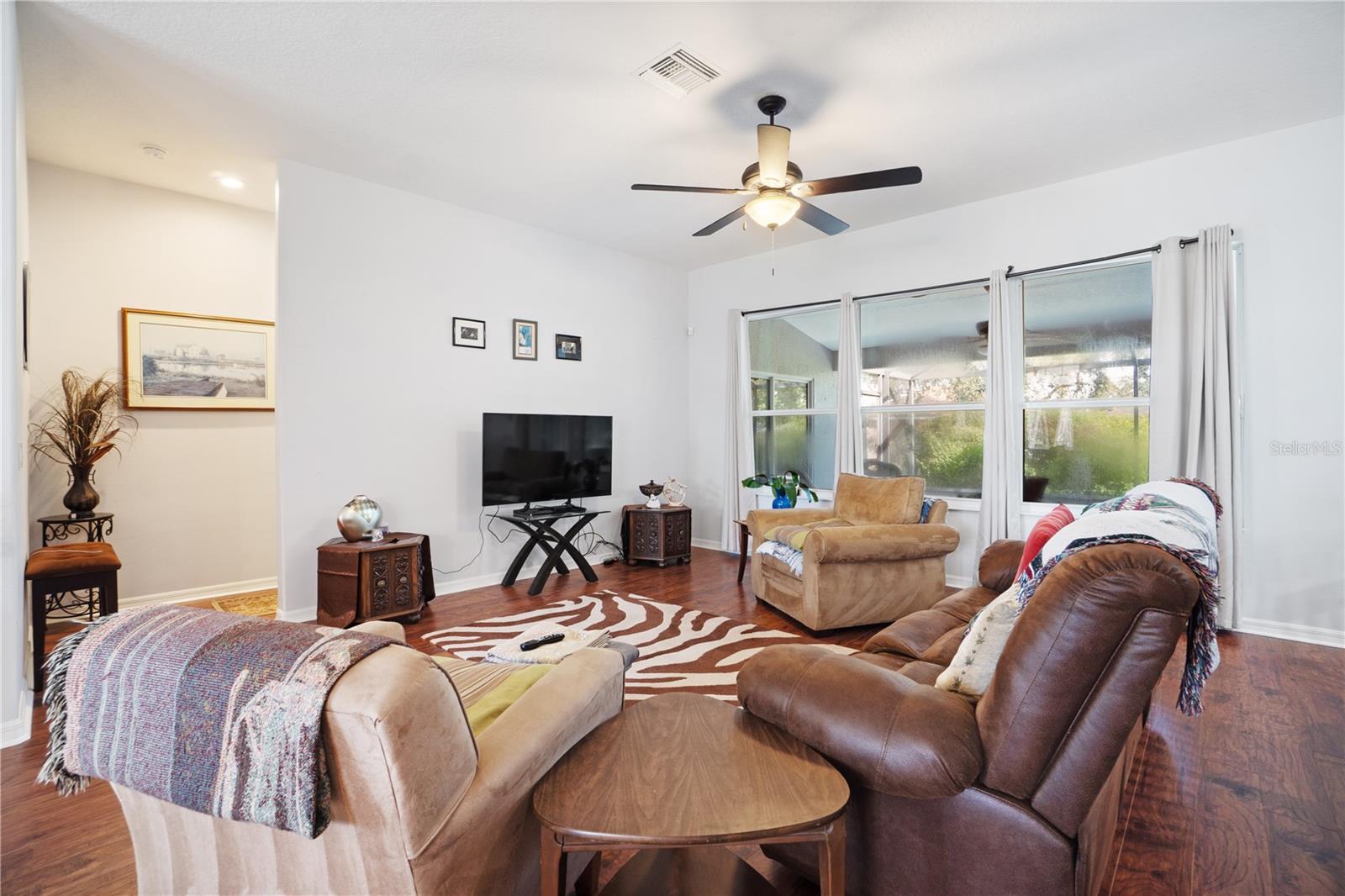 Prepare to be impressed by this beautiful 3-bedroom, 2-bath home located in the highly desirable Legacy of Leesburg community! From the moment you arrive, you’ll notice the extended driveway, lush landscaping, and the convenience of a 2-car garage plus a separate golf cart garage. A charming front courtyard welcomes you inside, where you’re greeted by a formal living room and a versatile flex space perfect for a home office or reading nook. The kitchen, truly the heart of the home, is a chef’s delight with stainless steel appliances, quartz countertops, a farmhouse sink, handsome backsplash, breakfast bar seating, and a cozy breakfast nook with sliding glass doors leading out to the screened lanai. The spacious primary suite features walk-in closets, dual sinks, a glass enclosed shower, and a linen closet. On the opposite side of the home, two additional bedrooms share a full bath one of which is currently set up as a custom home office with built-in desk and cabinetry. Step through the laundry room into the garage, where you’ll find not only two full size parking spaces and a golf cart garage, but also a large workshop with abundant storage for tools and equipment. The central vacuum system is also conveniently located here. Additional highlights include an oversized lot of more than half an acre and energy savings with a solar power system under an affordable, transferable lease. Legacy of Leesburg is a gated, active-adult community offering an incredible lifestyle with walking trails, clubhouse, library, billiards, resort-style heated pool, social events, RV & boat storage, cable, internet, and lawn maintenance including. Conveniently located near major highways, shopping, and dining.