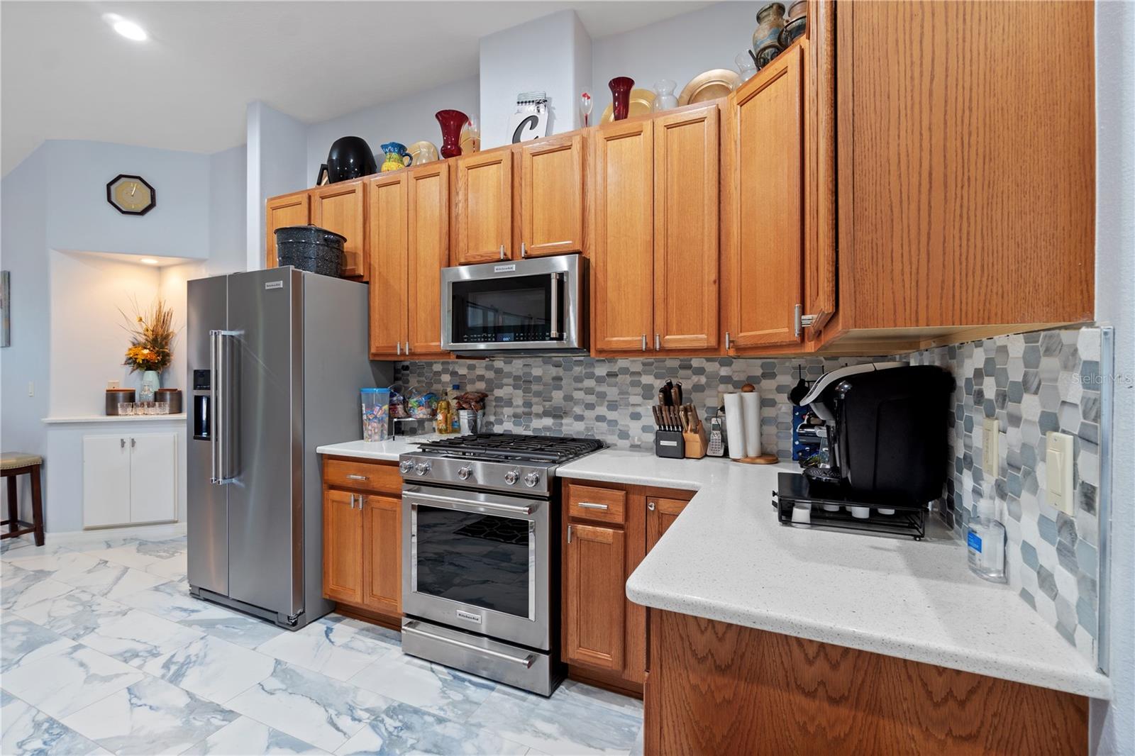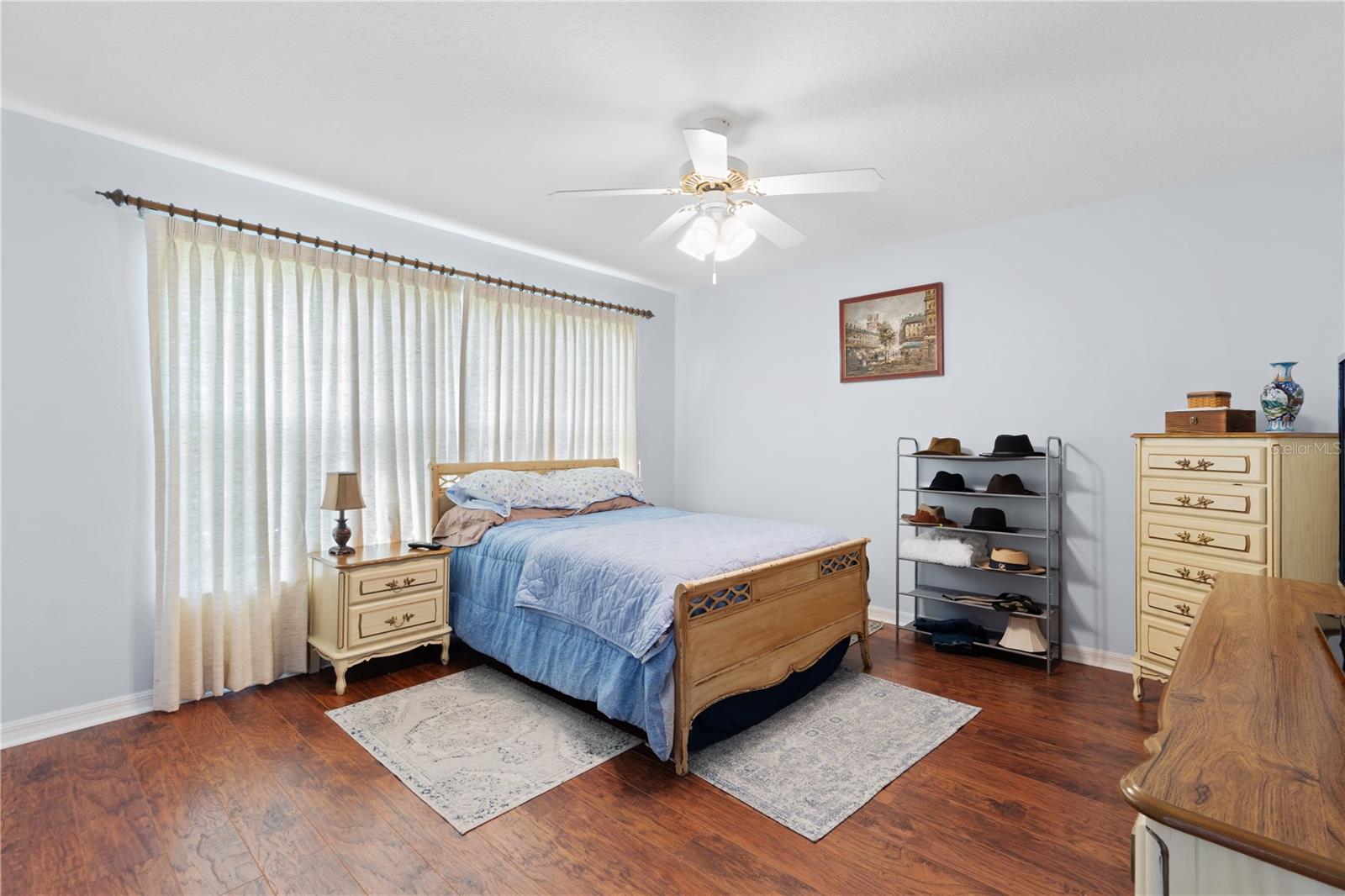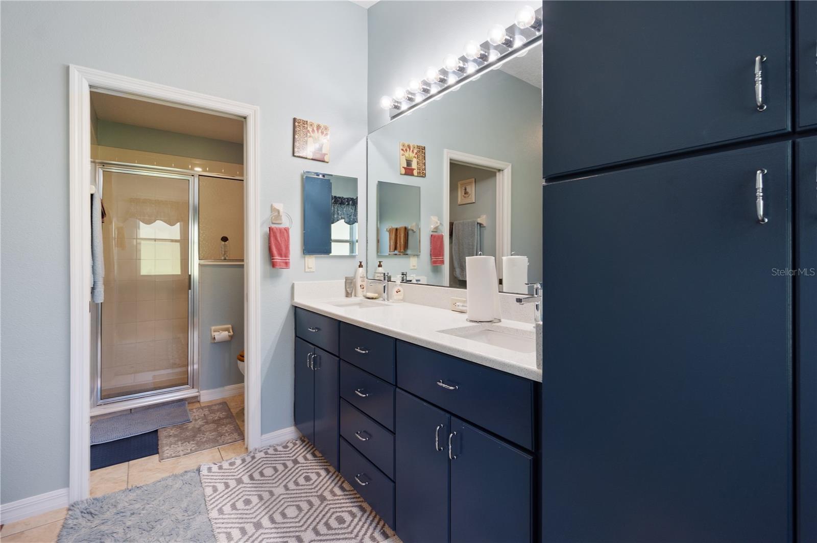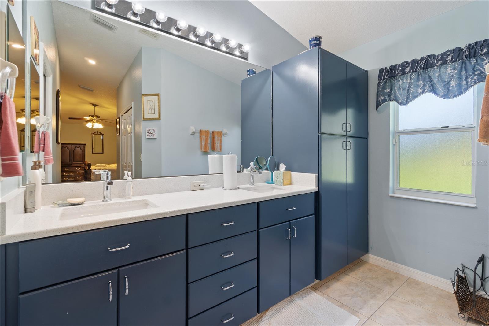 Prepare to be impressed by this beautiful 3-bedroom, 2-bath home located in the highly desirable Legacy of Leesburg community! From the moment you arrive, you’ll notice the extended driveway, lush landscaping, and the convenience of a 2-car garage plus a separate golf cart garage. A charming front courtyard welcomes you inside, where you’re greeted by a formal living room and a versatile flex space perfect for a home office or reading nook. The kitchen, truly the heart of the home, is a chef’s delight with stainless steel appliances, quartz countertops, a farmhouse sink, handsome backsplash, breakfast bar seating, and a cozy breakfast nook with sliding glass doors leading out to the screened lanai. The spacious primary suite features walk-in closets, dual sinks, a glass enclosed shower, and a linen closet. On the opposite side of the home, two additional bedrooms share a full bath one of which is currently set up as a custom home office with built-in desk and cabinetry. Step through the laundry room into the garage, where you’ll find not only two full size parking spaces and a golf cart garage, but also a large workshop with abundant storage for tools and equipment. The central vacuum system is also conveniently located here. Additional highlights include an oversized lot of more than half an acre and energy savings with a solar power system under an affordable, transferable lease. Legacy of Leesburg is a gated, active-adult community offering an incredible lifestyle with walking trails, clubhouse, library, billiards, resort-style heated pool, social events, RV & boat storage, cable, internet, and lawn maintenance including. Conveniently located near major highways, shopping, and dining.