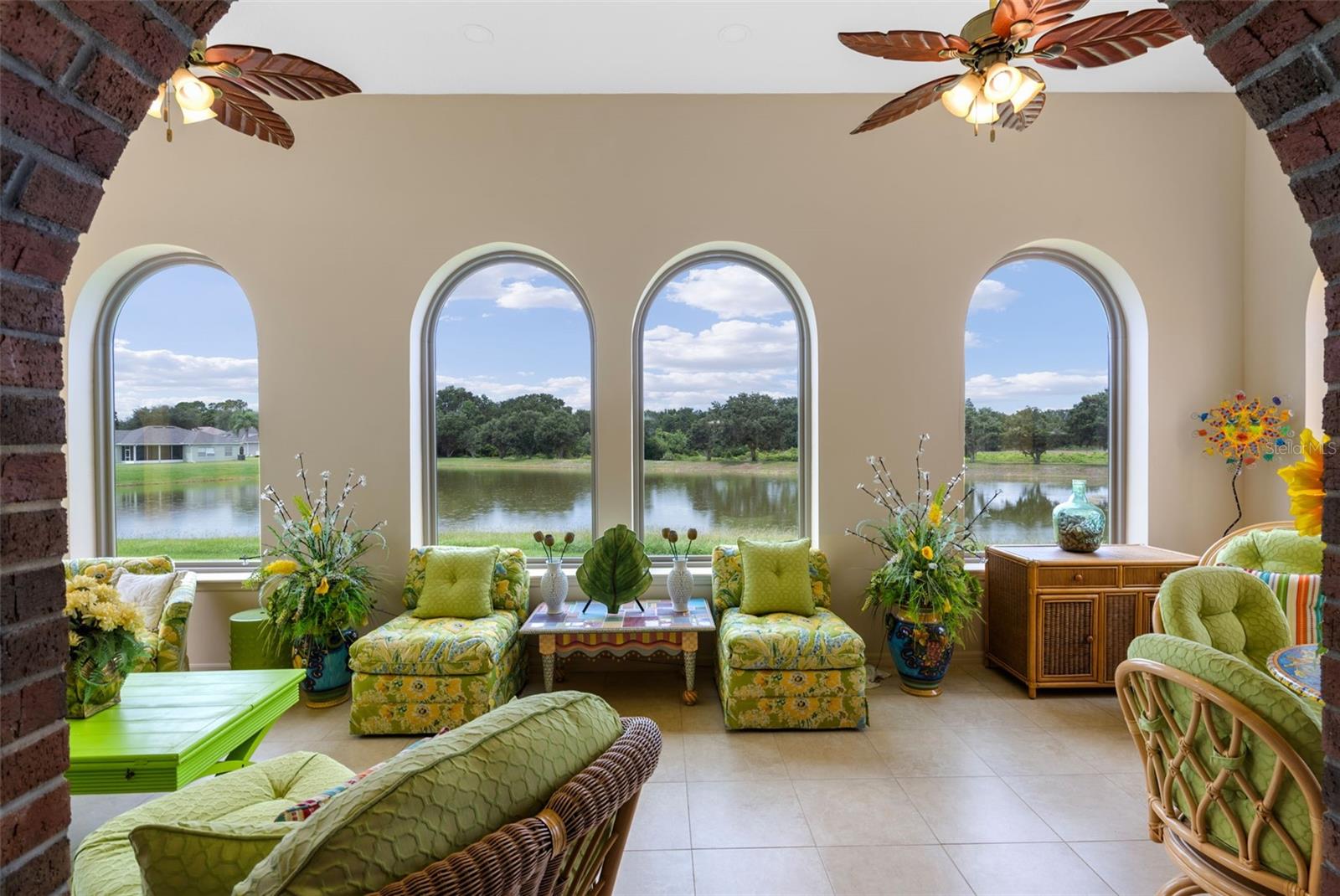 Major Price Reduction and Seller is Motivated and will look at all offers. Don't be afraid to make an offer on this beauty. This beautiful lakefront home has been completely renovated and the Sellers are ready to move! Assumable VA Loan with an interest Rate of 2.75%. This charming home offers a stunning water view, situated on a cul-de-sac with tons of a privacy within the gated community of The Plantation. Featuring 3 bedrooms, 2.5 bathrooms, and a Florida room with panoramic pond and conservation views, it’s perfect for relaxation and entertaining. The interior boasts natural light, high ceilings, crown molding, custom fixtures, and extensive porcelain tile and wood floors. There are two master suites and the primary master suite also features beautiful views and a spacious master bathroom with a large shower and his and hers sinks. The open kitchen with 42 inch cabinets, Corian counters, island, and built-in seating connects to a spacious dining area with water views. Ample closet space with custom shelving has been added to all the bedrooms, low-maintenance landscaping, and recent upgrades like a new roof (2022) and AC (2016) and freshly painted inside and out add to its appeal. Enjoy resort-style amenities including golf, pools, fitness centers, restaurant, tennis courts and pickleball courts and social activities in this award-winning community. The Plantation at Leesburg received the Best of 2025 Retirement community award. Optional furnished sale available. or ask about our financing incentive with our preferred lender.