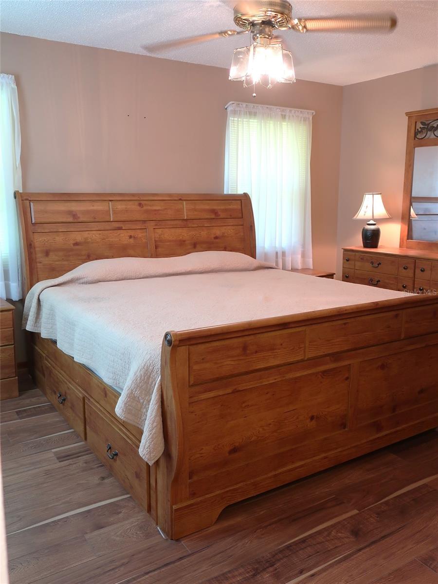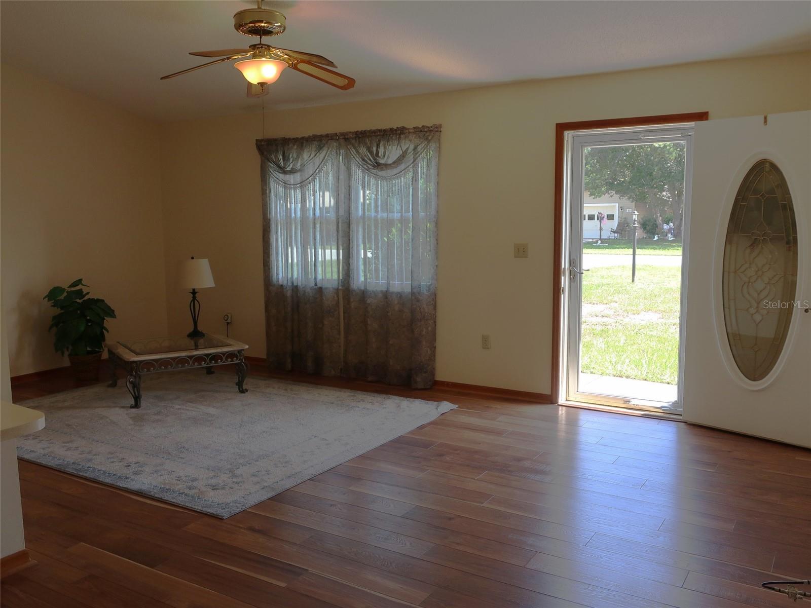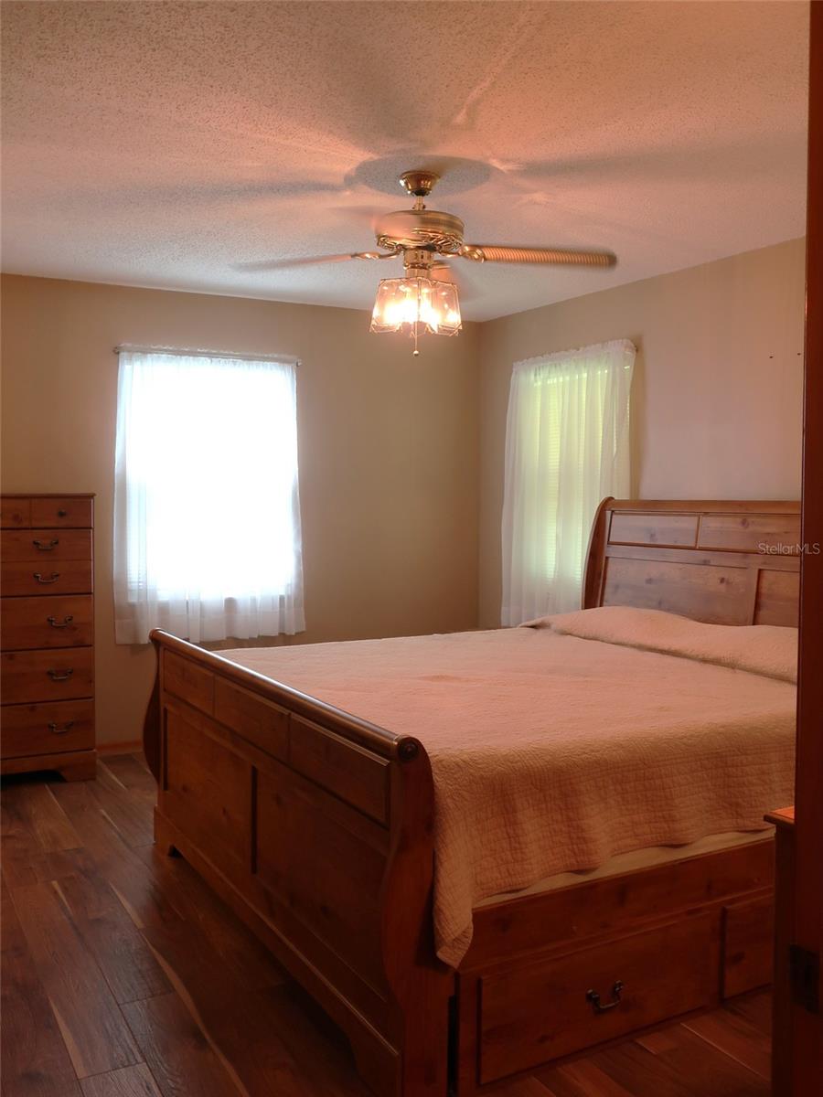 Delighted to introduce this adorable, warm and traditional 2 bedroom, 2 bath home, nestled in the beautiful 55+ hamlet of Scottish Highlands! Lovingly maintained home backing up to wooded, private property, offers quiet tranquility. Upon entering through a lovely, etched glass front entryway, you are greeted with vaulted ceilings & warm luxury vinyl plank flooring. Generous and thoughtful floorplan affords easy flow throughout! Kitchen boasts natural gas cooking island, Stainless appliances, breakfast bar, closet pantry and ample cabinet space! Bonus room off Dining area is perfect to outfit as a snug, TV room or whatever strikes your fancy! Windows offer beautiful natural light with views of the wooded area in the backyard where one might catch sight of a pony or two! Spacious Primary bedroom is a warm and inviting space with lovely updated bath featuring dual sinks, granite countertop & Lrg walk-in closet with built in shelves. Generous 2nd bedroom boast ample closet space and is situated right across the hall from hall bath. It too offers amazing closet space! Off the bonus room through French doors, there is a comfortable screened porch to sit and enjoy your morning coffee or tea while relaxing and watching nature! Home boasts updated double pane windows, single car garage with access door to backyard & washer/ gas dryer facilities. The Scottish Highlands community offers a Recreation Building w/impressive entertaining amenities, Club House, Community pool over looking pond, Tennis & Pickleball courts, Bocce Ball, Shuffleboard and more! Close, easy access to hospital, healthcare facilities, major thoroughfares, shopping and restaurants. Minutes from historical downtown Mount Dora, Tavares, Eustis (Triangle of festivals, farmers markets, shopping), The Villages and much more is all at your fingertips! Carpe Diem as the vibrant community of Scottish Highlands is a lifestyle worth living! Please schedule your private showing today!