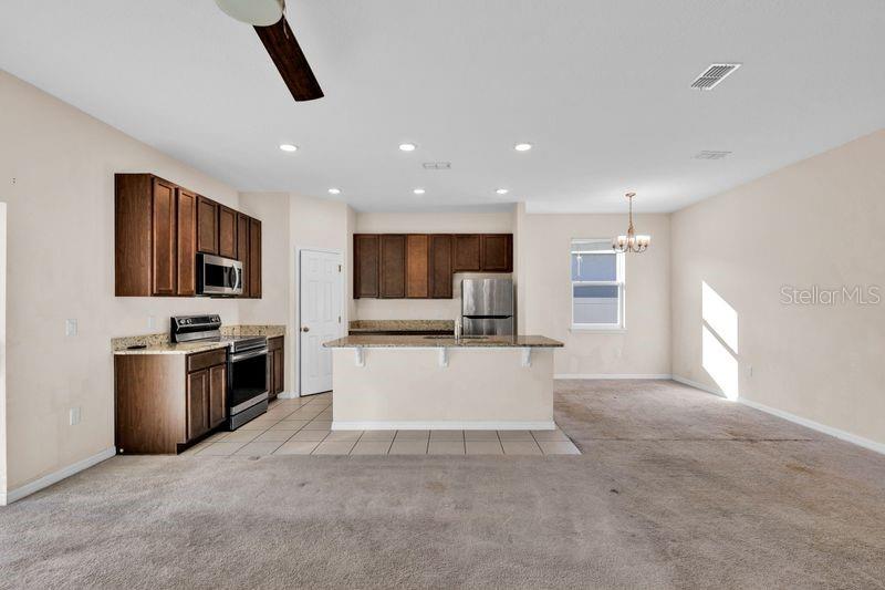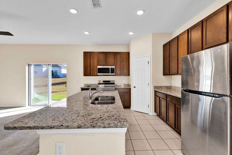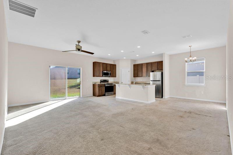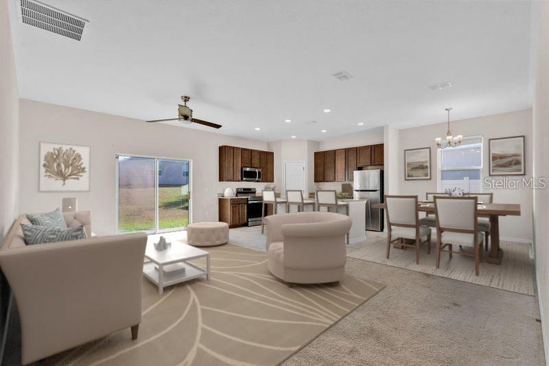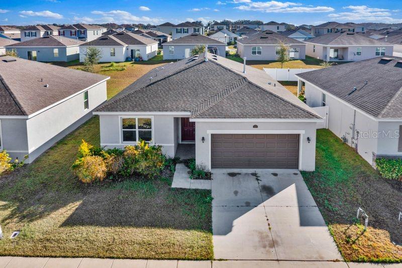 One or more photo(s) has been virtually staged. Beautiful 4 bedroom home in Lake Denham Estates-Leesburg. Welcome to this stunning single family home built in 2022, offering nearly 2200 sq ft of modern living space. Designed with comfort and convenience in mind, this residence features an open floor plan with split bedrooms, perfect for both everyday living and entertaining. Home features 4 spacious bedrooms and 2 full baths. Open concept living and dining areas with tile flooring throughout. Stylish kitchen with stone countertops, breakfast bar and pantry. Primary suite with privacy from guest/ family bedrooms. Sliding glass doors leading to the backyard. Two car attached garage. Pool and playground for family fun. Nestled off Hwy 27 for added serenity and privacy. Just 10 minutes to the Florida Turnpike and downtown Leesburg. This home combines modern style with a peaceful community setting. Seller is selling AS IS.
