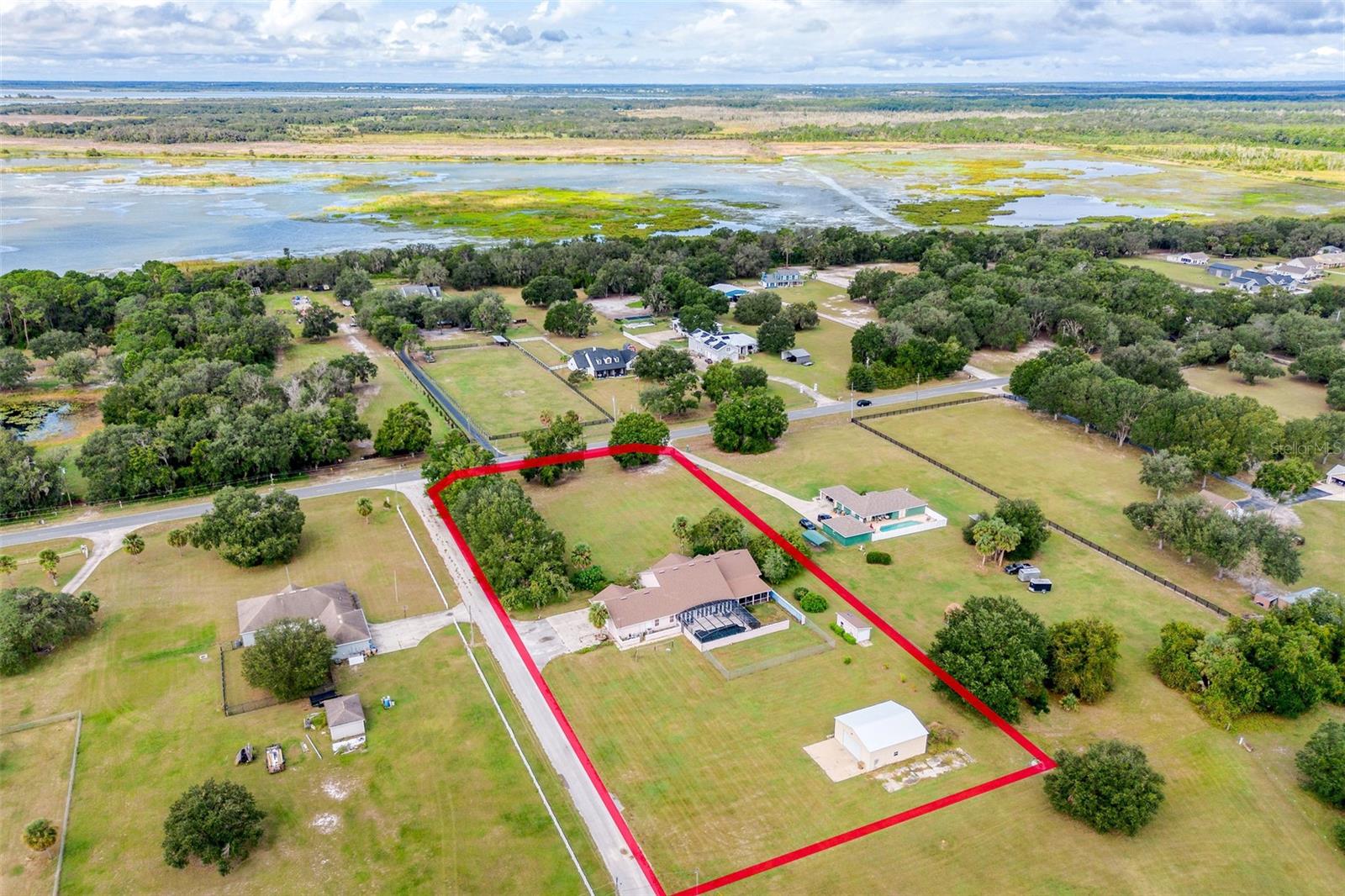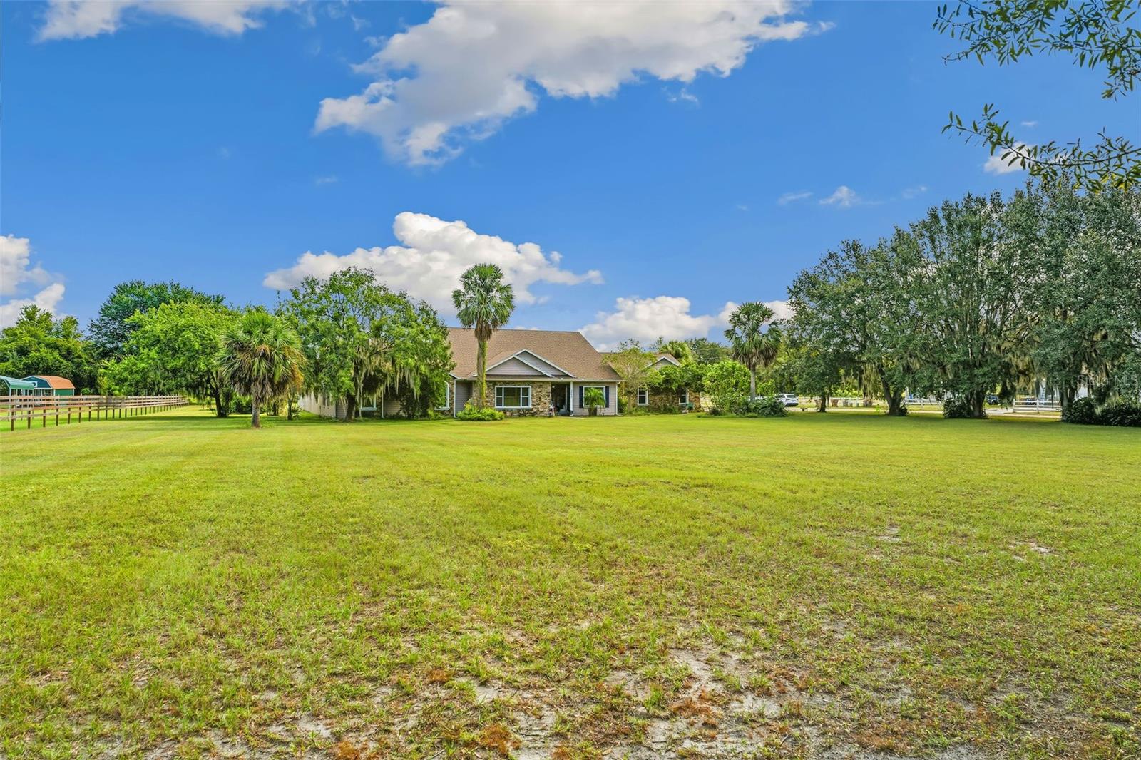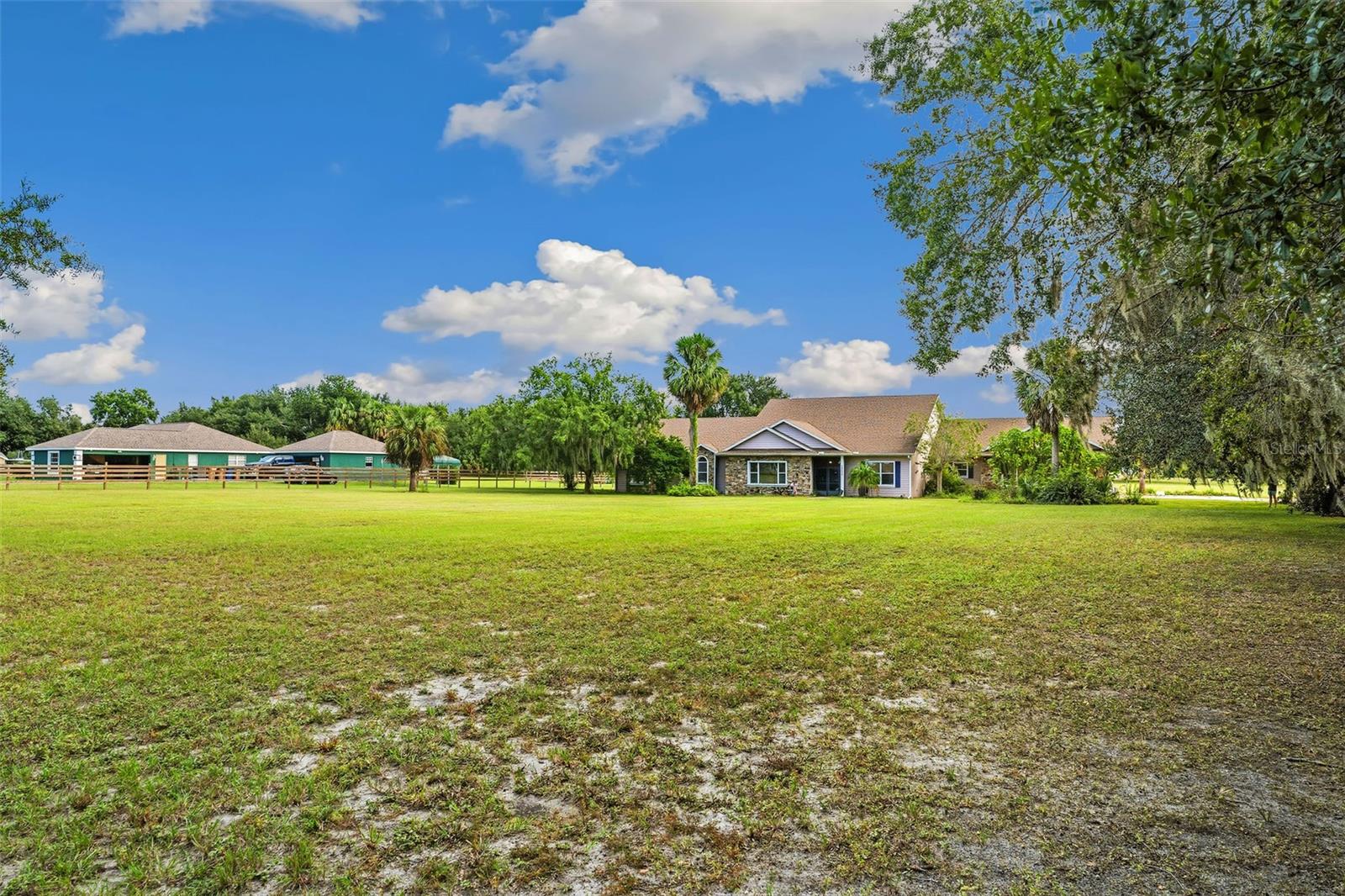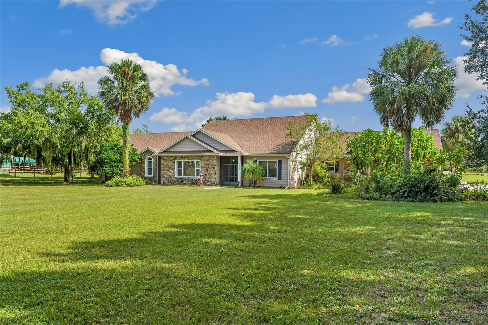 One or more photo(s) has been virtually staged. Welcome to your dream retreat in the heart of Central Florida — a stunning 4,495 sq ft custom residence nestled on 2.3 acres with no HOA and ample space to park boats, RVs, or build the lifestyle you’ve always envisioned. This expansive 5 Bed, 3.5 Bath home begins with a grand foyer entry, gleaming hardwood floors, and a true open concept great room plan with soaring 12-foot ceilings. A stone-accented gas fireplace anchors the main living space, framed by custom built-ins and picture windows that pour in natural light. The kitchen is freshly updated with granite countertops, stainless appliances, a large island, and a breakfast nook big enough to seat the entire family. Entertain effortlessly with connected formal and informal dining areas. Unwind in the Florida sunroom, a showstopper with warm tongue-and-groove ceilings, ceramic tile floors, and panoramic views of the screened black-bottom lagoon-style pool. Adjacent is a summer porch/kitchen perfect for weekend barbecues and gatherings. The primary suite is an absolute sanctuary — oversized and private, with a luxurious en-suite bath featuring dual vanities, a soaking tub, and walk-in shower. Don’t miss the California-style custom walk-in closet — a storage lover’s dream! All secondary bedrooms are generously sized with Jack-and-Jill bathrooms and ample closet space — perfect for a growing family or multi-generational living. Car collectors and hobbyists will fall in love with the brand-new detached garage/workshop, complete with high ceilings, concrete flooring, and power — ideal for tools, toys, or treasured vehicles. Additional outbuildings offer even more storage and function. With room to roam, no HOA restrictions, and an unbeatable location in Leesburg, this property blends country serenity with everyday convenience. Come live the Florida acreage lifestyle without compromise!