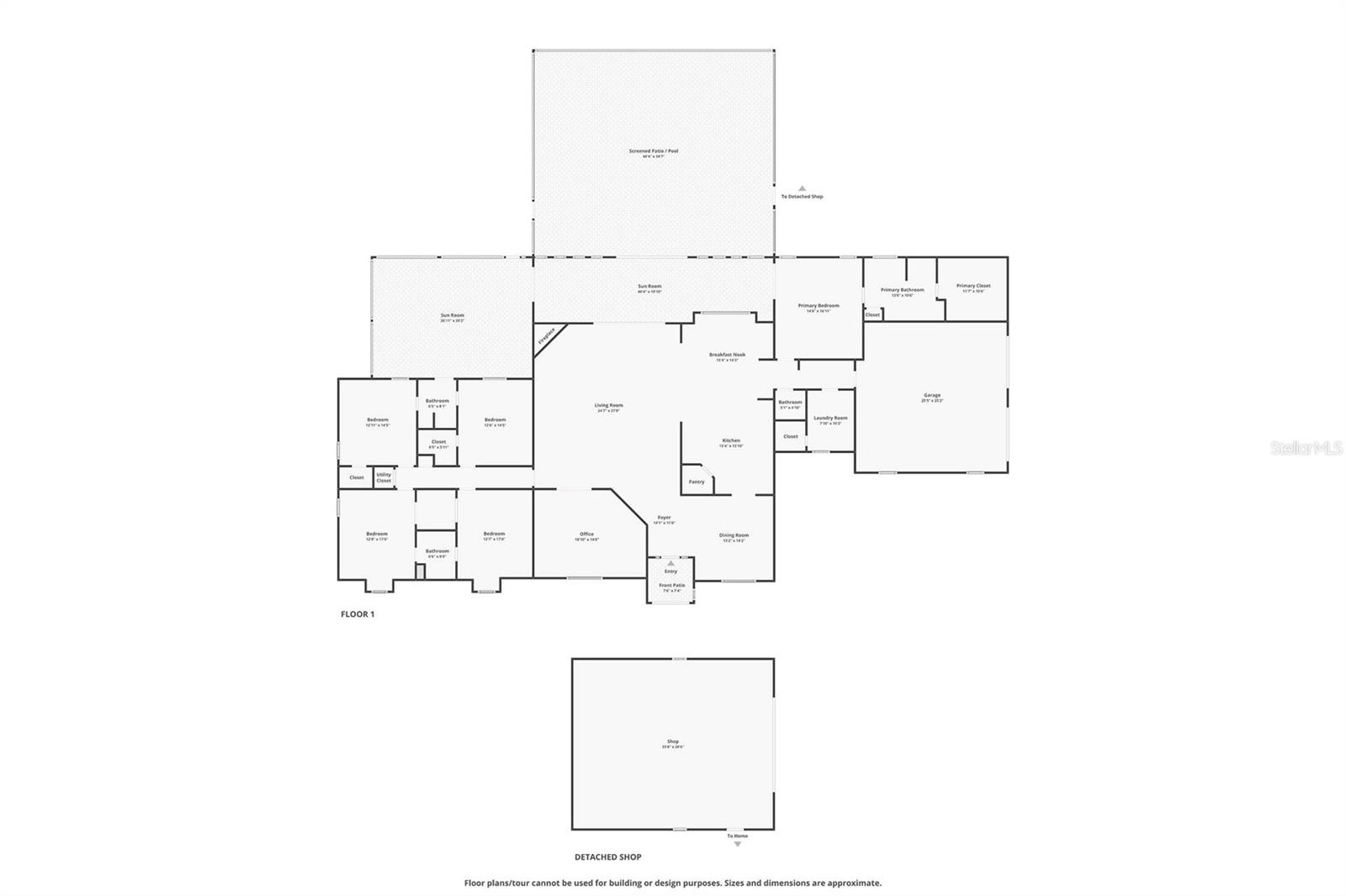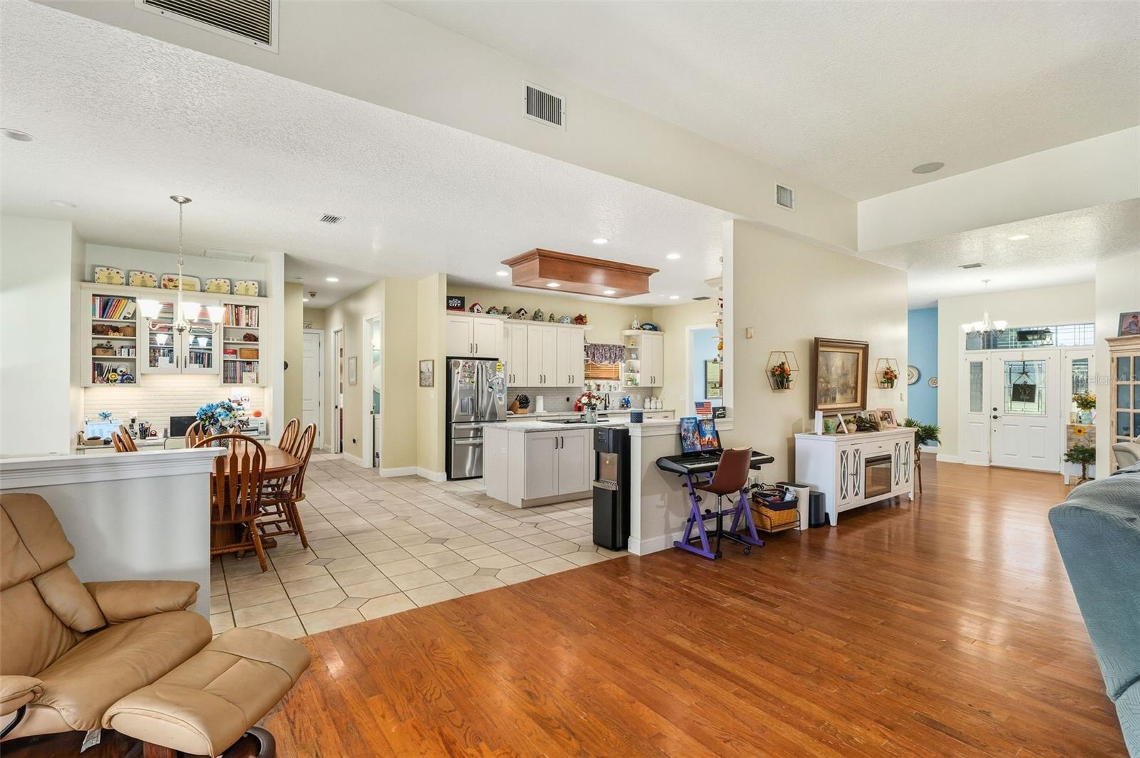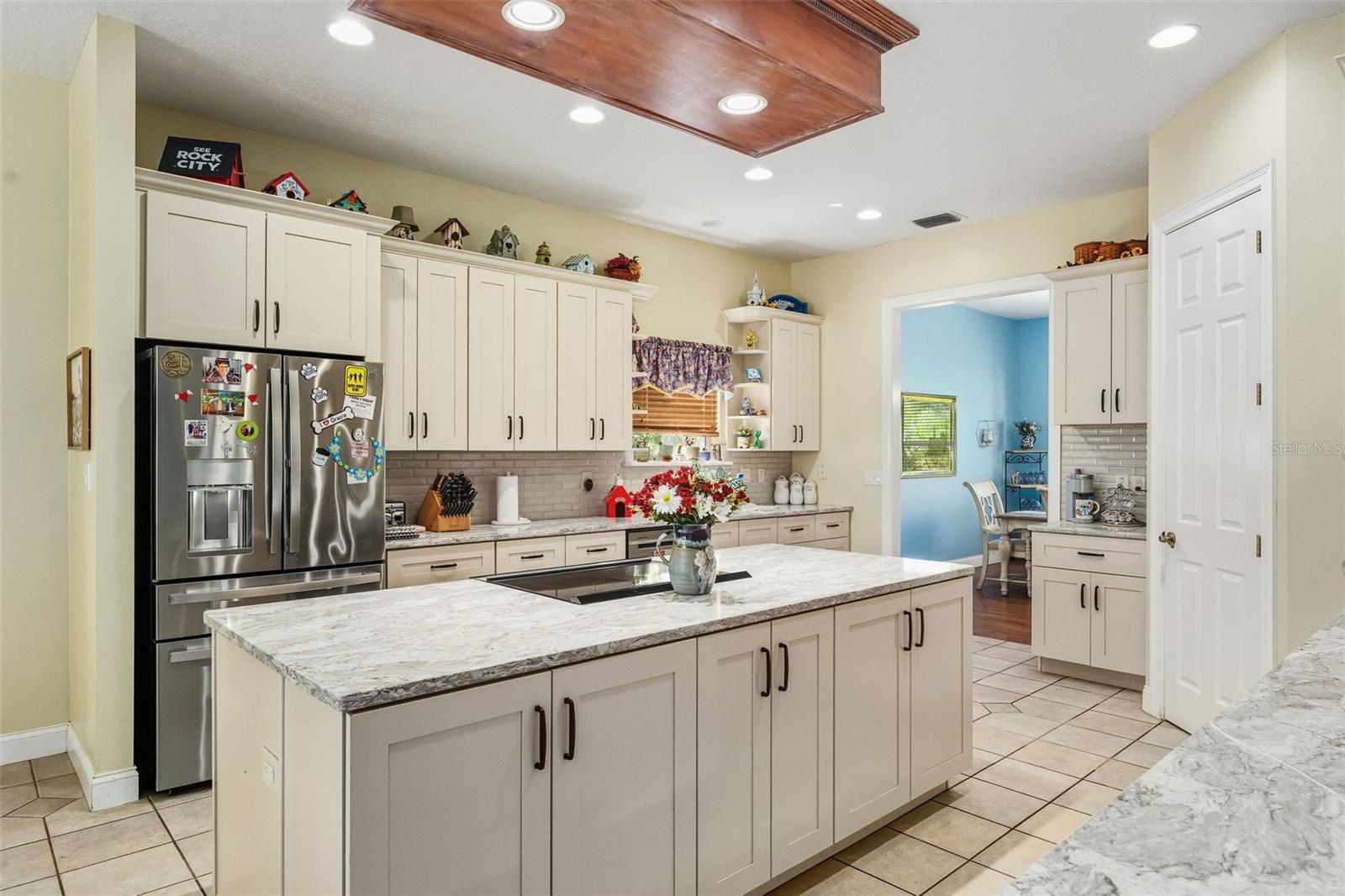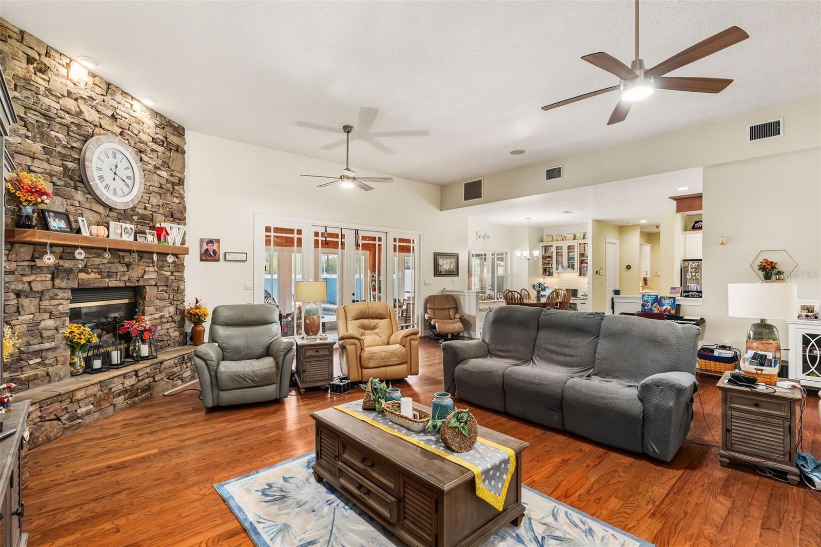 One or more photo(s) has been virtually staged. Welcome to your dream retreat in the heart of Central Florida — a stunning 4,495 sq ft custom residence nestled on 2.3 acres with no HOA and ample space to park boats, RVs, or build the lifestyle you’ve always envisioned. This expansive 5 Bed, 3.5 Bath home begins with a grand foyer entry, gleaming hardwood floors, and a true open concept great room plan with soaring 12-foot ceilings. A stone-accented gas fireplace anchors the main living space, framed by custom built-ins and picture windows that pour in natural light. The kitchen is freshly updated with granite countertops, stainless appliances, a large island, and a breakfast nook big enough to seat the entire family. Entertain effortlessly with connected formal and informal dining areas. Unwind in the Florida sunroom, a showstopper with warm tongue-and-groove ceilings, ceramic tile floors, and panoramic views of the screened black-bottom lagoon-style pool. Adjacent is a summer porch/kitchen perfect for weekend barbecues and gatherings. The primary suite is an absolute sanctuary — oversized and private, with a luxurious en-suite bath featuring dual vanities, a soaking tub, and walk-in shower. Don’t miss the California-style custom walk-in closet — a storage lover’s dream! All secondary bedrooms are generously sized with Jack-and-Jill bathrooms and ample closet space — perfect for a growing family or multi-generational living. Car collectors and hobbyists will fall in love with the brand-new detached garage/workshop, complete with high ceilings, concrete flooring, and power — ideal for tools, toys, or treasured vehicles. Additional outbuildings offer even more storage and function. With room to roam, no HOA restrictions, and an unbeatable location in Leesburg, this property blends country serenity with everyday convenience. Come live the Florida acreage lifestyle without compromise!