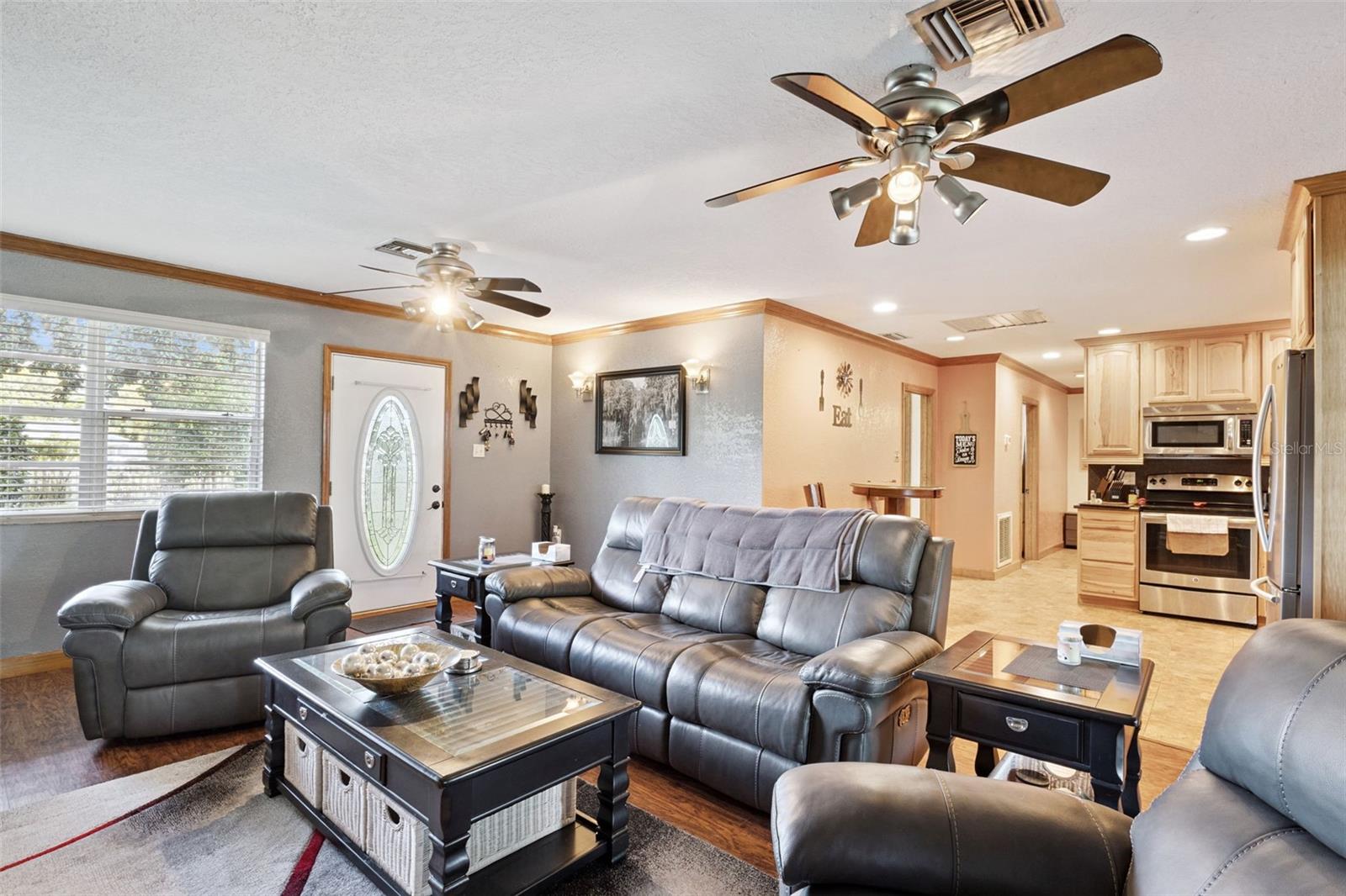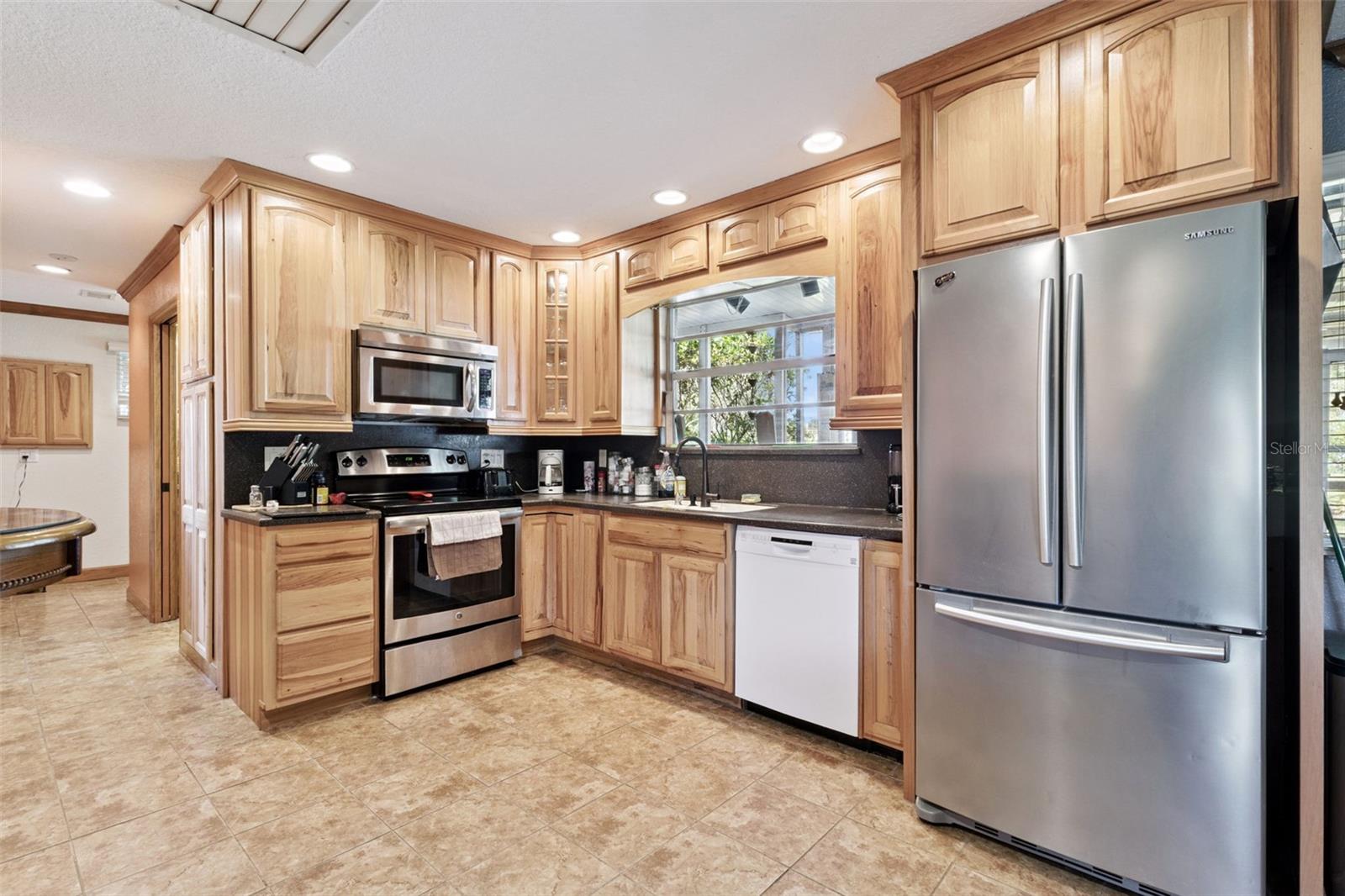 Charming canal-front 2BR/1BA home with direct access to the Chain of Lakes! Enjoy a lush yard with banana, citrus, and avocado trees, plus recent updates including a freshly painted exterior, new water softening system, and extended screened porch. The home features a durable metal roof (installed 2014), an open floor plan, updated kitchen with stainless appliances, and cozy living room with fireplace. Step outside to a sparkling pool, private shuffleboard court, and dock with boathouse. Conveniently located near shopping, dining, and more. Live the Florida lake life today!
