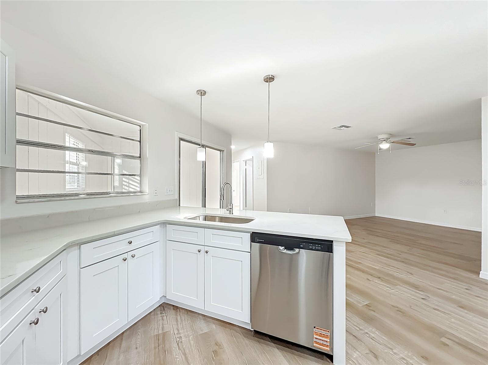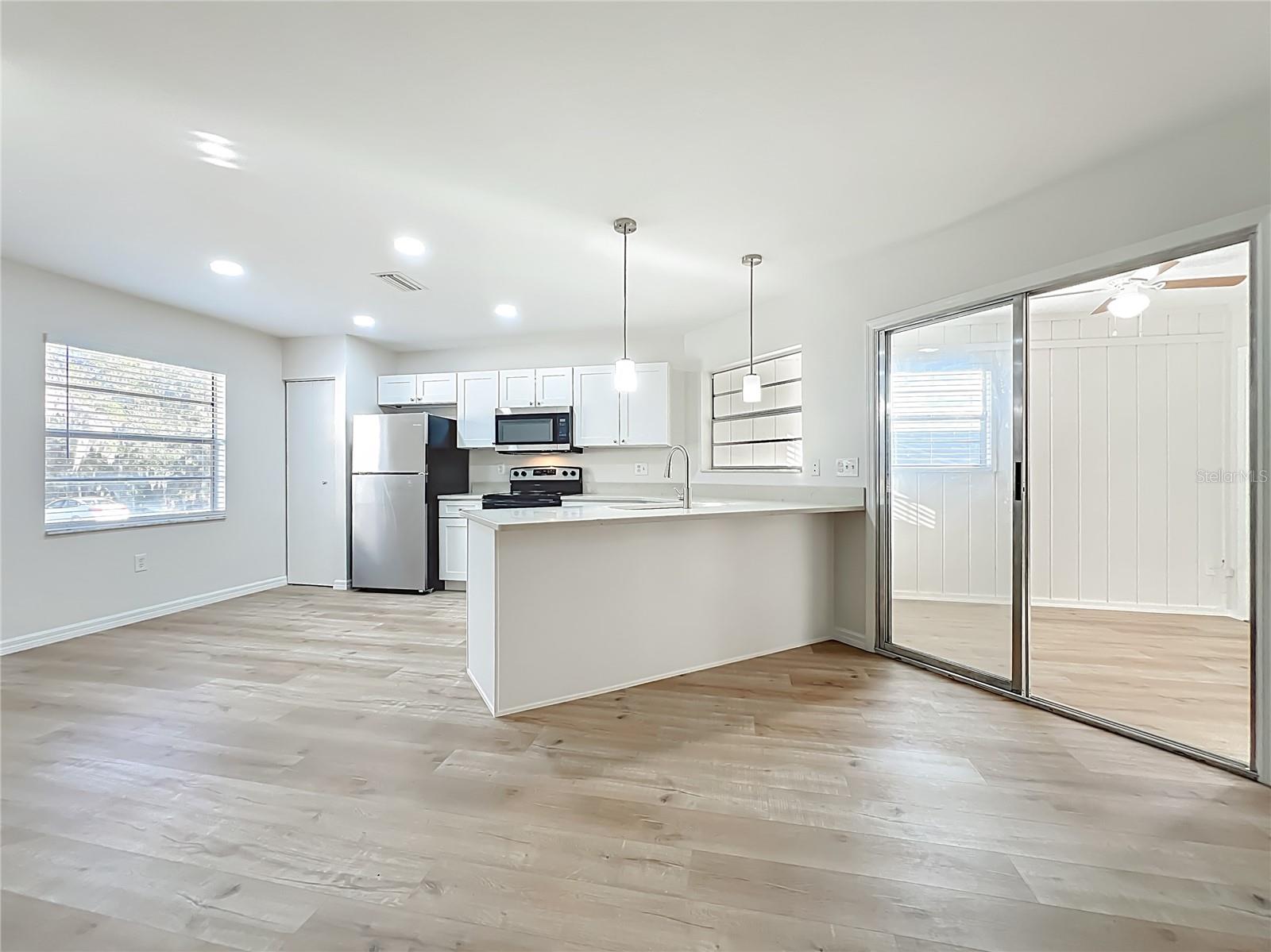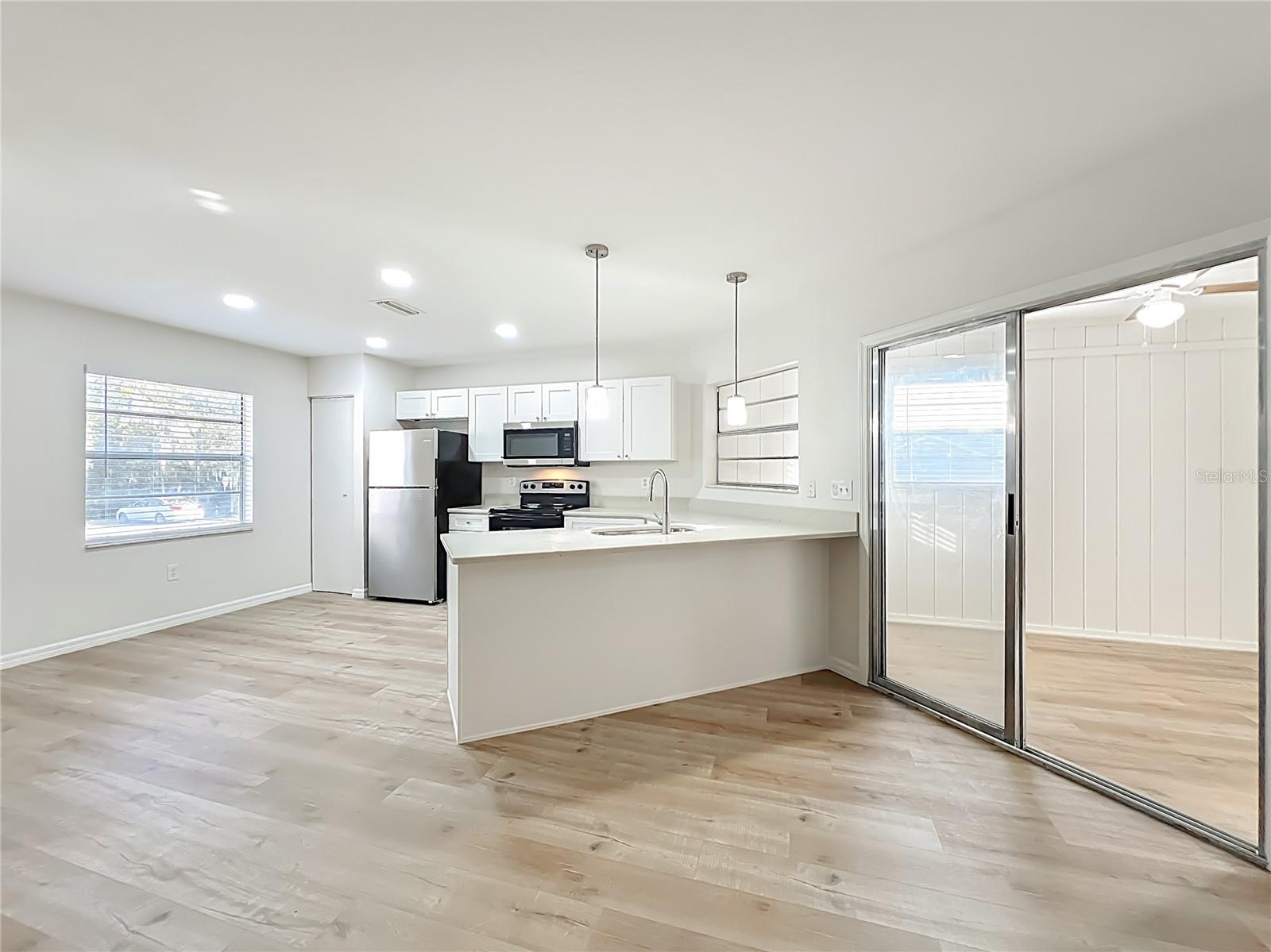 Well-maintained, corner lot, newly renovated and NO HOA, 2BD/2BA duplex-style home in Leesburg, FL. Ideal as a primary residence or investment property. Open floor plan with laminate flooring. The beautiful renovated kitchen features an eat-in breakfast bar, brand-new stainless steel appliances and a closet pantry. Spacious primary suite with 2 built-in closets. Both bathrooms show a stylish modern style. It also includes an 8x8 den/office and a one-car garage. The open patio features a naturally decorated beautiful tree. Conveniently located near parks, shopping, hospital, dining, major roads and just 8 minutes from Leesburg international airport. Don't miss this one time opportunity and give us a call today!