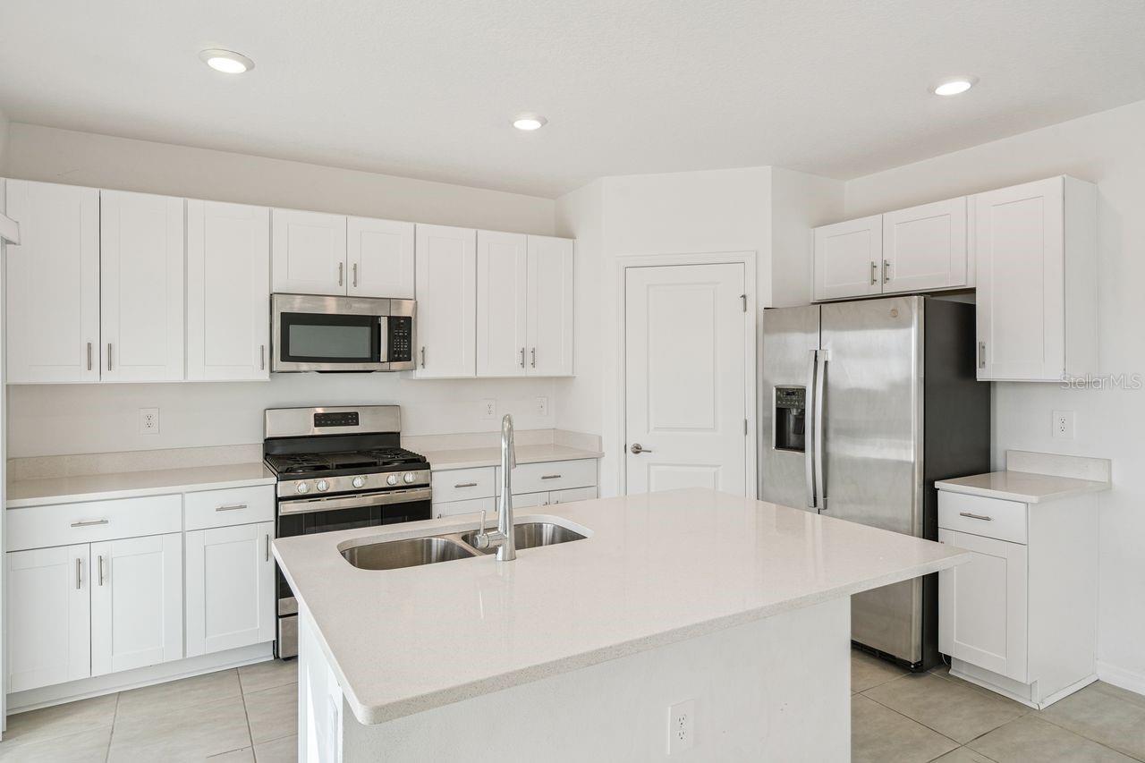 Opportunity and potential come together in this bright and spacious 3-bedroom, 2-bath home in the heart of Leesburg with a NEWER ROOF! (2023). With solid construction and a functional open layout, this home offers a fantastic foundation for anyone ready to make a space their own. Inside, ceramic tile flows through the main living areas, enhancing the light and airy feel. The open floor plan centers around a modern kitchen featuring white Shaker-style cabinets, stainless steel appliances, a center island, and a convenient pantry. The primary suite includes a very large walk-in closet, dual vanities, and a stand-up shower, while the additional bedrooms allow for comfortable spaces with carpet flooring. A full laundry room and two-car garage add everyday convenience. Step outside to a nice covered back porch—perfect for relaxing or creating your ideal outdoor retreat. Ideally located between Lake Griffin and Lake Harris, this home is surrounded by some of Central Florida’s most beautiful natural scenery while still being close to shopping, dining, and major roadways. With great space, a desirable layout, and plenty of opportunity to personalize, this home is a standout option for buyers looking to create value and make a home truly their own.