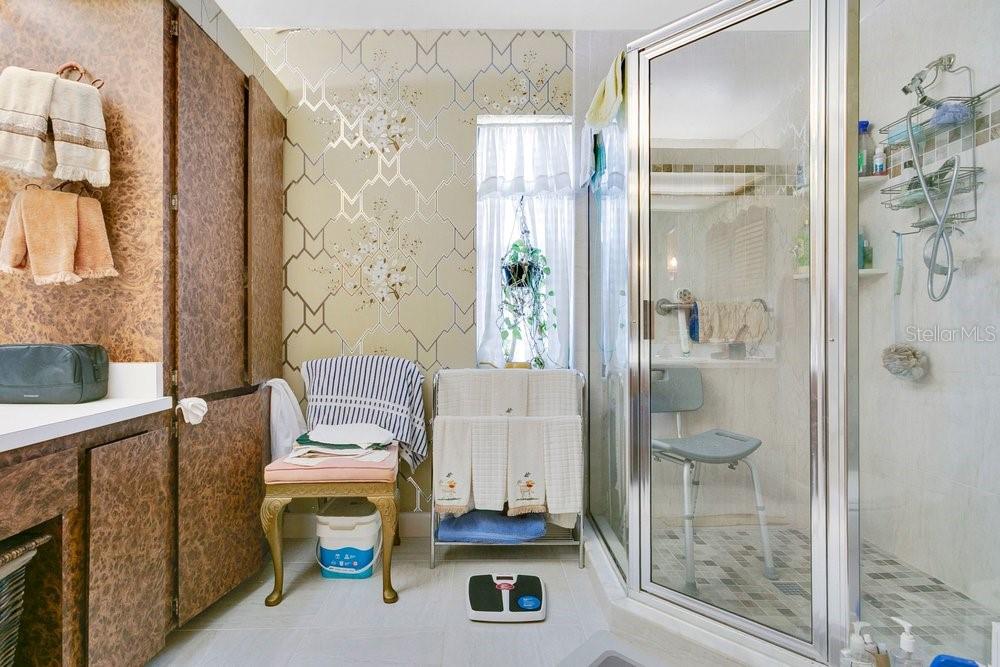 Discover exceptional space, comfort, and Florida living at its finest in this beautifully maintained 6-bedroom, 3-bath home featuring a desirable split floor plan and an oversized inground10-foot deep enclosed pool. The bright eat-in kitchen offers crown molding, abundant cabinets and drawers, pantry, a built-in desk, newer appliances and blends seamlessly with the home’s neutral décor. A spacious great room showcases a wood-burning brick fireplace and double sliding doors that lead to the elevated covered back porch, where you can relax and enjoy serene lake views. The expansive primary suite includes a private den, large walk-in closets, and a remodeled master bath with an oversized shower and dedicated water heater. The first-floor bedroom overlooks the pool and is perfect for guests or multigenerational living. Additional highlights include solid core doors, an intercom system, a large indoor laundry room with a laundry chute, and ample closets/storage throughout. This home is built for comfort and efficiency with newer Thermopane windows and updated major systems, including zone A/C with three units, an oversized side entry 2-car garage, and a newer roof. Outdoor features include mature landscaping, fruit trees, leaf guard gutters, and a covered porch with ceiling fans—ideal for year-round entertaining. Conveniently located less than 2 miles from Lake Harris public boat launch. Close to major highways, shopping and restaurants. Best of all, NO HOA. A rare combination of space, upgrades, and outdoor living—this home truly has it all!