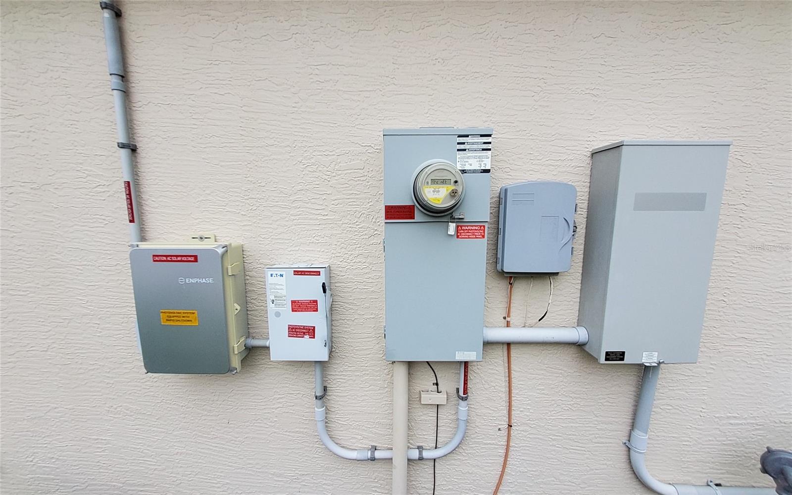 Welcome to your energy efficient home equipped with a new roof (2025), whole house solar panels, natural gas water heater and range, and whole-house backup generator. You’ll enjoy breathtaking waterfront sunsets and 17th Fairway views from the huge 24’x32’ screen-enclosed lanai / patio. This Monarch II design model home, built in 2016 was first occupied in 2018. Enjoy this 1 owner home that has been meticulously maintained and customized featuring retractable electric screens over breakaway sliding doors and garages, plantation shutters, custom pull-out drawers in kitchen and baths, whole home speaker system, 220v hookup for spa on patio, custom paver driveway, beautiful landscaping and more. As you walk through the inviting screen enclosed entry into the foyer, you’ll encounter a spacious, open great room area with cathedral ceilings. Enjoy entertaining in the open-concept kitchen and dining area with granite countertops, tile flooring, stainless steel appliance package, double door pantry, and breakfast bar. The ample sized primary bedroom offers a stand up shower, granite countertops and a walk-in closet. The inside laundry has plenty of space and storage with cabinets and sink. The oversized garage accommodates 2 cars and a golf cart easily. Arlington Ridge is known for their amazing amenities including 18 hole golf course, lighted tennis & pickle ball courts, billiards, heated pools, hot tubs, fitness center, community room, movie theatre, restaurant, tavern, storage lots, and more. (solar panels are financed with about $8,000 left)