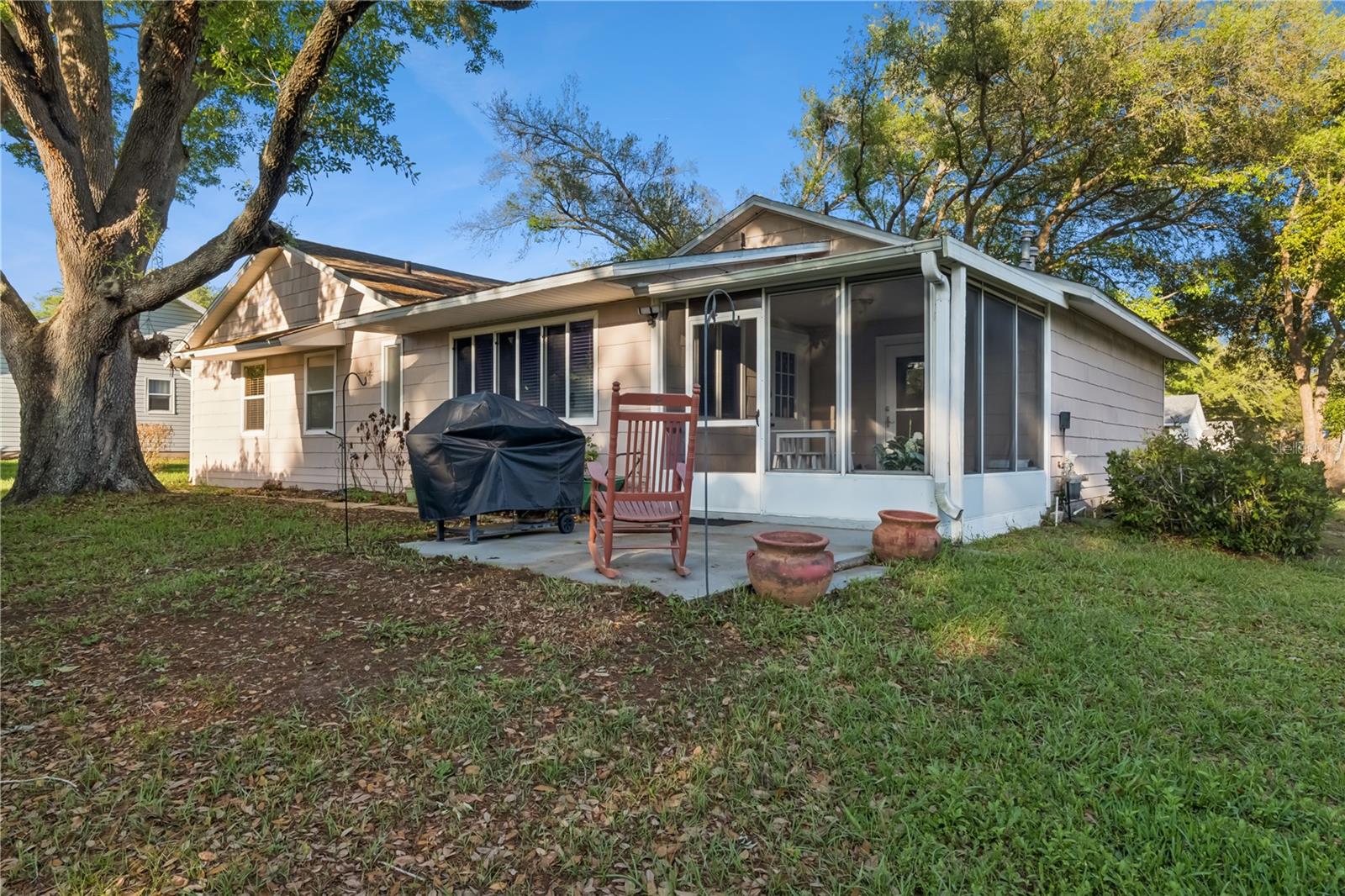 Welcome to this beautifully updated and truly charming 2-bedroom, 2-bath home located in the highly desirable 55+ community of Scottish Highlands in Leesburg. Perfectly positioned on a private lot with no rear neighbors and a peaceful glimpse of the pond, this home offers both tranquility and an active lifestyle. Step inside to find soaring cathedral ceilings and ceramic tile flooring throughout the main living areas, creating a light, open feel. The spacious living room flows effortlessly into a versatile den and additional living space, ideal for entertaining or relaxing. A French door leads to a bright family room, while the enclosed Florida Room provides the perfect spot to unwind and enjoy views of the open backyard framed by beautiful shade trees. The recently renovated kitchen is a true highlight, featuring abundant cabinetry and countertop space, a breakfast bar, pass-through to the den, and a new gas stove. Additional thoughtful touches like a built-in ironing board and a sink overlooking the front yard add both charm and functionality. The primary suite is a true retreat, featuring engineered wood floors, custom closets, and a stunningly updated en-suite bath with a garden tub, tiled floors, and upgraded countertops. The guest bedroom is generously sized with double closets and matching engineered wood flooring, while the guest bath includes a convenient walk-in shower. Enjoy outdoor living year-round on the screened porch with vinyl windows, or take advantage of the oversized one-car garage with room for your golf cart, complete with a utility tub and rear entry door. Living in Scottish Highlands means enjoying an exceptional amenity-rich lifestyle, including an indoor Olympic-size heated pool and spa, recreation halls, tennis courts, and a full calendar of social activities. RV and boat storage are also available, making it easy to enjoy all that Florida has to offer. With recent updates, a renovated kitchen, serene views, and no rear neighbors, this one-of-a-kind home shows beautifully and is ready to impress!