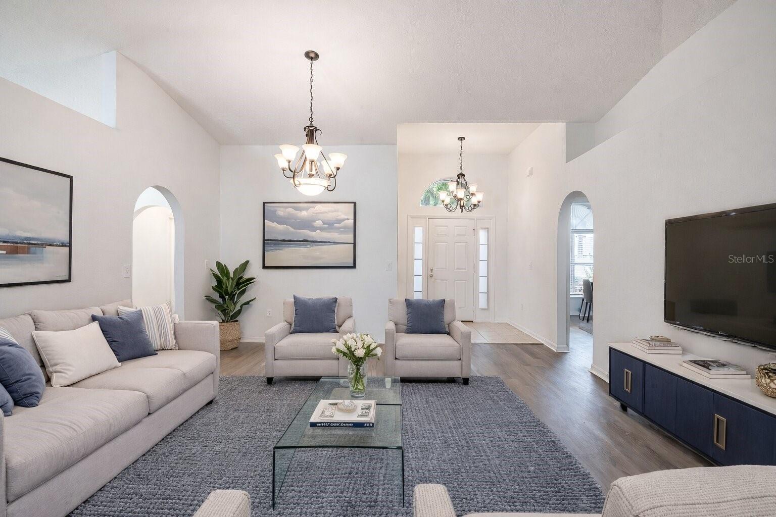 Welcome to 2123 Anoka Way in Leesburg, FL — a beautifully updated home that blends modern upgrades with a lovely curb-appeal, comfort, space, and natural light. From the moment you walk in, you’re greeted by vaulted ceilings and an open, airy feel that carries throughout the home. With two separate, generously sized living areas, this layout offers flexibility for entertaining and relaxing! The kitchen has been thoughtfully refreshed with brand new quartz countertops, freshly painted and sealed cabinetry, a stylish backsplash, and new appliances — giving it a clean, modern feel that truly stands out. Major updates have already been taken care of for you, including a brand new roof (December 2024) and a NEW AC system (2025), offering peace of mind for years to come. The home also features updated LVP flooring throughout and fresh interior paint, making it completely move-in ready. Natural light pours into the home, highlighting the finishes and creating a warm, inviting atmosphere in every room. Step outside and you’ll find a meticulously maintained lawn and landscaping, adding to the overall pride of ownership and curb appeal. If you’re looking for a home that checks all the boxes — updated, spacious, and truly turnkey — this is one you don’t want to miss.