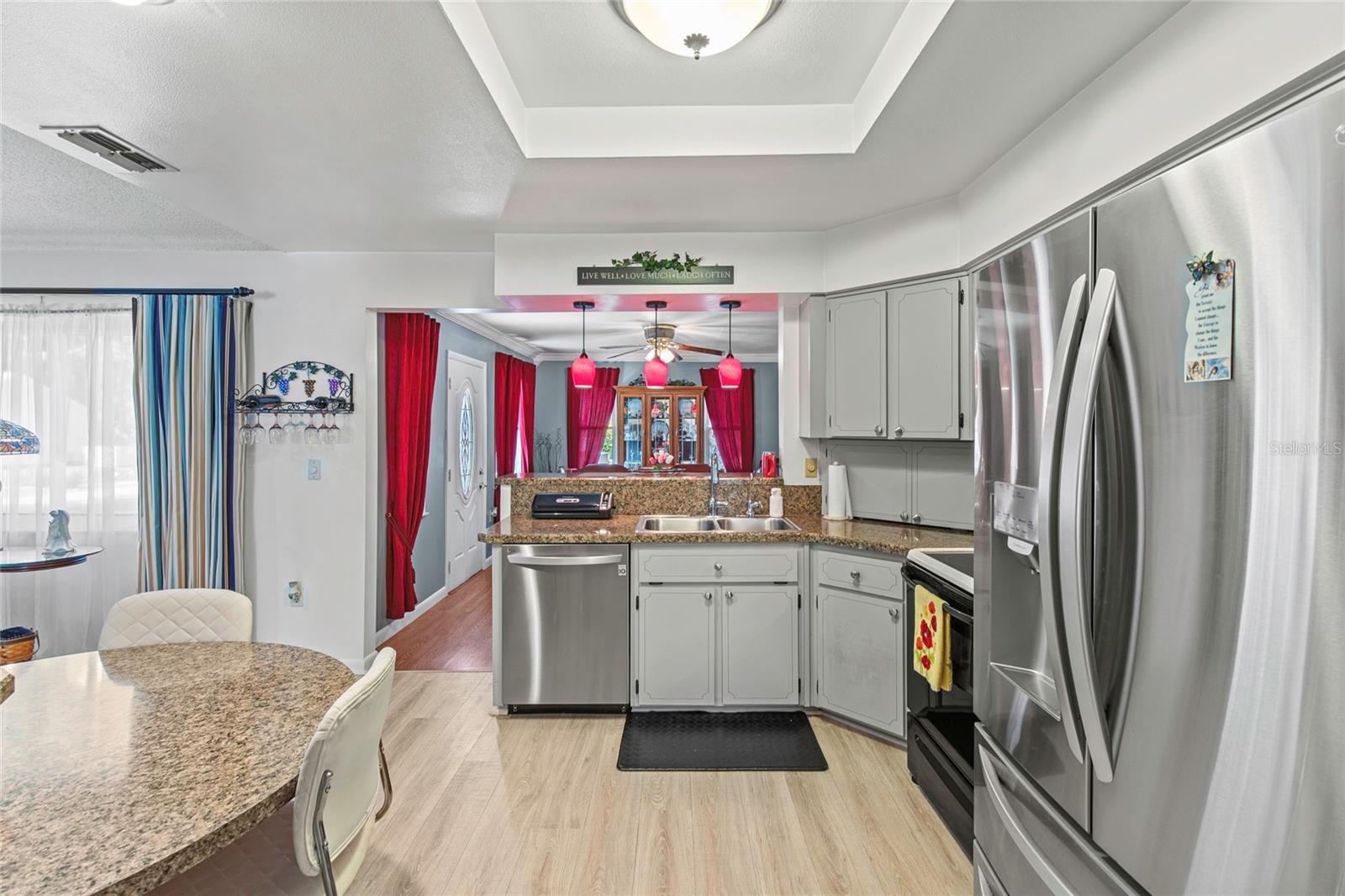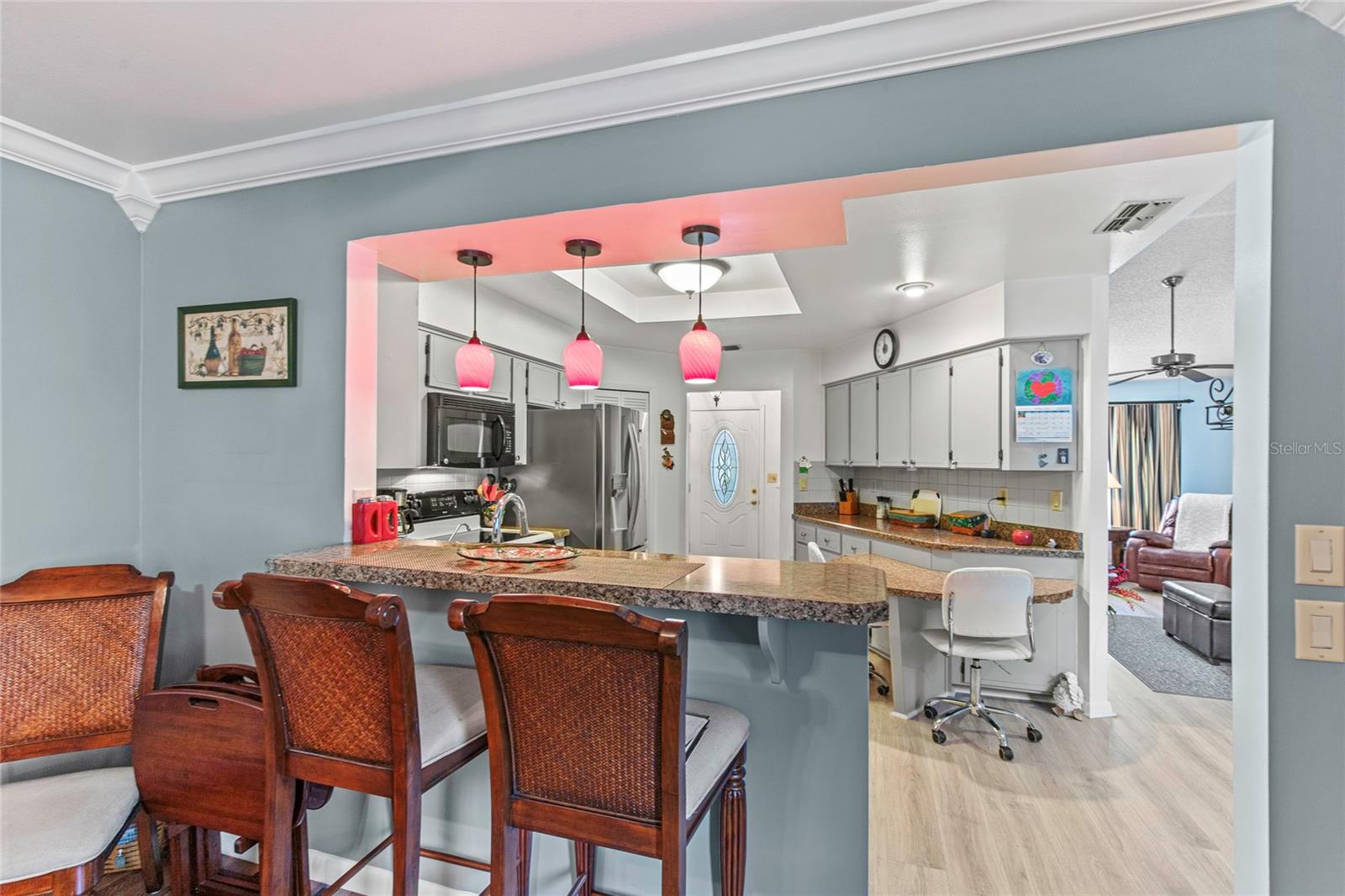 Seller says bring all OFFERS!! Wide open Views with NO REAR NEIGHBORS in a unique friendly 55+ community nestled in central Florida. Multiple recent upgrades include finished family room, NEW WINDOWS in 2009 and newer floors... NO CARPET. Fruit trees and quaint sitting porch in the front. Home offers various types of storage from extra closets and cabinets, inside laundry and eat in kitchen. Garage is 20x18 with work station, bedrooms with walk in closet as well as an over sized master bath with new shower and vanity, Guest Bath has new shower as well...BOTH over 25K for showers alone. Open flexible floor plan, Highlander, with high ceilings is perfect for entertaining. Home sits on a small cul-de-sac in a friendly neighborhood that offers super amenities such as heated Olympic sized indoor pool and an out door one, two community buildings, pickle ball and tennis courts along with shuffle board to name a few. Seller is providing a BROWARD FACTORY SERVICE PLAN INCLUDED. Low HOA fee includes cable, internet and sewer. This location is also close to Mount Dora and the Villages, great restaurants and great shopping. What a delight to show. CLICK Link to virtual tour.