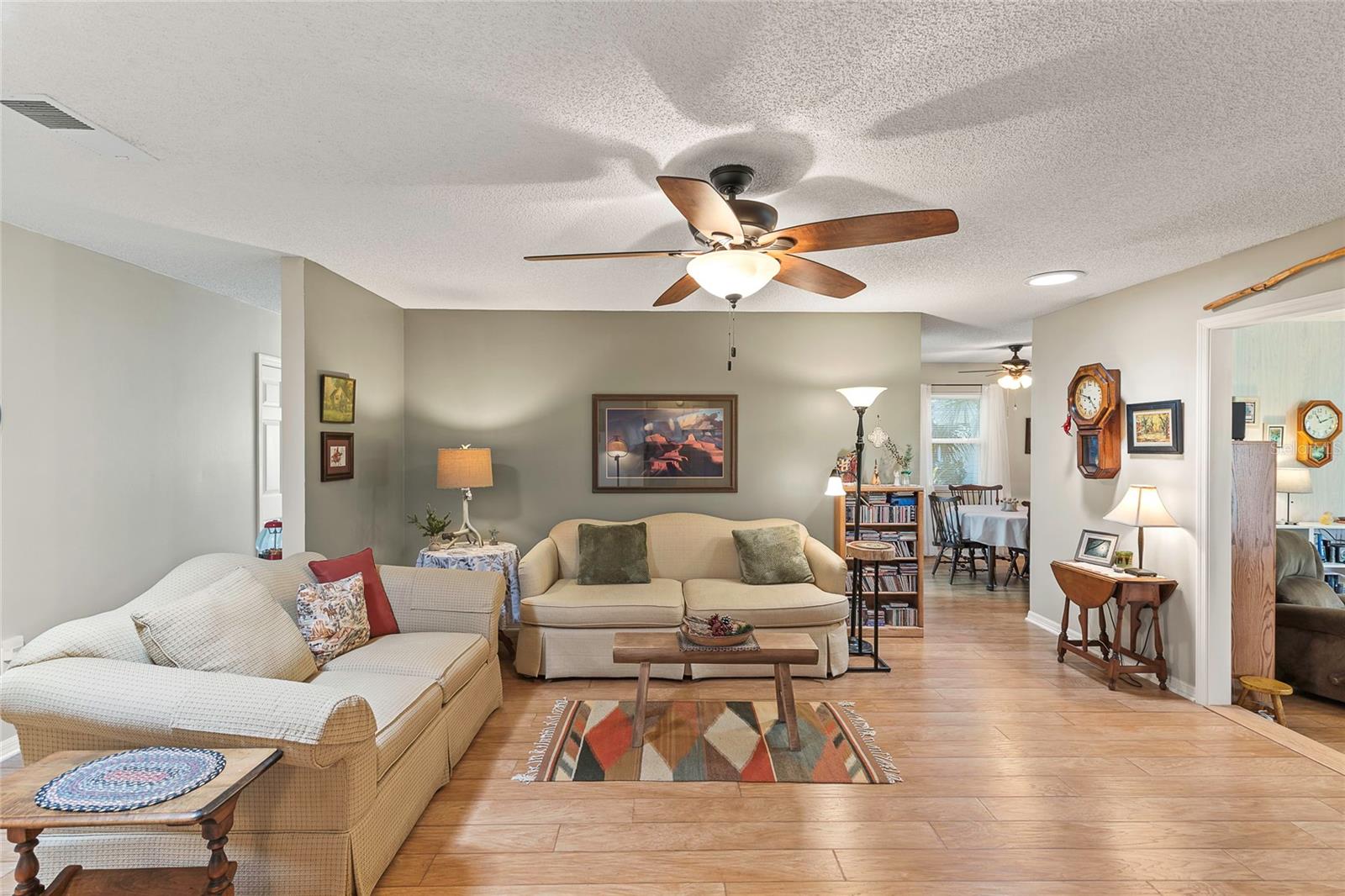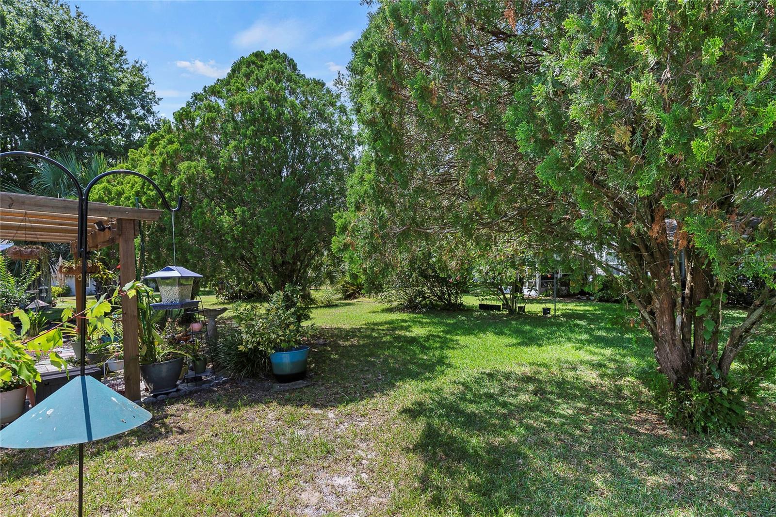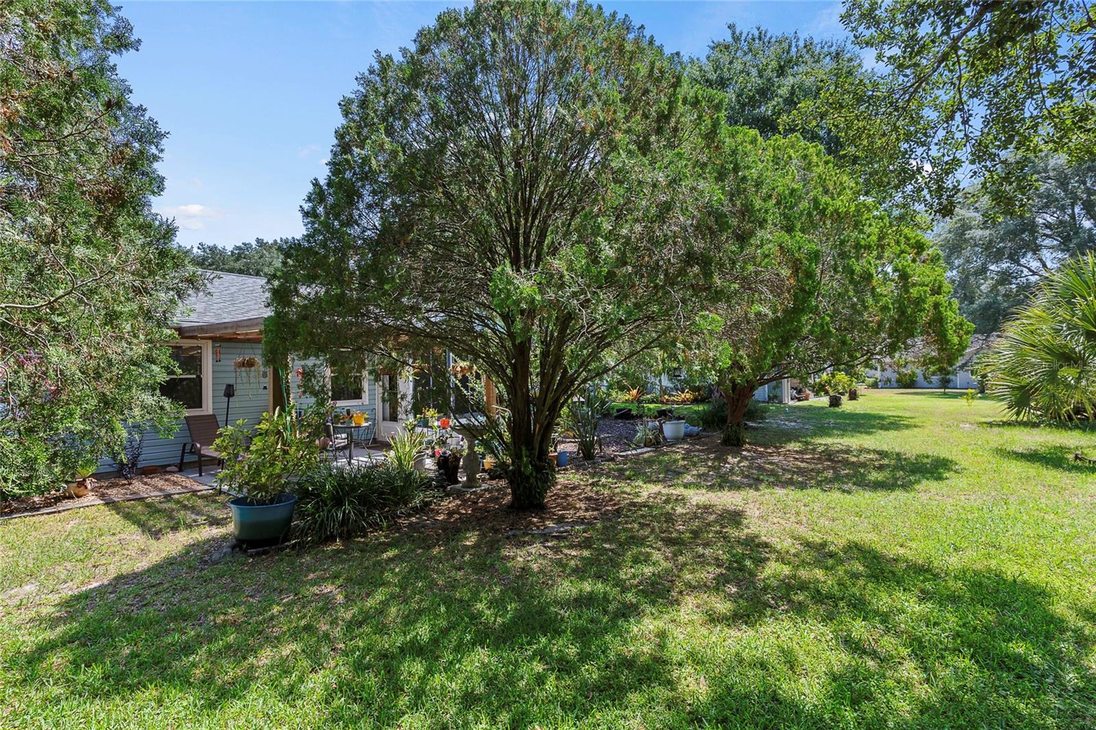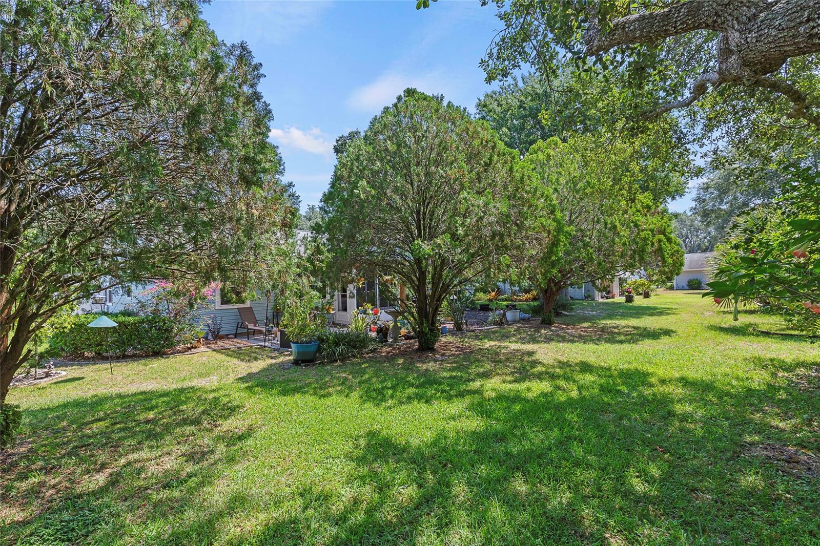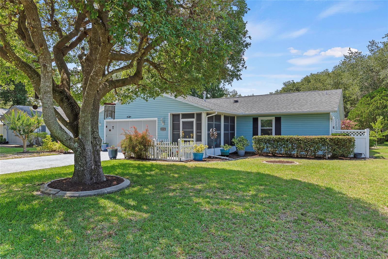 The epitome of elegance and comfort in a friendly 55+ community. This stunning home is a true sanctuary, designed with thoughtful upgrades and surrounded by serene natural beauty. Imagine waking up each day in a home that offers both color and tranquility, perfectly suited to your lifestyle. Each room in this home exudes a sense of coolness and style, with a touch of happiness. The spacious bedrooms provide a peaceful retreat, while the master suite is a true haven with its luxurious, newly redone bathroom featuring a new Cultured Marble Shower. The guest bath boast a new vanity and stone top and all doors have been replaced with 6 panel and new hardware. Newer paint and switch plates add to the glamour. Imagine unwinding and having friends over in your own Florida retreat. Storage will never be an issue, thanks to the multiple closets thoughtfully placed throughout the home. The absence of carpet enhances the clean, contemporary feel, while also making maintenance a breeze. Step outside to your private oasis. The backyard is a Florida lover’s dream, boasting an array of trees and flowers that create a picturesque setting. A tranquil pergola invites you to relax and enjoy the beauty of your surroundings. Every room in the house offers stunning views of this natural paradise, bringing the outside in. A WELL for irrigation keeps your garden affordable then there are newer double pane, tinted windows and an HVAC replaced in 2021. Scottish Highlands HOA includes basic cable, internet and sewer. It is close to the Villages and Mount Dora, two hospitals and shopping/restaurants. A heated indoor Olympic sized pool for year round fun as well as an outdoor one is just part of the Amenities. Come see for yourself how possible paradise can be.