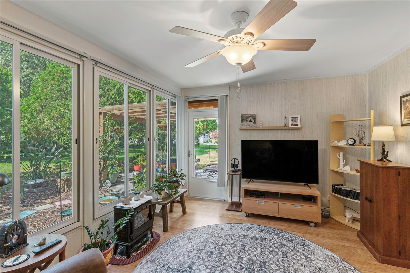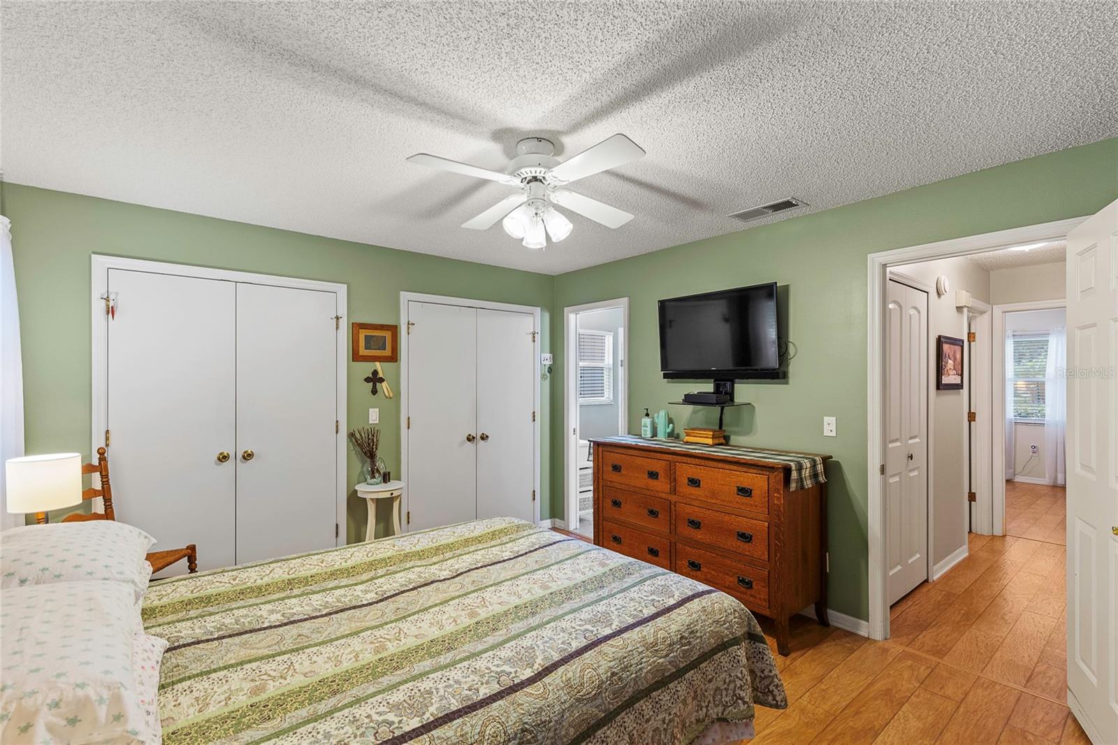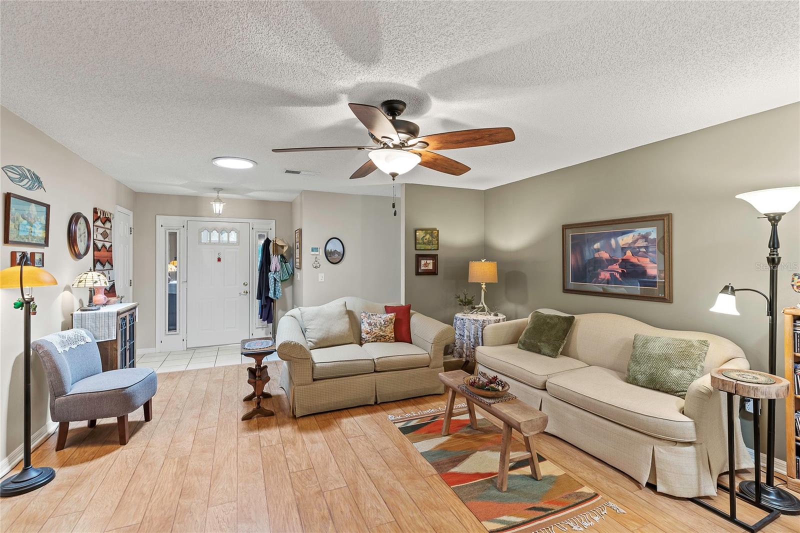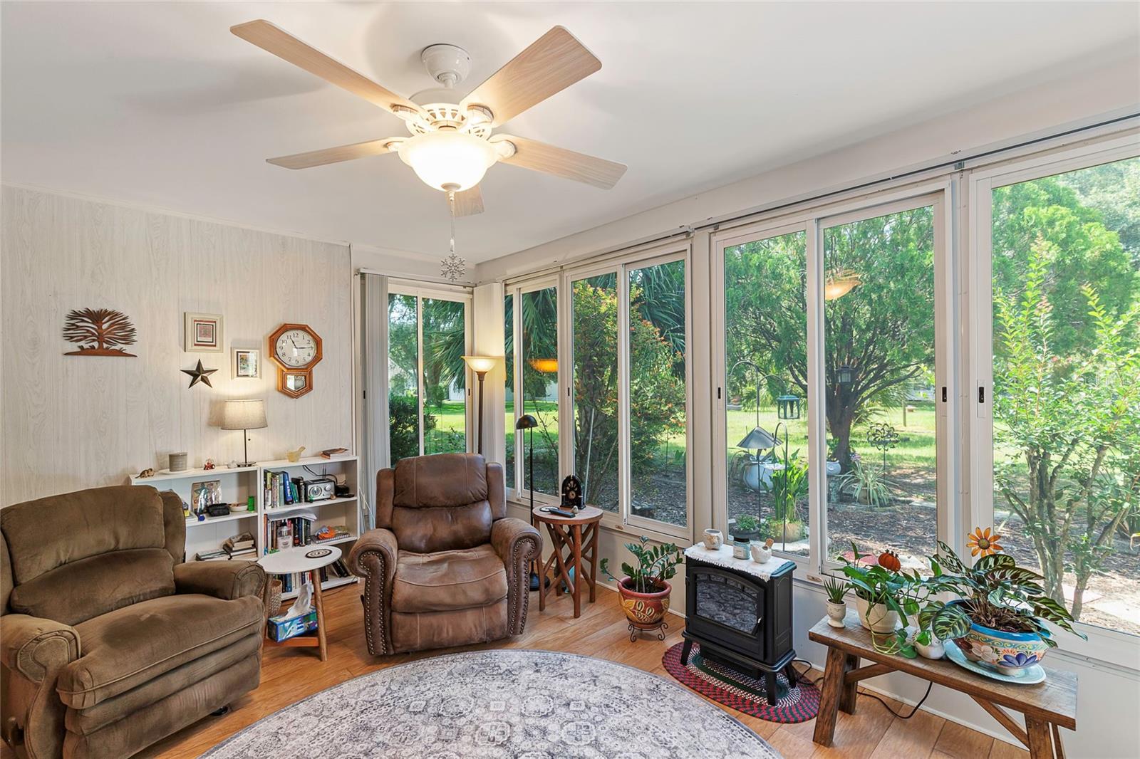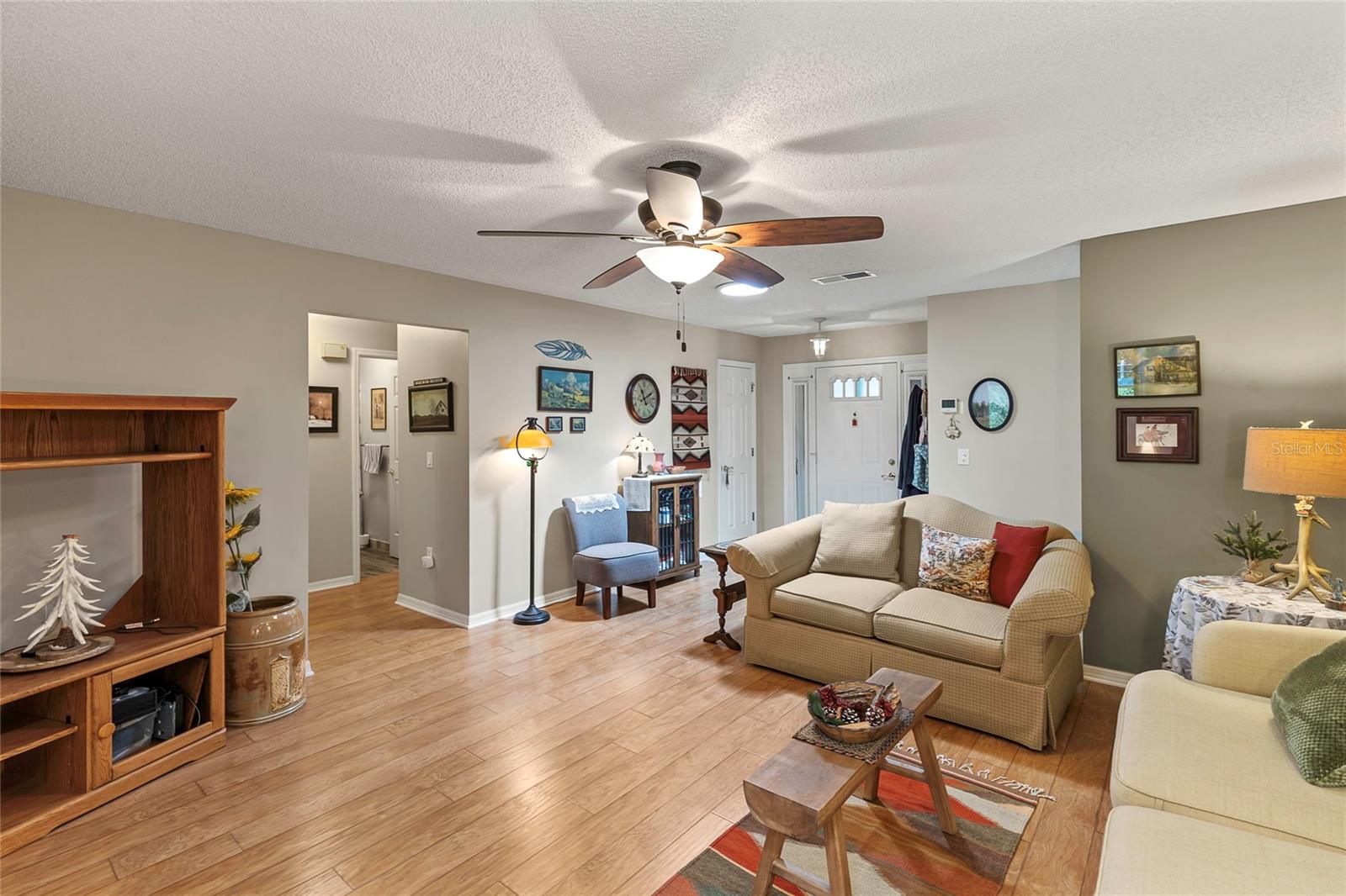 The epitome of elegance and comfort in a friendly 55+ community. This stunning home is a true sanctuary, designed with thoughtful upgrades and surrounded by serene natural beauty. Imagine waking up each day in a home that offers both color and tranquility, perfectly suited to your lifestyle. Each room in this home exudes a sense of coolness and style, with a touch of happiness. The spacious bedrooms provide a peaceful retreat, while the master suite is a true haven with its luxurious, newly redone bathroom featuring a new Cultured Marble Shower. The guest bath boast a new vanity and stone top and all doors have been replaced with 6 panel and new hardware. Newer paint and switch plates add to the glamour. Imagine unwinding and having friends over in your own Florida retreat. Storage will never be an issue, thanks to the multiple closets thoughtfully placed throughout the home. The absence of carpet enhances the clean, contemporary feel, while also making maintenance a breeze. Step outside to your private oasis. The backyard is a Florida lover’s dream, boasting an array of trees and flowers that create a picturesque setting. A tranquil pergola invites you to relax and enjoy the beauty of your surroundings. Every room in the house offers stunning views of this natural paradise, bringing the outside in. A WELL for irrigation keeps your garden affordable then there are newer double pane, tinted windows and an HVAC replaced in 2021. Scottish Highlands HOA includes basic cable, internet and sewer. It is close to the Villages and Mount Dora, two hospitals and shopping/restaurants. A heated indoor Olympic sized pool for year round fun as well as an outdoor one is just part of the Amenities. Come see for yourself how possible paradise can be.