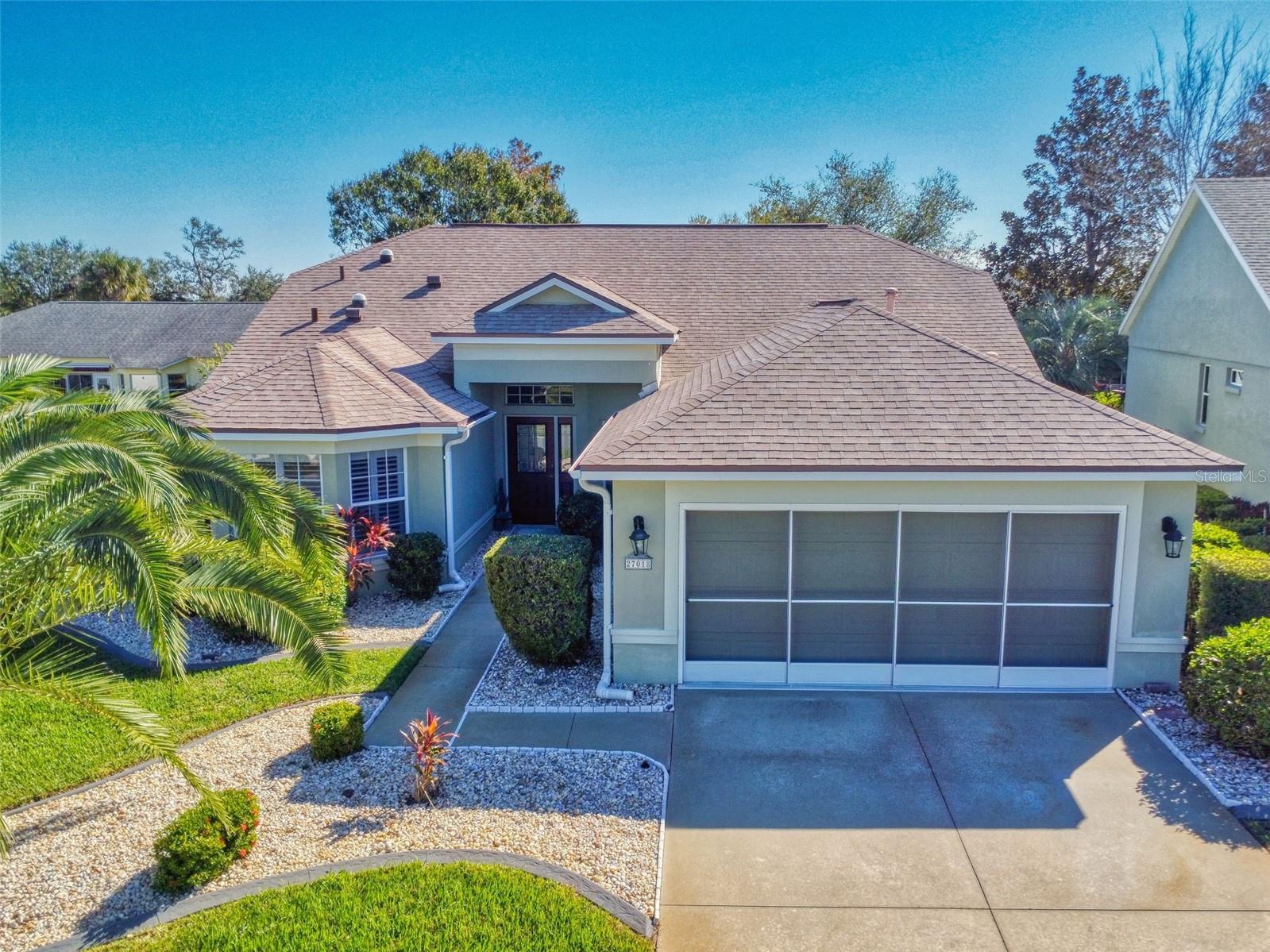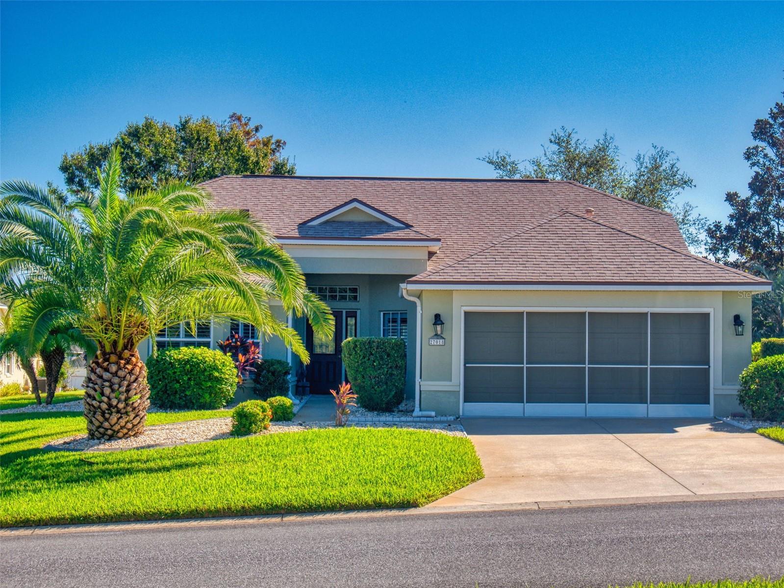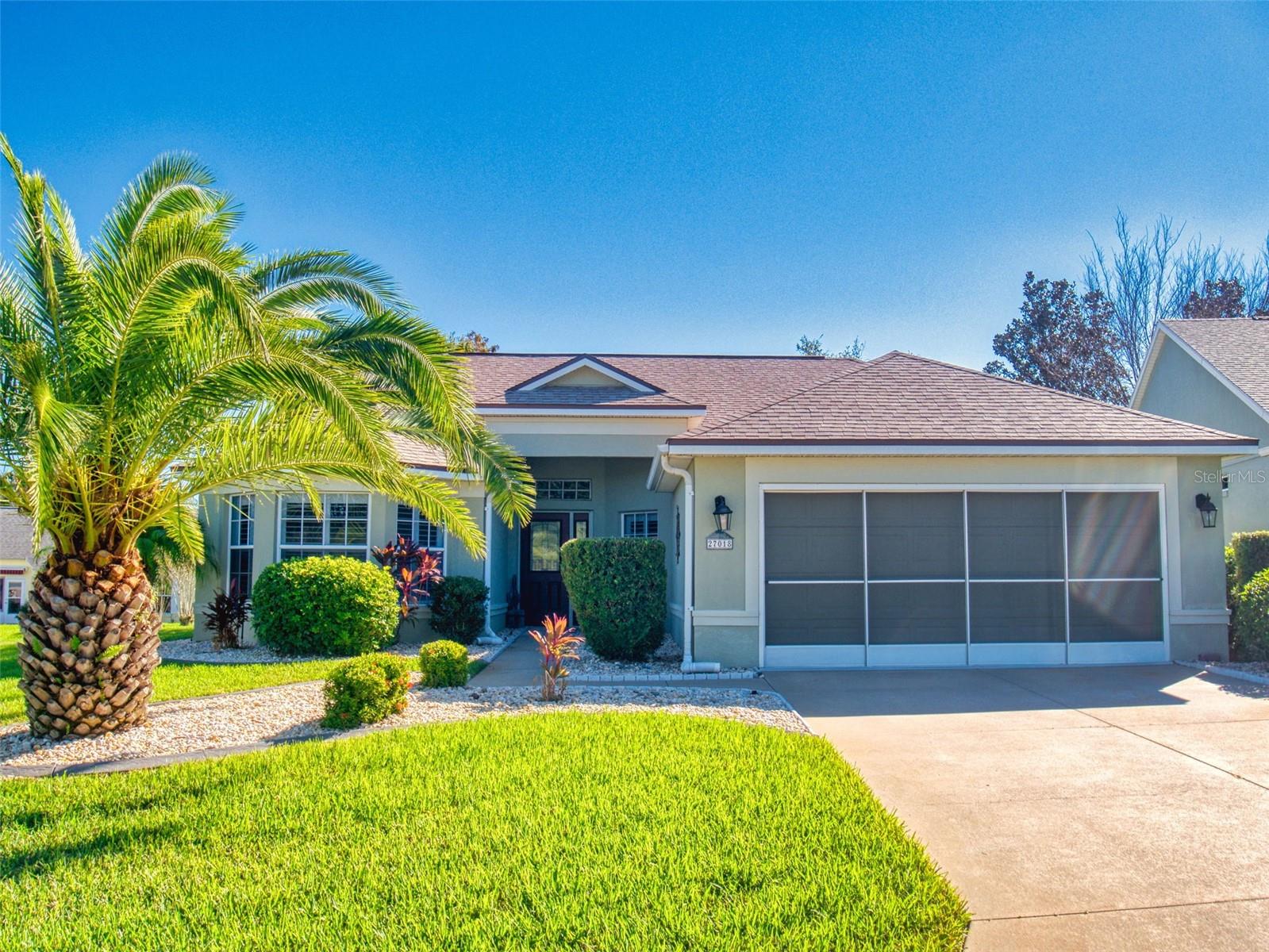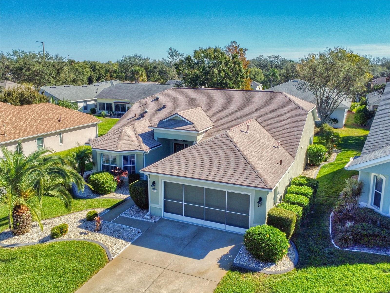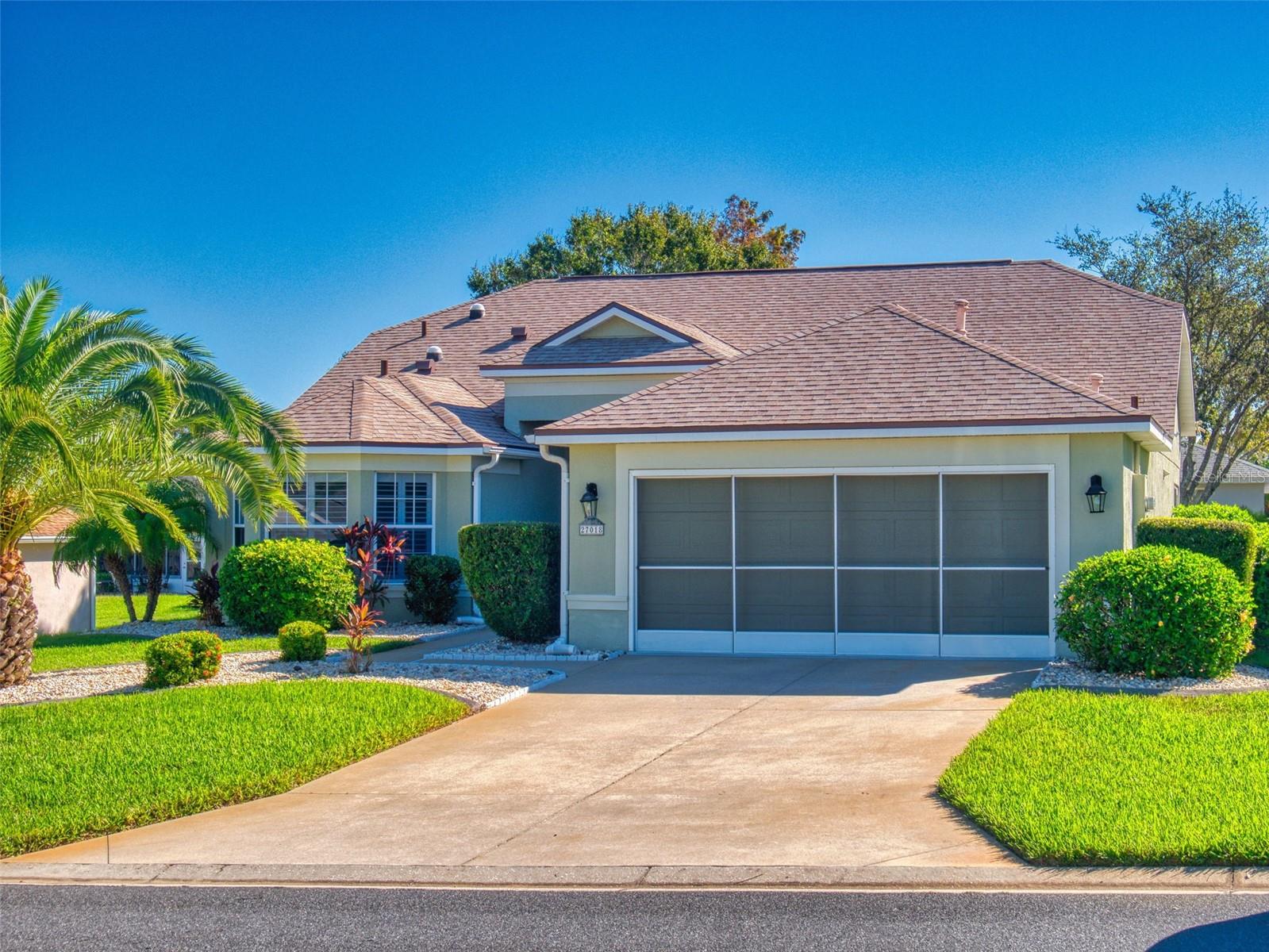 Motivated Seller in Legacy of Leesburg! This homes features plantation shutters, crown molding, ceramic tile floors, vaulted and tray ceilings all within an expansive open floor plan. Large outdoor patio area that compliments the amazing oversized Florida room that has been completely enclosed and includes double pain windows and ceramic tile, perfect for a den or office. The spacious master bedroom offers a wonderful bay window and tray ceiling. The second bedroom is large and bright with its own set of bay windows. The kitchen features 42-inch solid wood cabinets (recently painted), beautiful new granite counter tops, cabinet pull-outs, breakfast bar, built in desk, built in oven and microwave, ceramic cook top and closet pantry. (Checks ALL the boxes!) Additional upgrades and appointments include newer double pane windows, dry bar in dining area and custom closets in the primary. Come check out The Legacy of Leesburg, a *nature-themed* 55 plus community designed with nearly half the acreage devoted to conservation, wildlife wetlands and bird sanctuary. A full array of amenities include a luxurious walk-in heated pool and spa, fitness and aerobics rooms, computer center, library, craft rooms, softball, tennis, bocce ball, and pickle ball! Enjoy the outdoor Florida lifestyle on the miles of walking trails and biking paths. The HOA includes lawn care, edging, cable TV, RV/Boat storage, private website and more. This great home has been meticulously maintained, is move-in-ready! Roof 2017