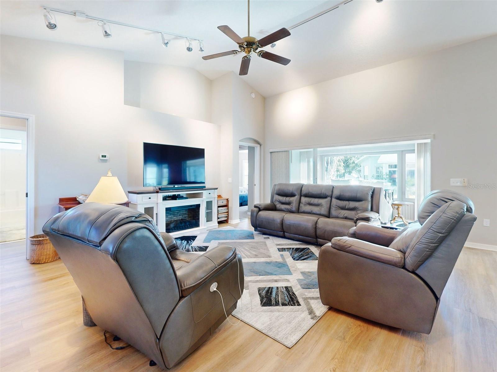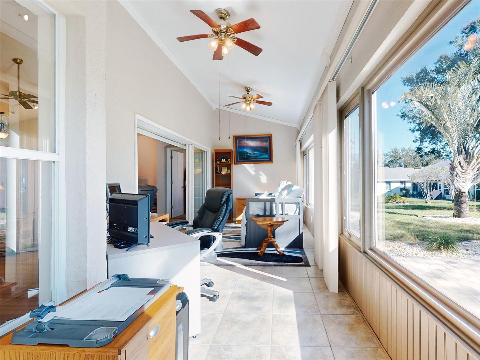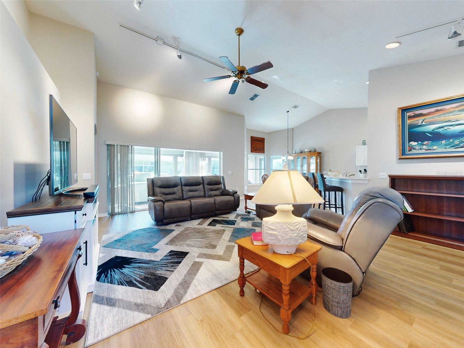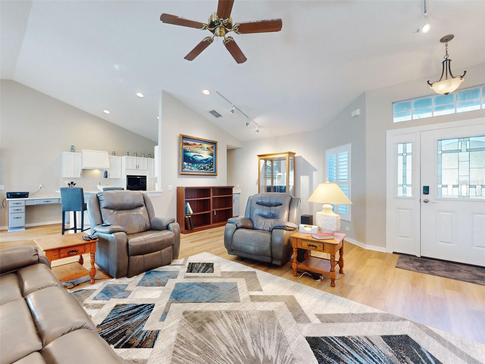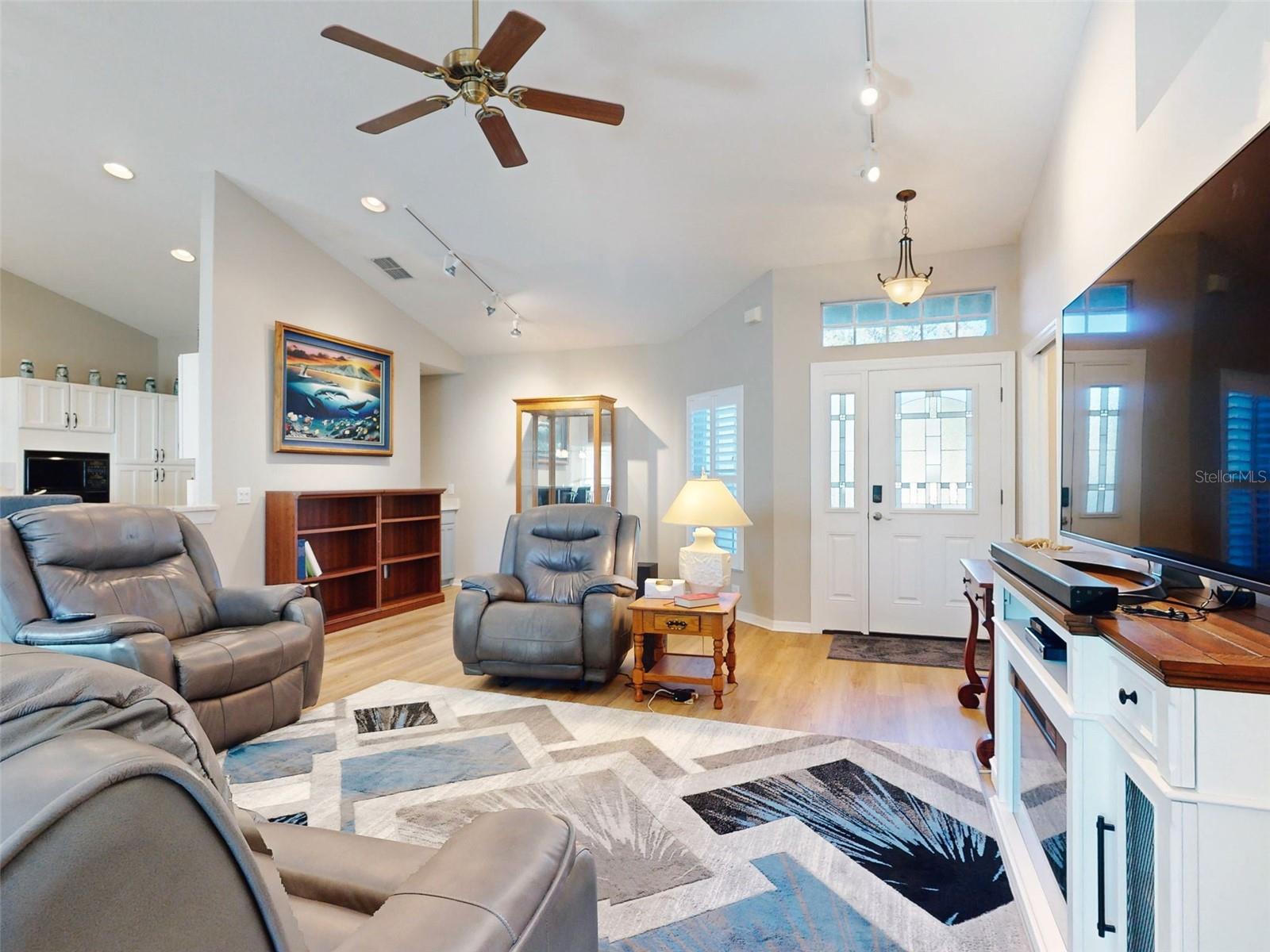 Motivated Seller in Legacy of Leesburg! This homes features plantation shutters, crown molding, ceramic tile floors, vaulted and tray ceilings all within an expansive open floor plan. Large outdoor patio area that compliments the amazing oversized Florida room that has been completely enclosed and includes double pain windows and ceramic tile, perfect for a den or office. The spacious master bedroom offers a wonderful bay window and tray ceiling. The second bedroom is large and bright with its own set of bay windows. The kitchen features 42-inch solid wood cabinets (recently painted), beautiful new granite counter tops, cabinet pull-outs, breakfast bar, built in desk, built in oven and microwave, ceramic cook top and closet pantry. (Checks ALL the boxes!) Additional upgrades and appointments include newer double pane windows, dry bar in dining area and custom closets in the primary. Come check out The Legacy of Leesburg, a *nature-themed* 55 plus community designed with nearly half the acreage devoted to conservation, wildlife wetlands and bird sanctuary. A full array of amenities include a luxurious walk-in heated pool and spa, fitness and aerobics rooms, computer center, library, craft rooms, softball, tennis, bocce ball, and pickle ball! Enjoy the outdoor Florida lifestyle on the miles of walking trails and biking paths. The HOA includes lawn care, edging, cable TV, RV/Boat storage, private website and more. This great home has been meticulously maintained, is move-in-ready! Roof 2017