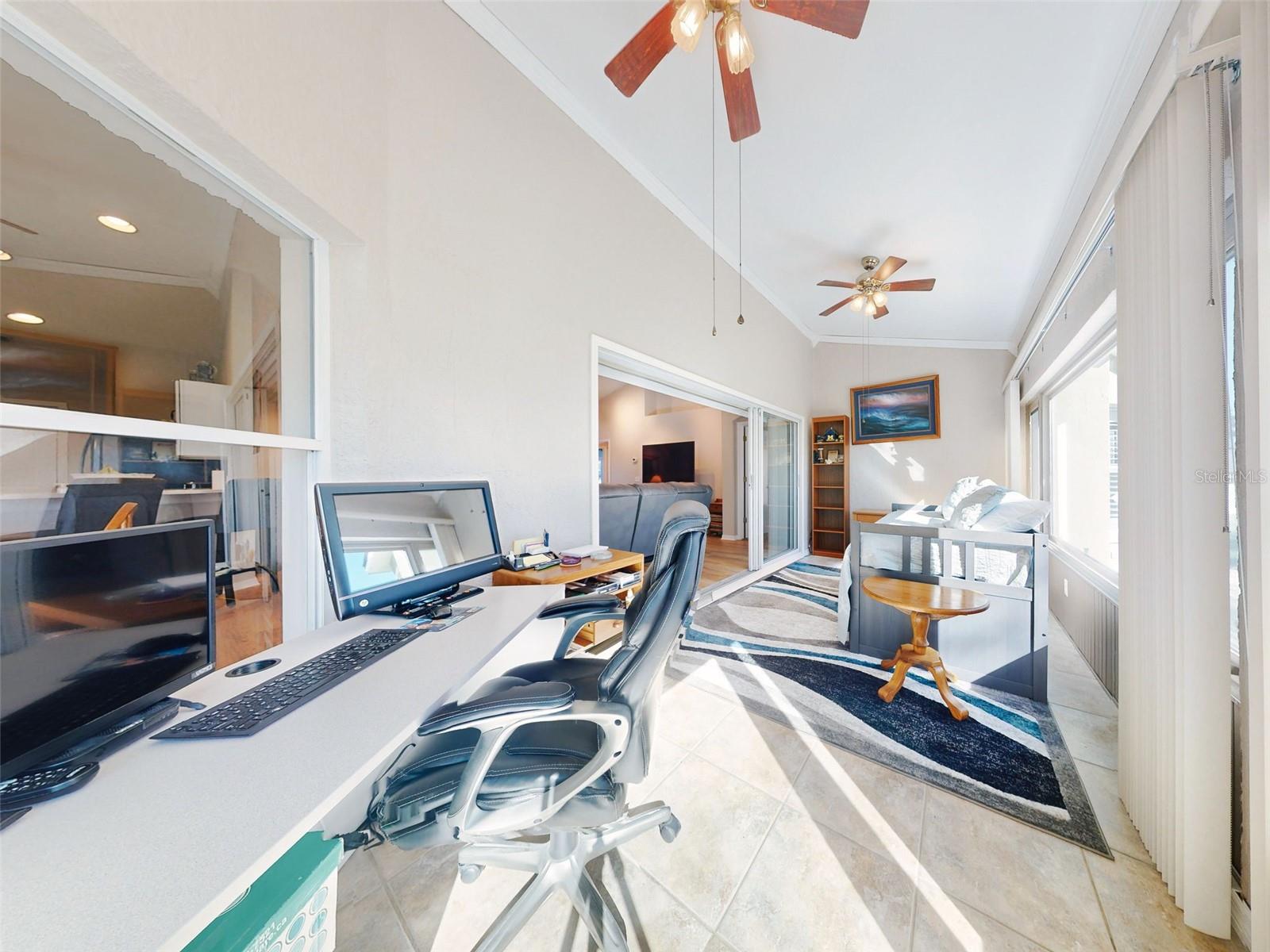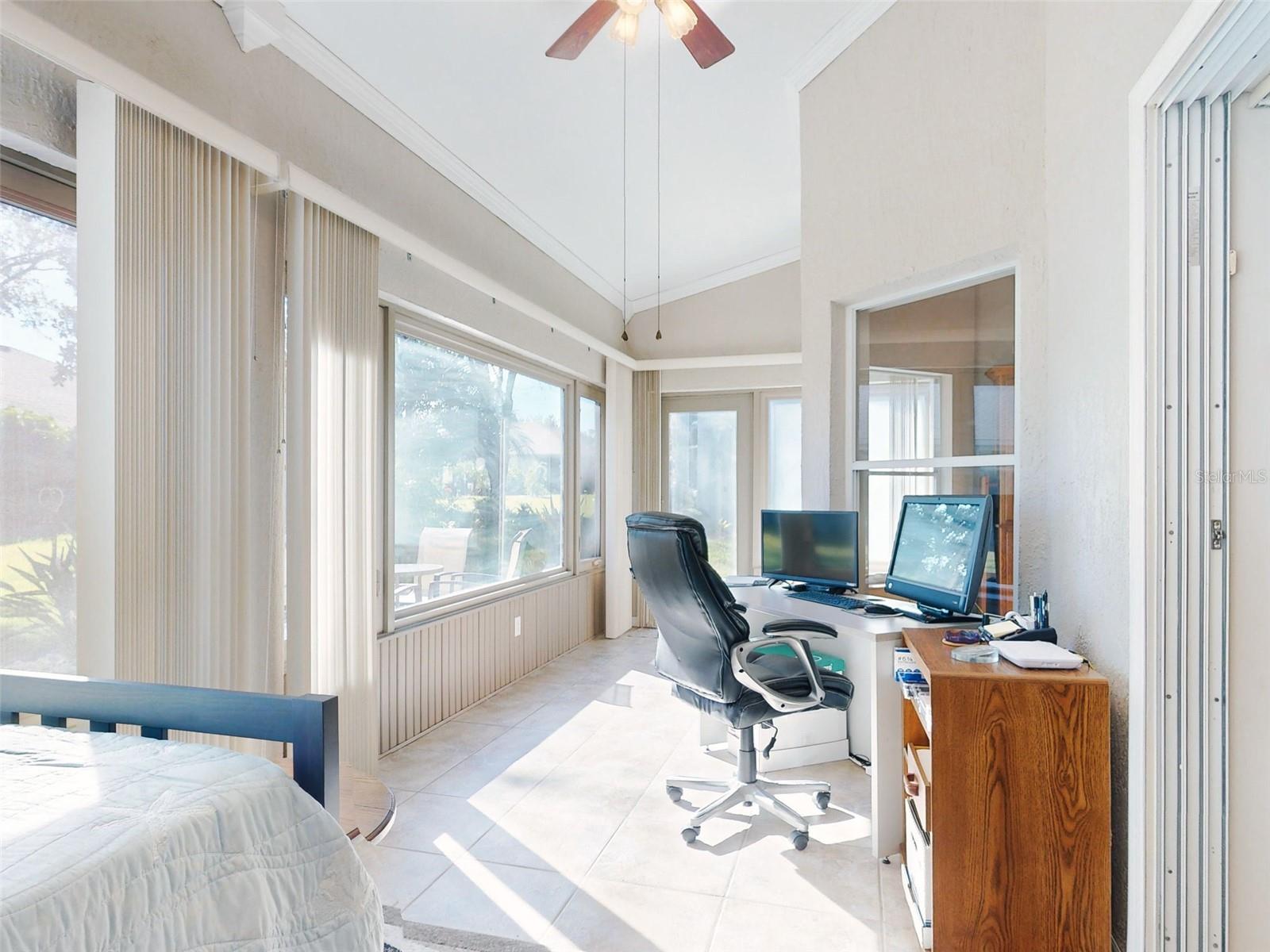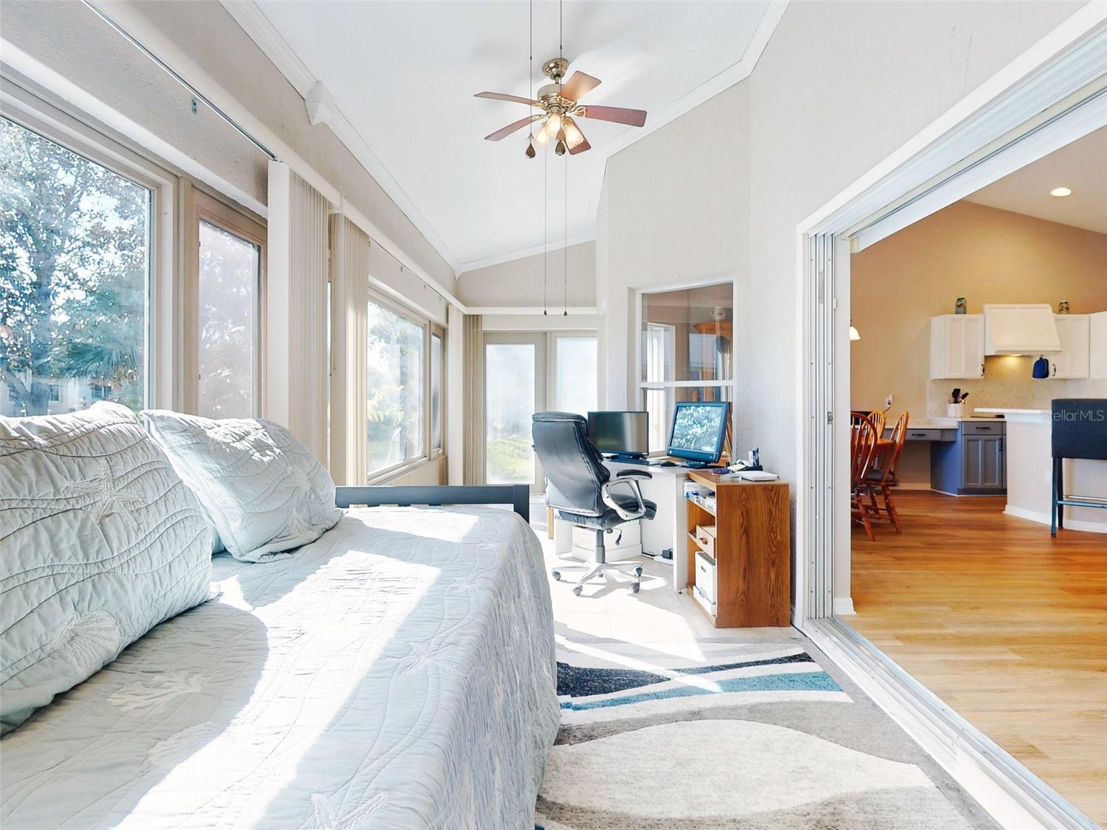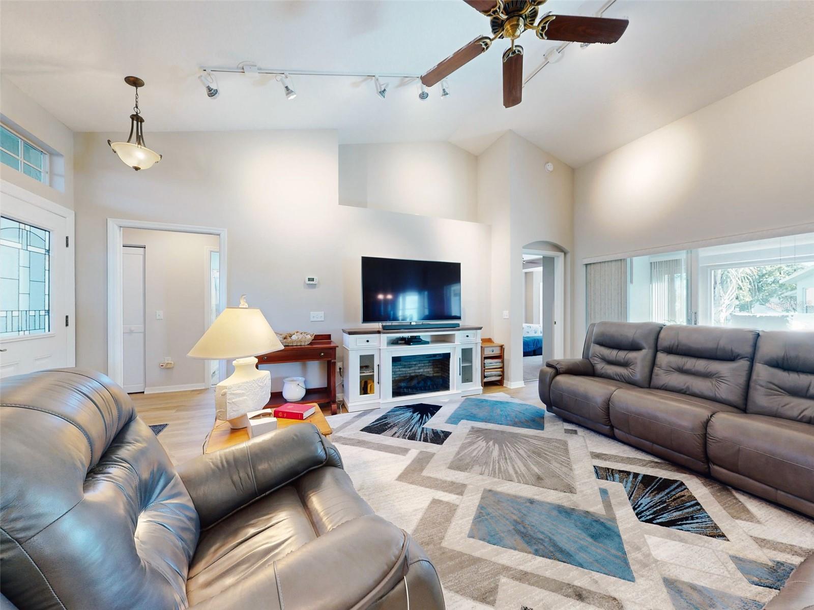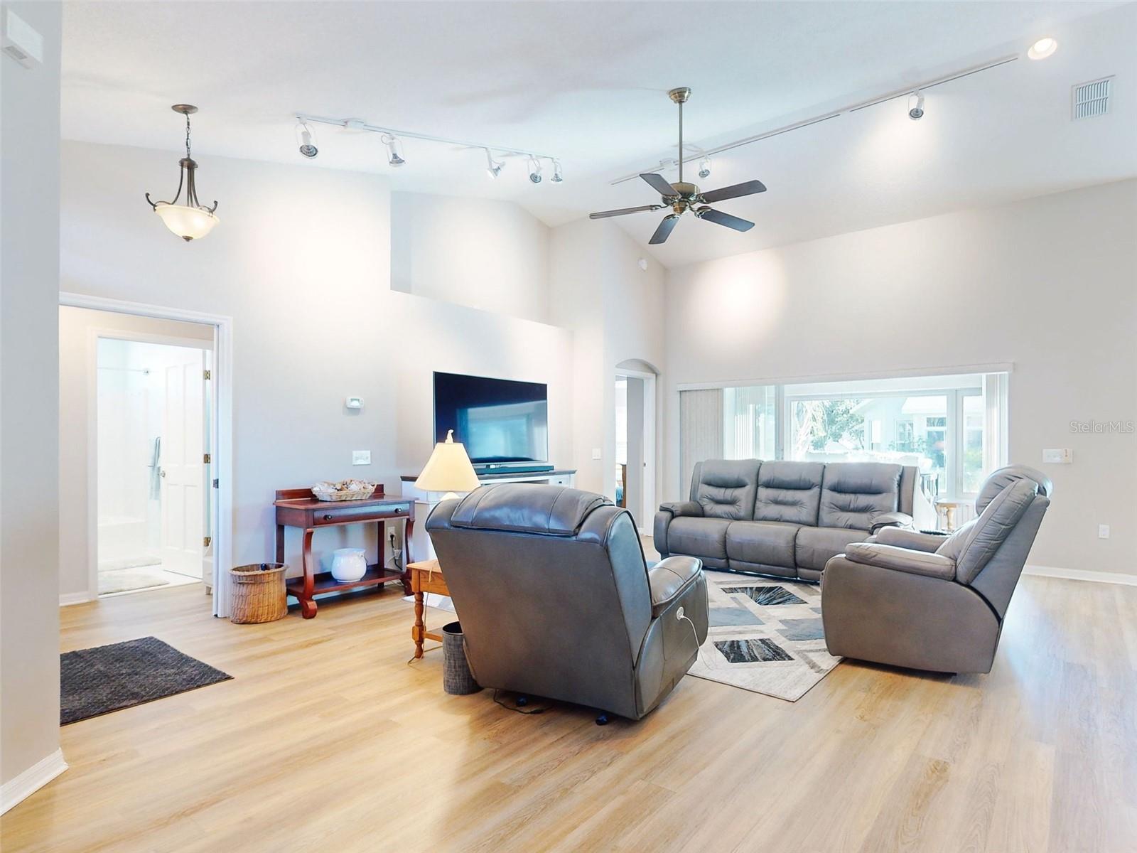 Motivated Seller in Legacy of Leesburg! This homes features plantation shutters, crown molding, ceramic tile floors, vaulted and tray ceilings all within an expansive open floor plan. Large outdoor patio area that compliments the amazing oversized Florida room that has been completely enclosed and includes double pain windows and ceramic tile, perfect for a den or office. The spacious master bedroom offers a wonderful bay window and tray ceiling. The second bedroom is large and bright with its own set of bay windows. The kitchen features 42-inch solid wood cabinets (recently painted), beautiful new granite counter tops, cabinet pull-outs, breakfast bar, built in desk, built in oven and microwave, ceramic cook top and closet pantry. (Checks ALL the boxes!) Additional upgrades and appointments include newer double pane windows, dry bar in dining area and custom closets in the primary. Come check out The Legacy of Leesburg, a *nature-themed* 55 plus community designed with nearly half the acreage devoted to conservation, wildlife wetlands and bird sanctuary. A full array of amenities include a luxurious walk-in heated pool and spa, fitness and aerobics rooms, computer center, library, craft rooms, softball, tennis, bocce ball, and pickle ball! Enjoy the outdoor Florida lifestyle on the miles of walking trails and biking paths. The HOA includes lawn care, edging, cable TV, RV/Boat storage, private website and more. This great home has been meticulously maintained, is move-in-ready! Roof 2017