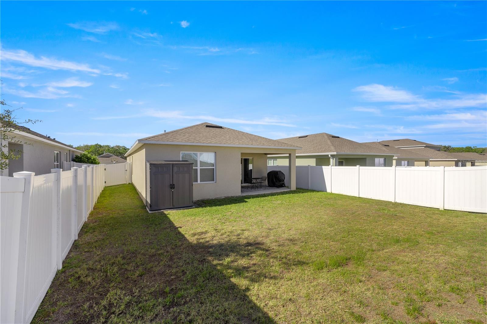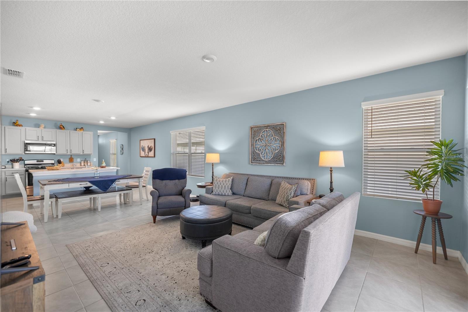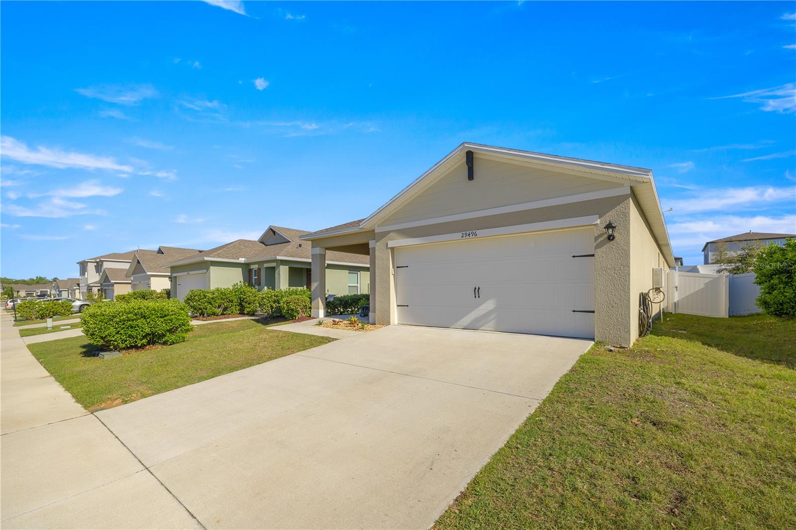 Welcome to this exquisite 2020 Jemison model smart home, featuring 3-bedrooms and 2-bathrooms within the lovely Lake Denham Estates subdivision. The interior has been tastefully painted, enhancing the welcoming ambiance of this open floor-plan home. The kitchen overlooking the dining and living room includes a breakfast bar area, a large cooking island, a gas range, a newly added microwave as well as refined hardware to enhance the look of the cabinets. Modern conveniences like a smart garage door opener, sprinkler system, and a tank-less gas water heater also add to the home's appeal. Relax on the covered lanai that overlooks your spacious, fully vinyl-fenced backyard. The lovely Lake Denham Estates offers a pool as well as a playground for family enjoyment. This home is conveniently located close to shopping, medical facilities, as well as, adjacent to the Flat Island Preserve, where you can indulge in several different outdoor activities. If that is not enough, head across the road to enjoy water sport activities on beautiful Lake Harris. Schedule your showing today to see why this home is perfect for you.
