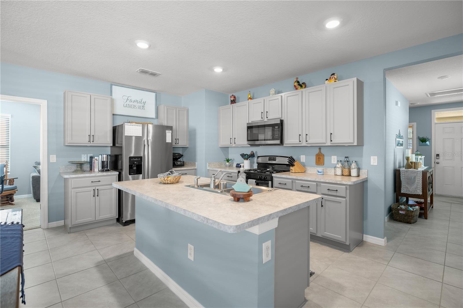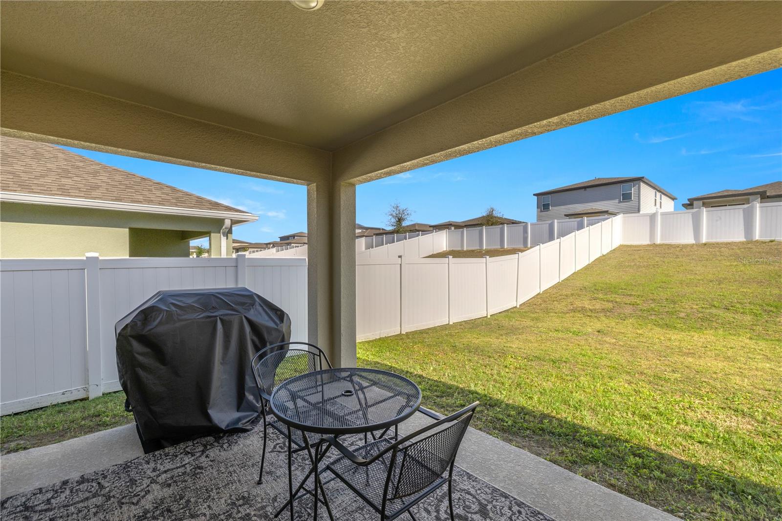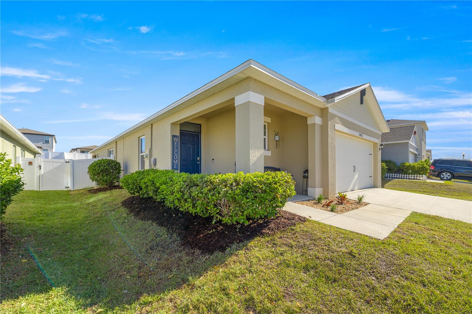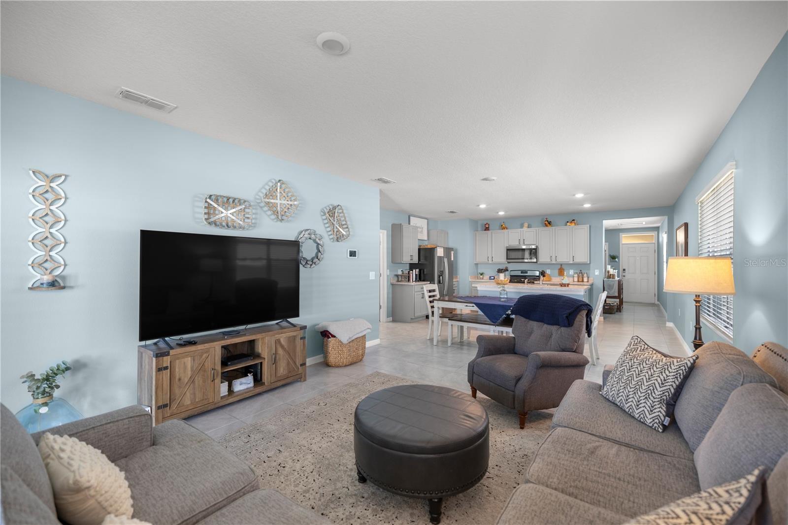 Welcome to this exquisite 2020 Jemison model smart home, featuring 3-bedrooms and 2-bathrooms within the lovely Lake Denham Estates subdivision. The interior has been tastefully painted, enhancing the welcoming ambiance of this open floor-plan home. The kitchen overlooking the dining and living room includes a breakfast bar area, a large cooking island, a gas range, a newly added microwave as well as refined hardware to enhance the look of the cabinets. Modern conveniences like a smart garage door opener, sprinkler system, and a tank-less gas water heater also add to the home's appeal. Relax on the covered lanai that overlooks your spacious, fully vinyl-fenced backyard. The lovely Lake Denham Estates offers a pool as well as a playground for family enjoyment. This home is conveniently located close to shopping, medical facilities, as well as, adjacent to the Flat Island Preserve, where you can indulge in several different outdoor activities. If that is not enough, head across the road to enjoy water sport activities on beautiful Lake Harris. Schedule your showing today to see why this home is perfect for you.