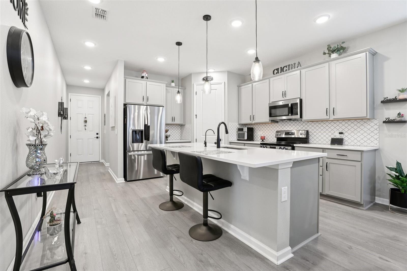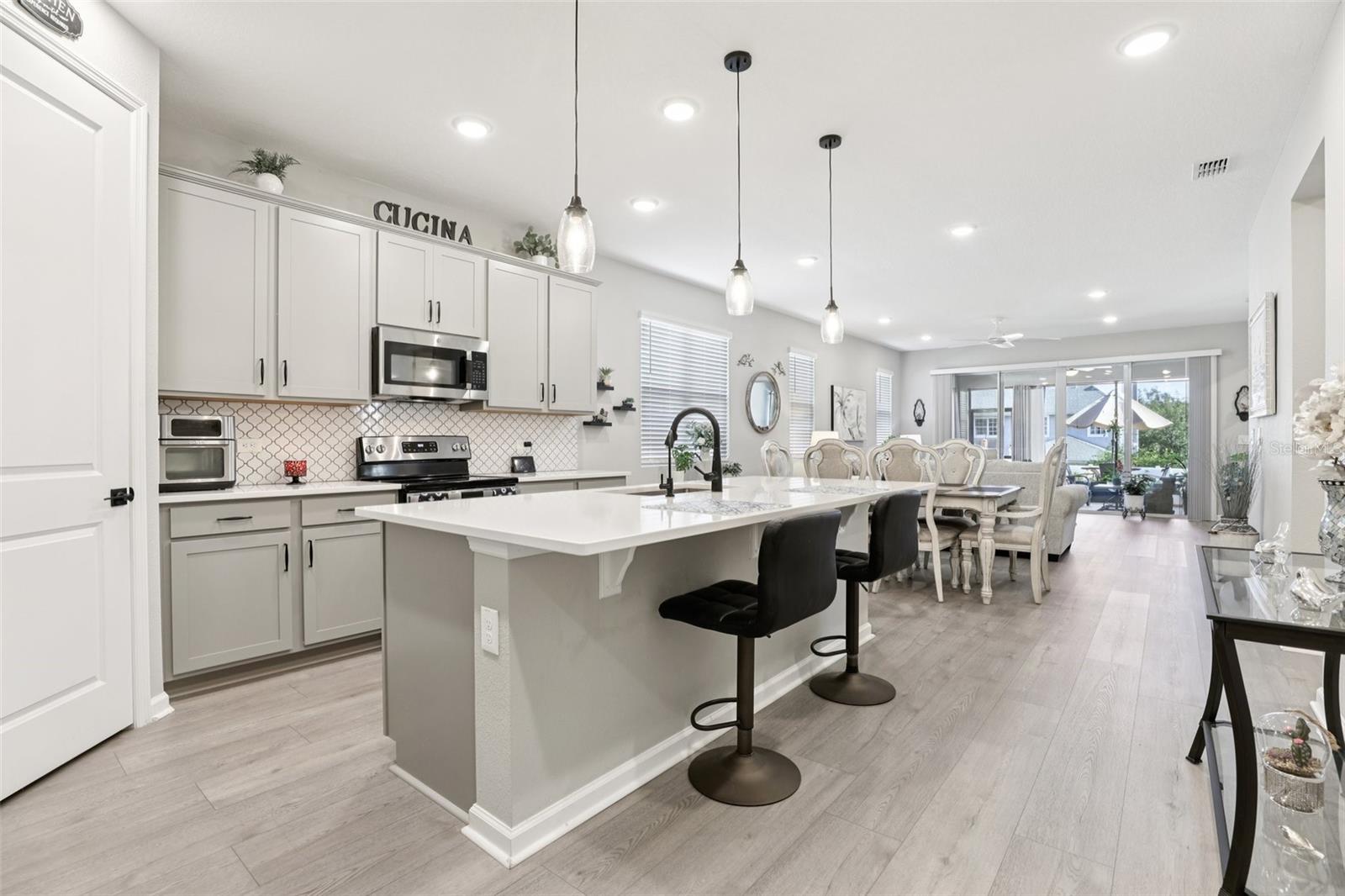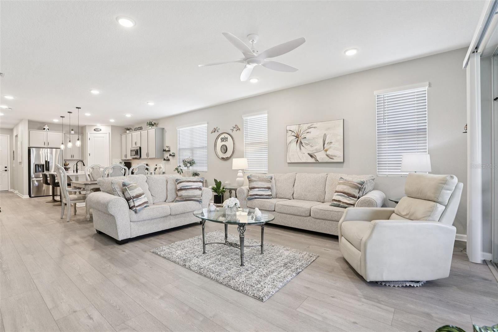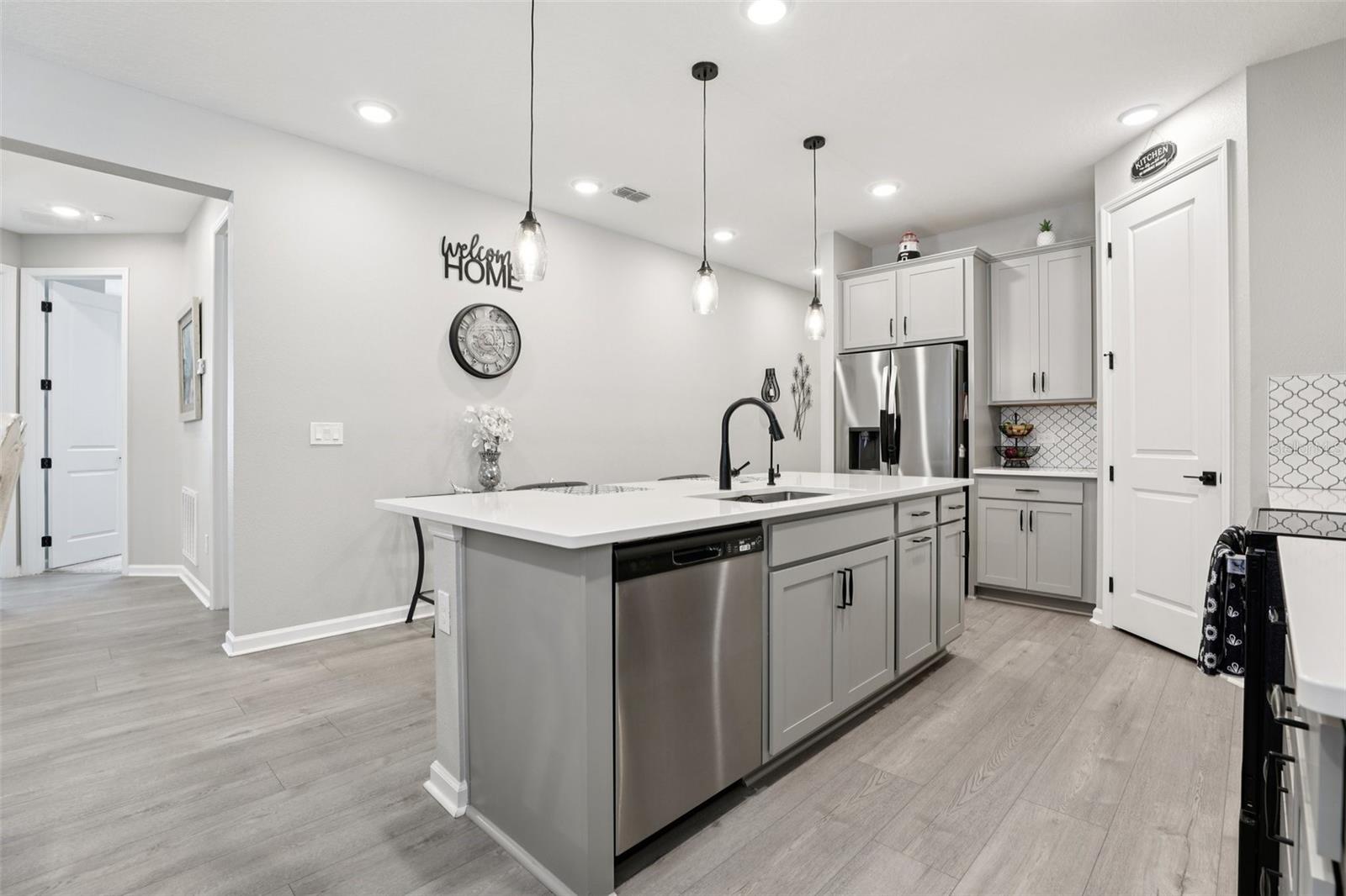 BETTER THAN NEW- Location. Location. Location in SILVER LAKE of Leesburg. Why settle for “just built” when you can have better than new in one of Leesburg’s most desirable, established neighborhoods? This gorgeous two-year-old Silver Lake home offers quality construction built before the recent housing boom, when craftsmanship truly mattered. Shop and compare and you’ll quickly see the value and attention to detail that sets this home apart. With $1000s in seller-added upgrades already completed, the work, permits, cost and waiting are already behind you. Nestled in a seasoned area, this home blends modern style with the charm of an established village —something new construction simply can’t offer. Sought-after Treadway Elementary is less than one mile away, adding even more appeal to this exceptional location. The three-way split bedroom floor plan provides excellent privacy and flexibility, ideal for hosting guests, with an added second walk-in closet in guest suite.Seller paid for extra windows throughout the home to fill the space with natural light, while 9-foot ceilings and 8-foot doors create an open, elegant feel. Double sliding glass doors invite the stellar outside views inside and connect beautifully to the outdoor living space. The kitchen is a true showstopper, featuring quartz countertops, stainless steel appliances, 42-inch cabinetry, a custom backsplash, an oversized island, and a walk-in lighted pantry, making it perfect for both everyday living and entertaining. Step out back to enjoy the oversized screened lanai (you don't get in most brand new homes) and extended patio, surrounded by a brand-new vinyl privacy fence and lush landscaping complete with fruit trees and vegetables. Back inside, thoughtful upgrades continue with in-wall pest control, energy-saving features, a whole-home water softener system, Ring security system with cameras, and brand-new gutters, offering comfort, efficiency, and peace of mind. The spacious indoor laundry includes cabinetry, while the garage offers pull-down attic stairs with added flooring for extra storage. Both bathrooms feature double sinks with quartz countertops and generous cabinetry, and the owner’s suite provides added privacy with a charming sliding barn door leading to the en-suite bath. Throughout the home, you’ll find beautiful tile and luxury vinyl flooring, with carpet in the bedrooms. Located in highly desirable Silver Lake, this home is just five minutes from The Harris Chain of Lakes boat access and conveniently close to shopping, hospitals, restaurants, and recreation. Mount Dora and The Villages are only a short drive away. Skip construction delays, unexpected expenses, and bare yards. This home is truly move-in ready, with every upgrade already in place. All that’s left to do is unpack and start living your Florida dream. We challenge you to look over a new home and then come back to this one. Move now and be ready to enjoy Lake County's Wonderful, Festival Filled Winter!