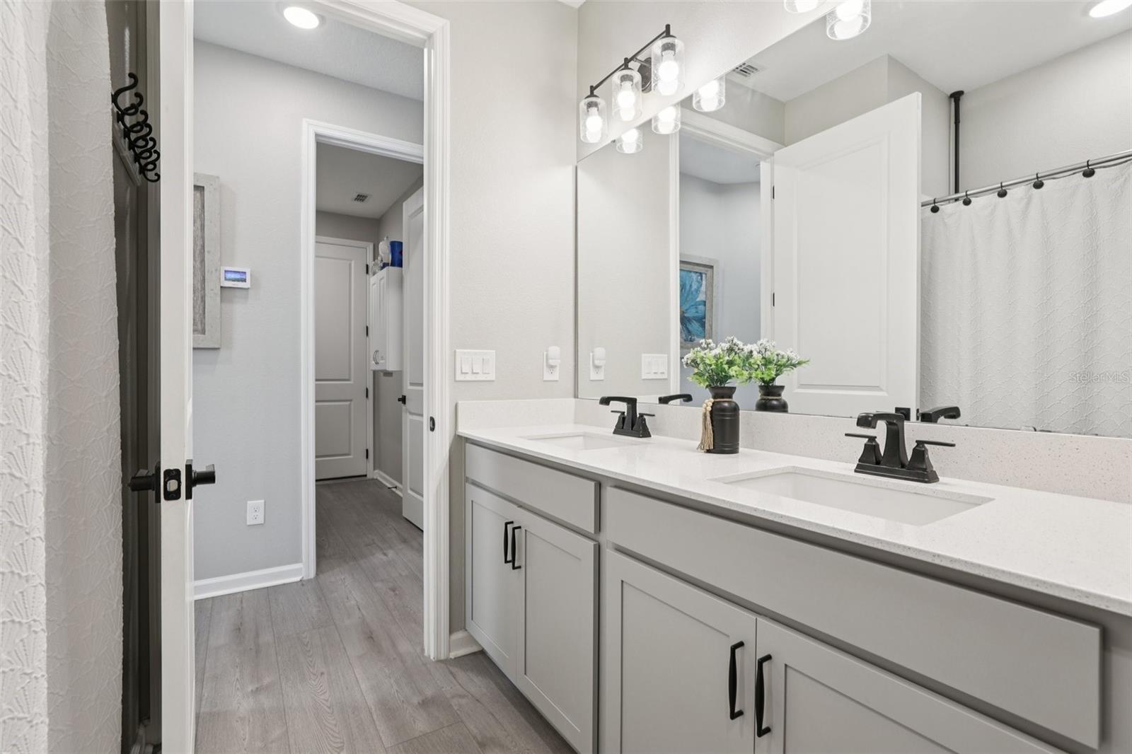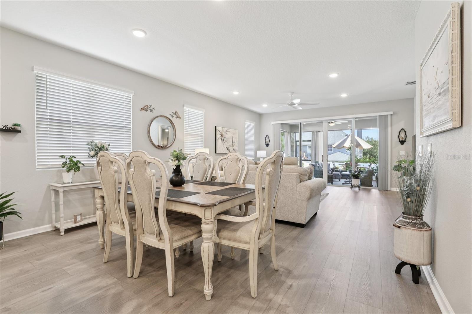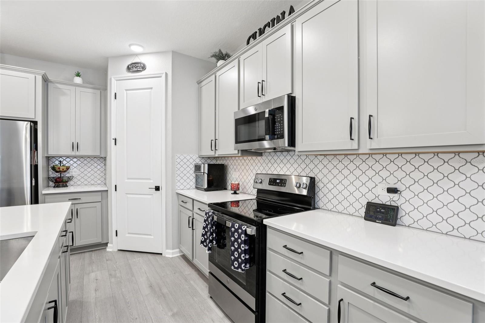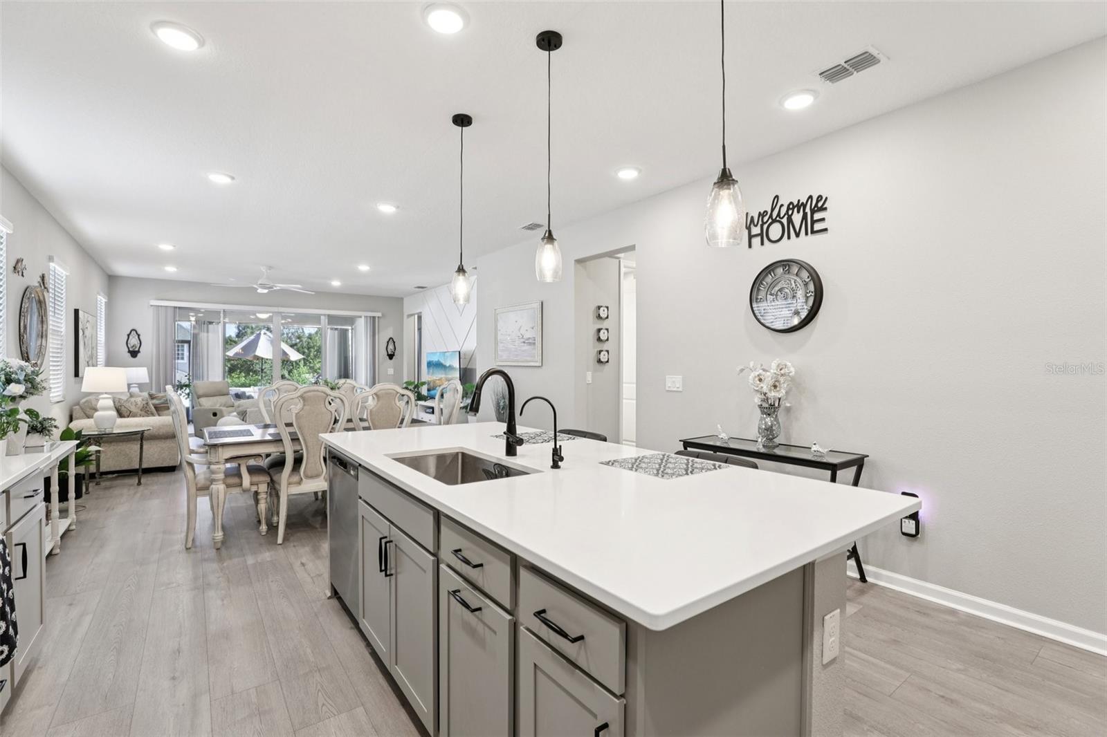 BETTER THAN NEW- Location. Location. Location in SILVER LAKE of Leesburg. Why settle for “just built” when you can have better than new in one of Leesburg’s most desirable, established neighborhoods? This gorgeous two-year-old Silver Lake home offers quality construction built before the recent housing boom, when craftsmanship truly mattered. Shop and compare and you’ll quickly see the value and attention to detail that sets this home apart. With $1000s in seller-added upgrades already completed, the work, permits, cost and waiting are already behind you. Nestled in a seasoned area, this home blends modern style with the charm of an established village —something new construction simply can’t offer. Sought-after Treadway Elementary is less than one mile away, adding even more appeal to this exceptional location. The three-way split bedroom floor plan provides excellent privacy and flexibility, ideal for hosting guests, with an added second walk-in closet in guest suite.Seller paid for extra windows throughout the home to fill the space with natural light, while 9-foot ceilings and 8-foot doors create an open, elegant feel. Double sliding glass doors invite the stellar outside views inside and connect beautifully to the outdoor living space. The kitchen is a true showstopper, featuring quartz countertops, stainless steel appliances, 42-inch cabinetry, a custom backsplash, an oversized island, and a walk-in lighted pantry, making it perfect for both everyday living and entertaining. Step out back to enjoy the oversized screened lanai (you don't get in most brand new homes) and extended patio, surrounded by a brand-new vinyl privacy fence and lush landscaping complete with fruit trees and vegetables. Back inside, thoughtful upgrades continue with in-wall pest control, energy-saving features, a whole-home water softener system, Ring security system with cameras, and brand-new gutters, offering comfort, efficiency, and peace of mind. The spacious indoor laundry includes cabinetry, while the garage offers pull-down attic stairs with added flooring for extra storage. Both bathrooms feature double sinks with quartz countertops and generous cabinetry, and the owner’s suite provides added privacy with a charming sliding barn door leading to the en-suite bath. Throughout the home, you’ll find beautiful tile and luxury vinyl flooring, with carpet in the bedrooms. Located in highly desirable Silver Lake, this home is just five minutes from The Harris Chain of Lakes boat access and conveniently close to shopping, hospitals, restaurants, and recreation. Mount Dora and The Villages are only a short drive away. Skip construction delays, unexpected expenses, and bare yards. This home is truly move-in ready, with every upgrade already in place. All that’s left to do is unpack and start living your Florida dream. We challenge you to look over a new home and then come back to this one. Move now and be ready to enjoy Lake County's Wonderful, Festival Filled Winter!