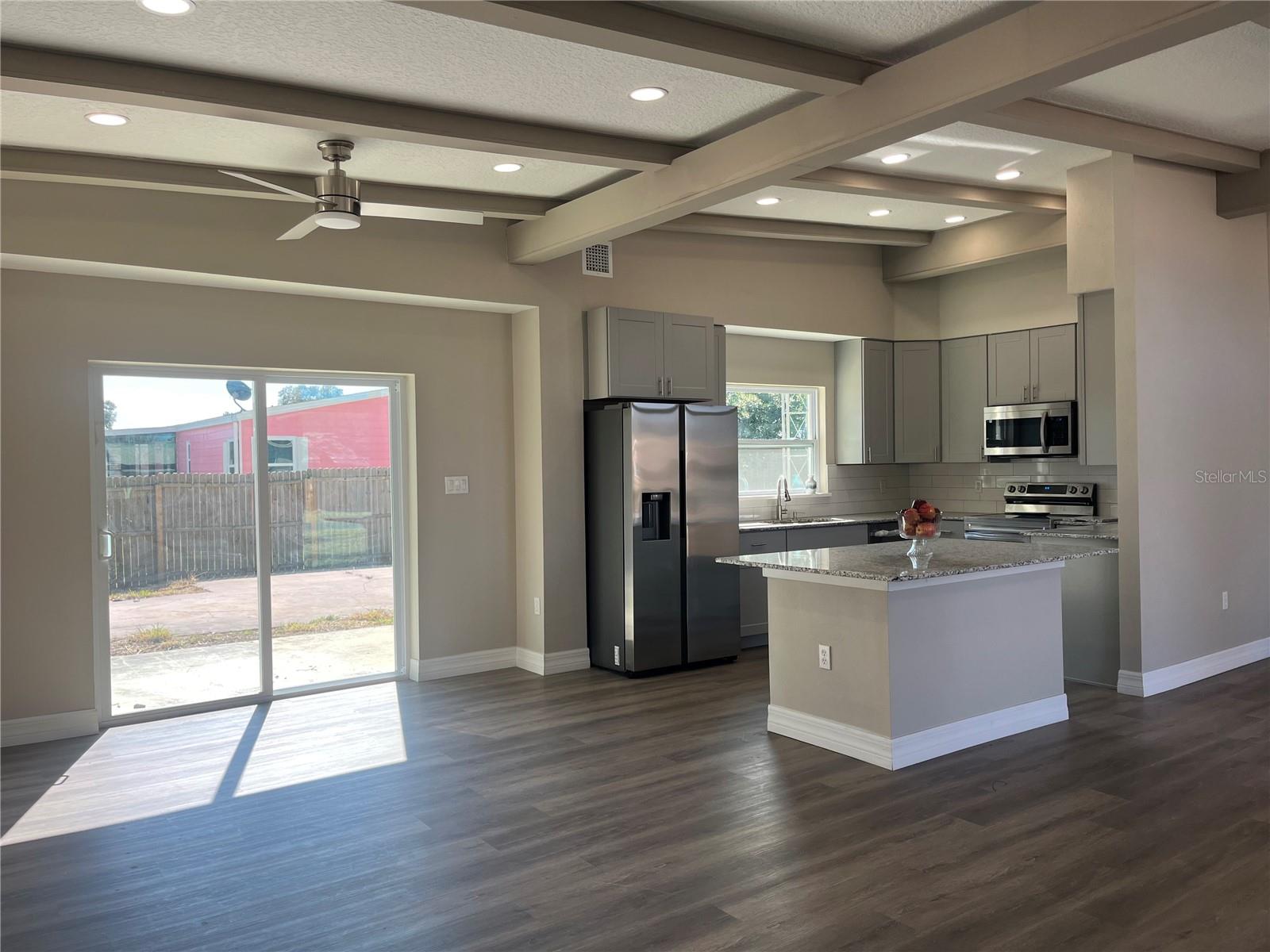 One or more photo(s) has been virtually staged. Experience a masterfully redesigned interior in this totally remodeled residence, situated on a quiet street directly across from a peaceful community pond. The home boasts impressive high ceilings accented by architectural beams, creating an airy, refined atmosphere with immense 'volume and light.' The heart of the home is a gourmet kitchen featuring elegant granite countertops and a brand-new suite of Samsung stainless steel appliances. Every detail has been meticulously updated, offering a modern open-concept layout that flows seamlessly to take in serene water views from the front of the home. Located in a tranquil, established neighborhood, this property offers a rare combination of custom design elements and a 'new-build' feel. Truly turnkey and ready for its next owner. Schedule your private showing today!