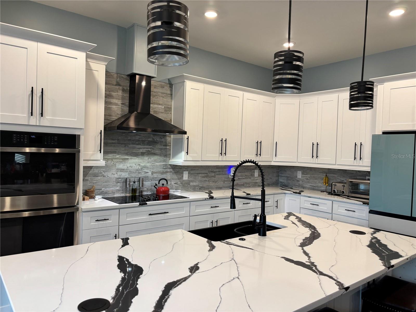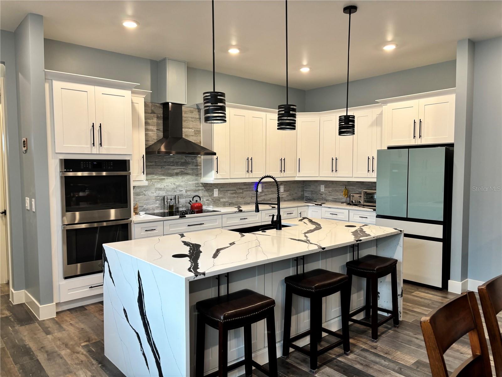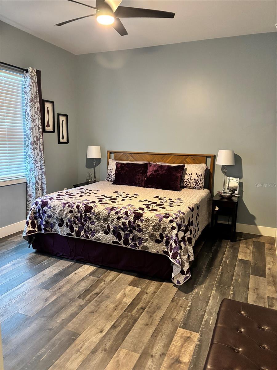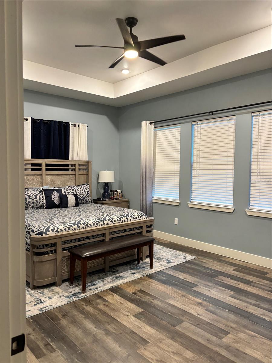 Custom built home boasting a perfect blend of luxury and classic elegance. This luxurious 4 bedroom, 3 bathroom home is located in the sought after gated community of Majestic Oaks. As you enter through the French doors you will notice the tall ceilings throughout the home and the open floor plan that seamlessly connects the living, dining, and custom kitchen area. The kitchen boasts a large quartz waterfall island, tall cabinets, double oven, and French door refrigerator. The laundry room includes a separate pet wash station. The outdoor screened in patio is perfect for early morning coffee or late night relaxation. Home includes a whole house water softener and a 10' X 16' outdoor storage shed. Shed is wired for electricity. Fenced in yard.