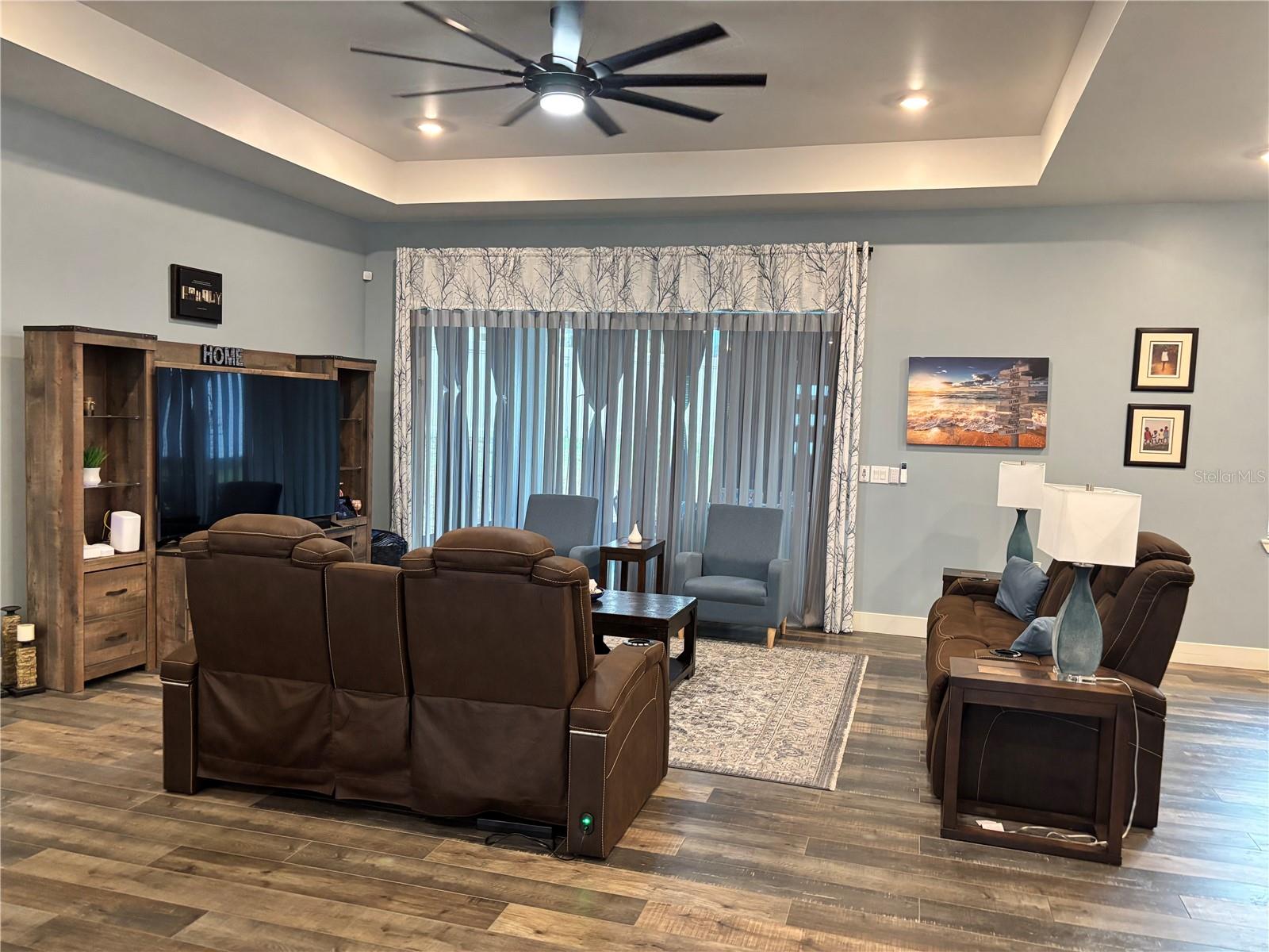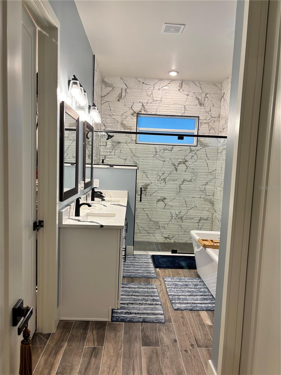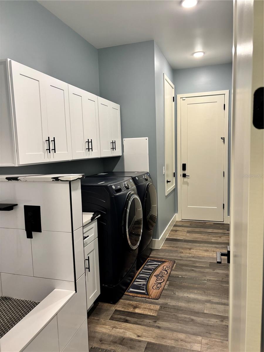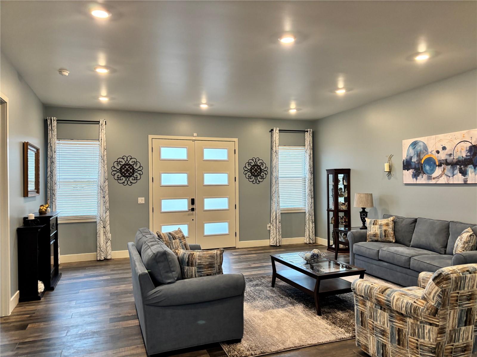 Custom built home boasting a perfect blend of luxury and classic elegance. This luxurious 4 bedroom, 3 bathroom home is located in the sought after gated community of Majestic Oaks. As you enter through the French doors you will notice the tall ceilings throughout the home and the open floor plan that seamlessly connects the living, dining, and custom kitchen area. The kitchen boasts a large quartz waterfall island, tall cabinets, double oven, and French door refrigerator. The laundry room includes a separate pet wash station. The outdoor screened in patio is perfect for early morning coffee or late night relaxation. Home includes a whole house water softener and a 10' X 16' outdoor storage shed. Shed is wired for electricity. Fenced in yard.