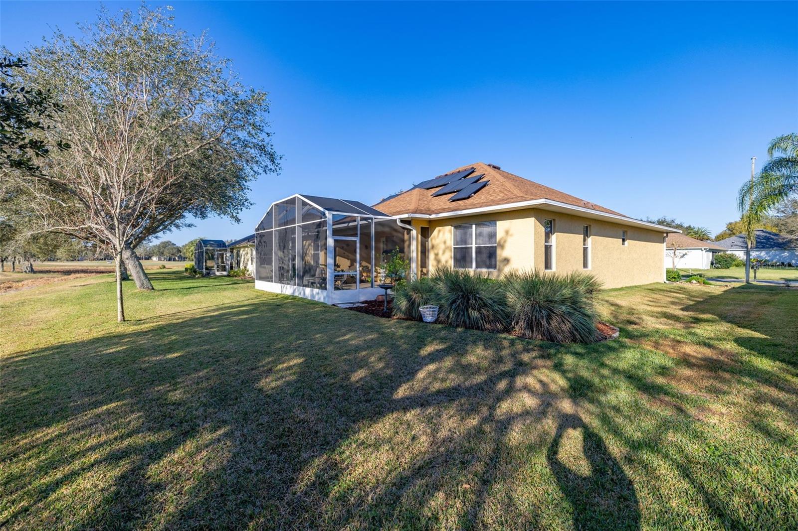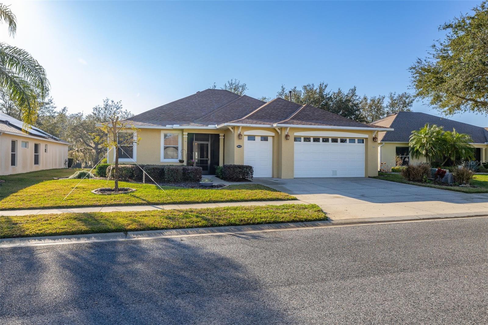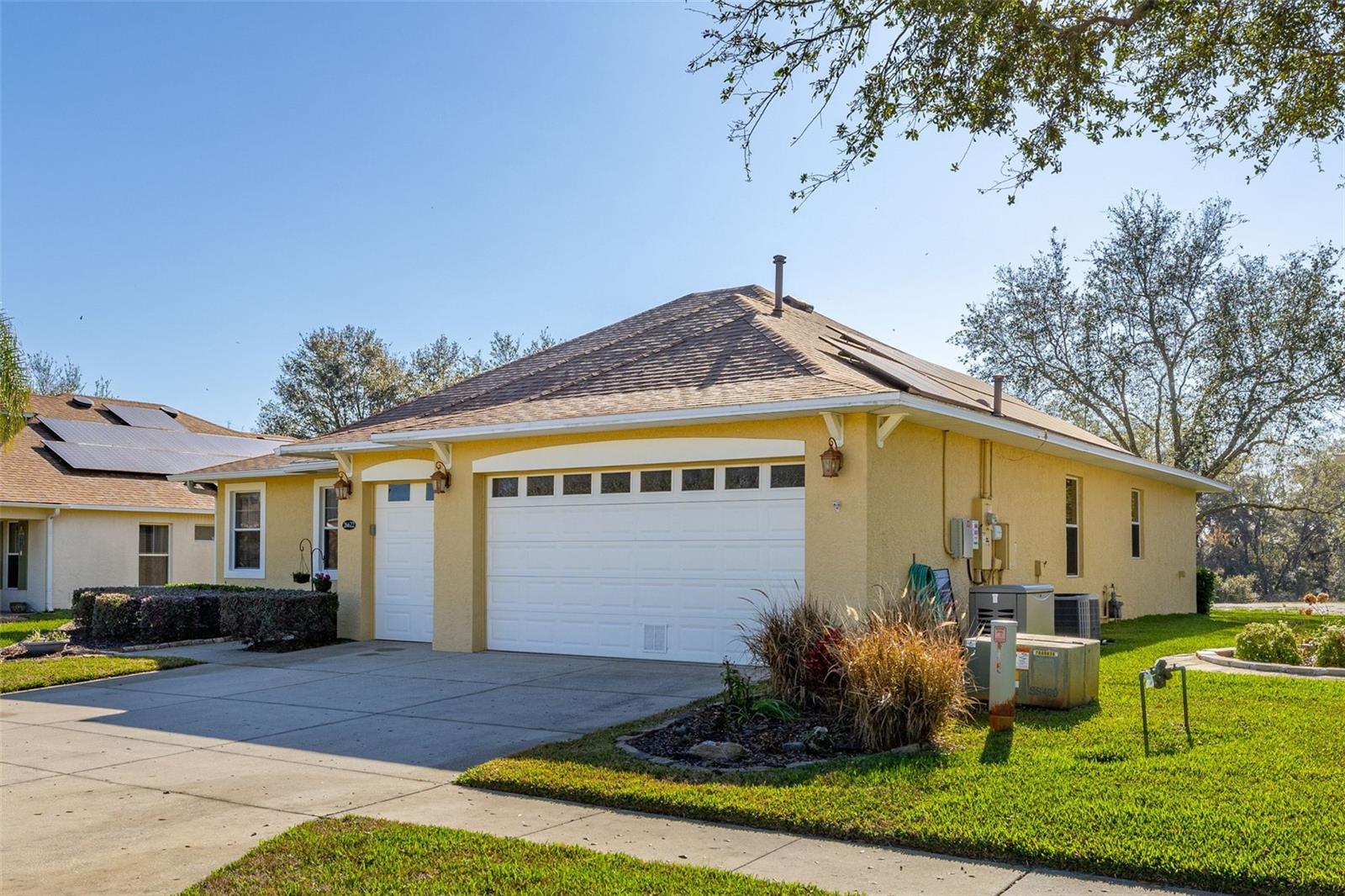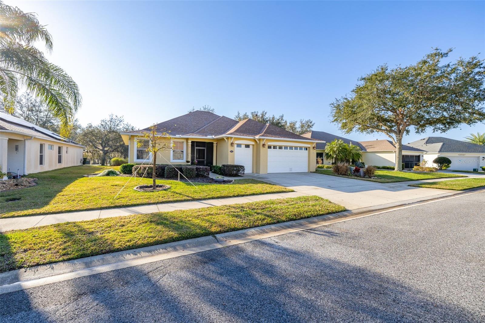 Price Improvement & Motivated Sellers! Welcome to this stunning golf-front Chatham model home, nestled in a highly sought-after community featuring a Gary Koch-designed, 18-hole golf course. Originally a builder’s inventory home, this 2-bedroom, 2-bathroom gem—with a versatile den—boasts upgraded features and exceptional charm. Interior Highlights: Chef’s Dream Kitchen: Gorgeous oak cabinets with crown molding Upgraded stainless steel appliances, including a gas range Corian countertops, center island & cozy eat-in space All with breathtaking golf course views! Elegant Flooring: Beautiful hardwood floors flow through the great room & home office/study, adding warmth & sophistication. Spacious Master Suite: Large walk-in closet Luxurious bath with Corian countertops & an oversized walk-in shower Multi-Functional Laundry Room: Includes washer, dryer, laundry sink, & extra space perfect for hobbies or crafts Exterior & Energy Efficiency: Garage Perks: 2-car garage + additional bay for your golf cart Energy Savings & Reliability: New Roof (Installed 11/2021) OWNED Solar Panels for maximum energy efficiency Kohler Whole House Generator conveys—peace of mind during any season! Outdoor Living: Mature, manicured landscaping enhances curb appeal Large extended screened lanai overlooking the golf course, featuring a special area for your furry friends! Community Amenities: Town Center with 2 heated pools (lap & resort-style), a movie theater, tavern, gym, & spa Endless activities: Bocce, pickleball, tennis, billiards, ceramics, water aerobics, bingo, travel club, & more! Play a round on the Gary Koch-designed 18-hole golf course or unwind with a scenic stroll