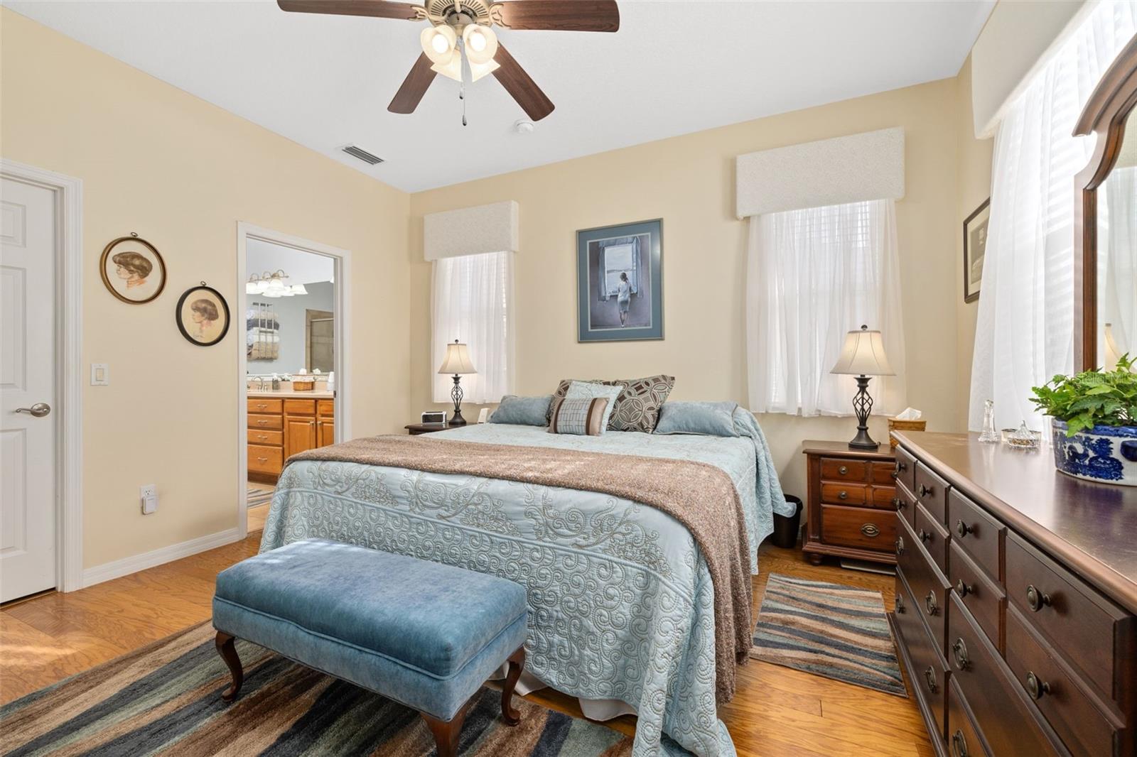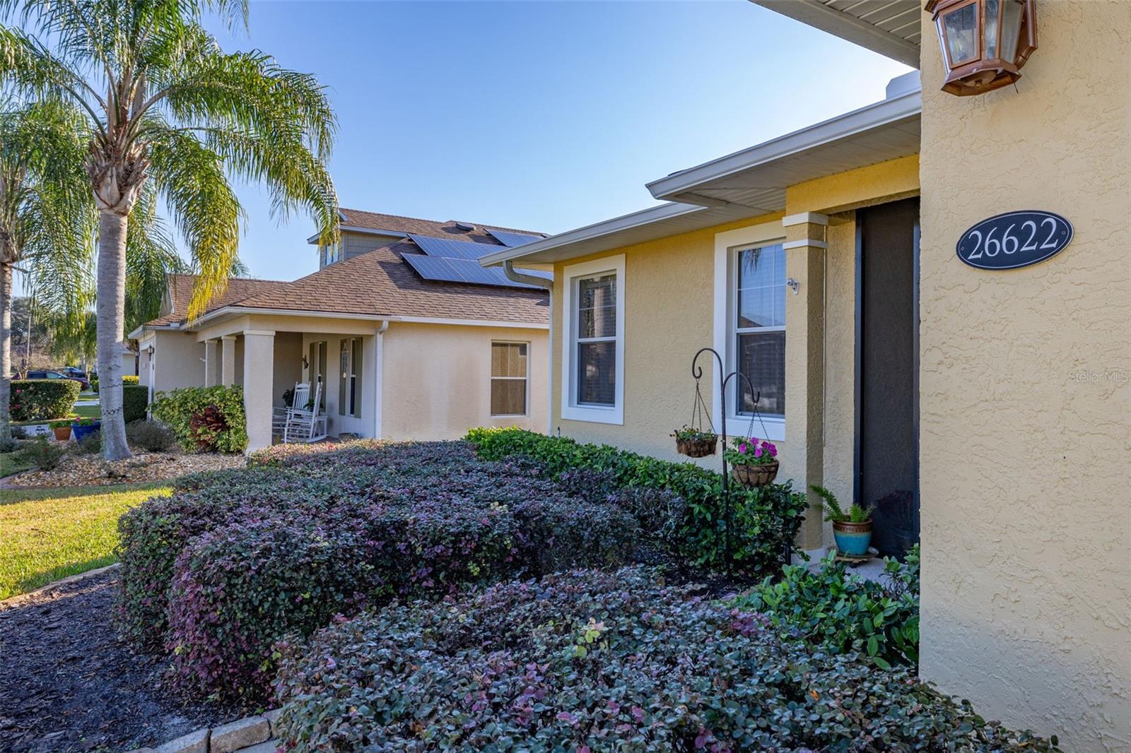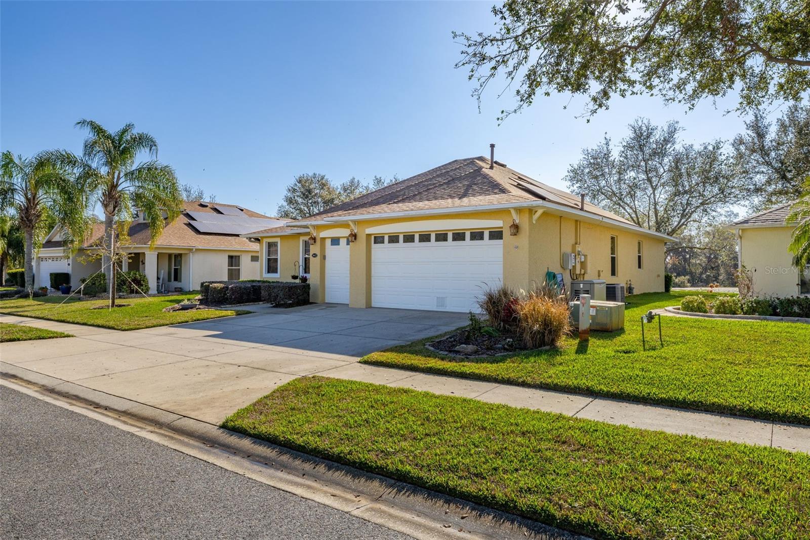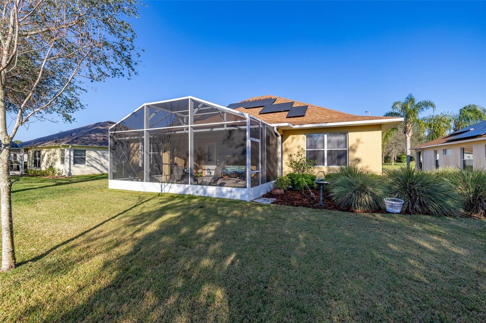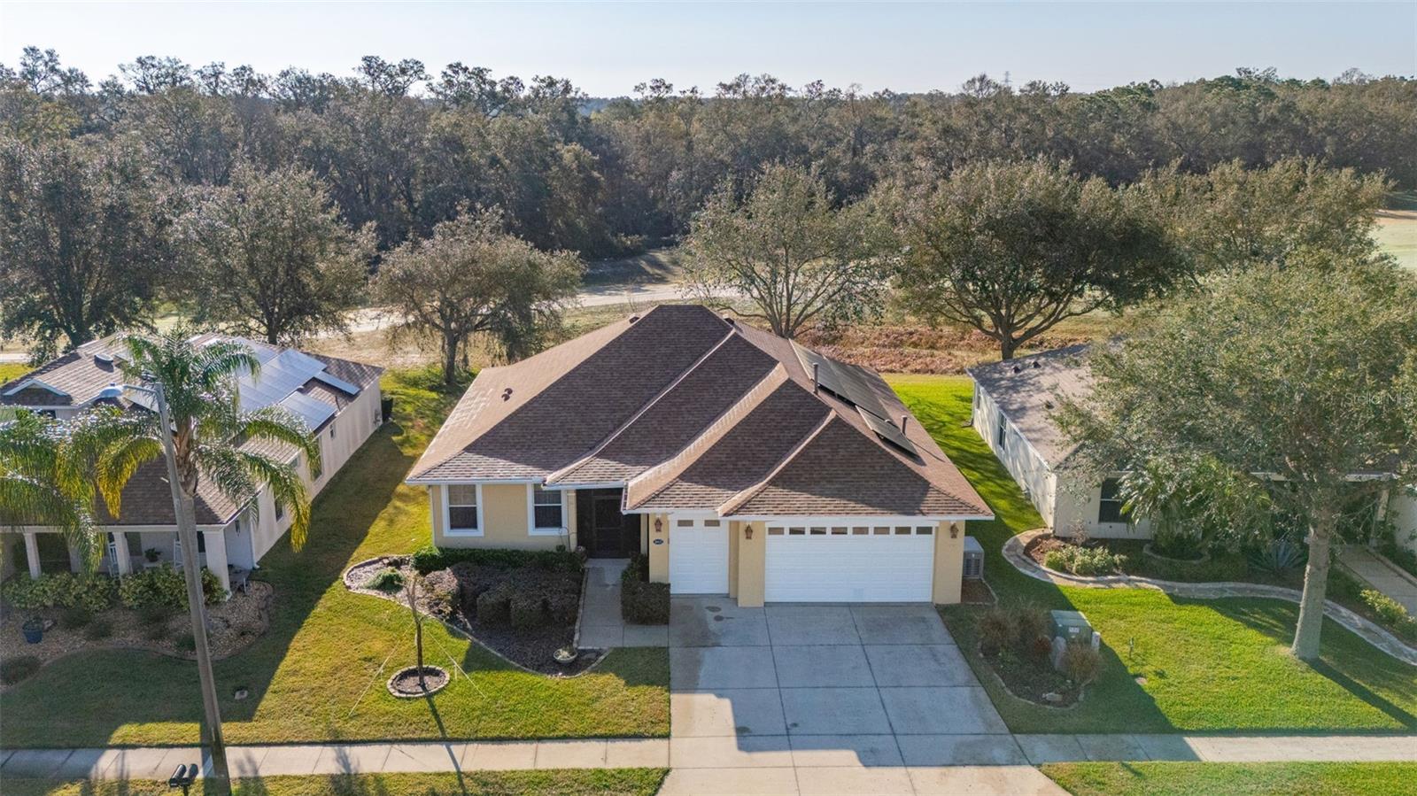 Price Improvement & Motivated Sellers! Welcome to this stunning golf-front Chatham model home, nestled in a highly sought-after community featuring a Gary Koch-designed, 18-hole golf course. Originally a builder’s inventory home, this 2-bedroom, 2-bathroom gem—with a versatile den—boasts upgraded features and exceptional charm. Interior Highlights: Chef’s Dream Kitchen: Gorgeous oak cabinets with crown molding Upgraded stainless steel appliances, including a gas range Corian countertops, center island & cozy eat-in space All with breathtaking golf course views! Elegant Flooring: Beautiful hardwood floors flow through the great room & home office/study, adding warmth & sophistication. Spacious Master Suite: Large walk-in closet Luxurious bath with Corian countertops & an oversized walk-in shower Multi-Functional Laundry Room: Includes washer, dryer, laundry sink, & extra space perfect for hobbies or crafts Exterior & Energy Efficiency: Garage Perks: 2-car garage + additional bay for your golf cart Energy Savings & Reliability: New Roof (Installed 11/2021) OWNED Solar Panels for maximum energy efficiency Kohler Whole House Generator conveys—peace of mind during any season! Outdoor Living: Mature, manicured landscaping enhances curb appeal Large extended screened lanai overlooking the golf course, featuring a special area for your furry friends! Community Amenities: Town Center with 2 heated pools (lap & resort-style), a movie theater, tavern, gym, & spa Endless activities: Bocce, pickleball, tennis, billiards, ceramics, water aerobics, bingo, travel club, & more! Play a round on the Gary Koch-designed 18-hole golf course or unwind with a scenic stroll